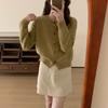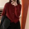 2025 Primavera y Otoño Nuevo Diseño Coreano Color Sólido Suave Cera Tops de Suéter para Mujer Suelto Cuello Redondo Cárdigan Tejido Top