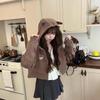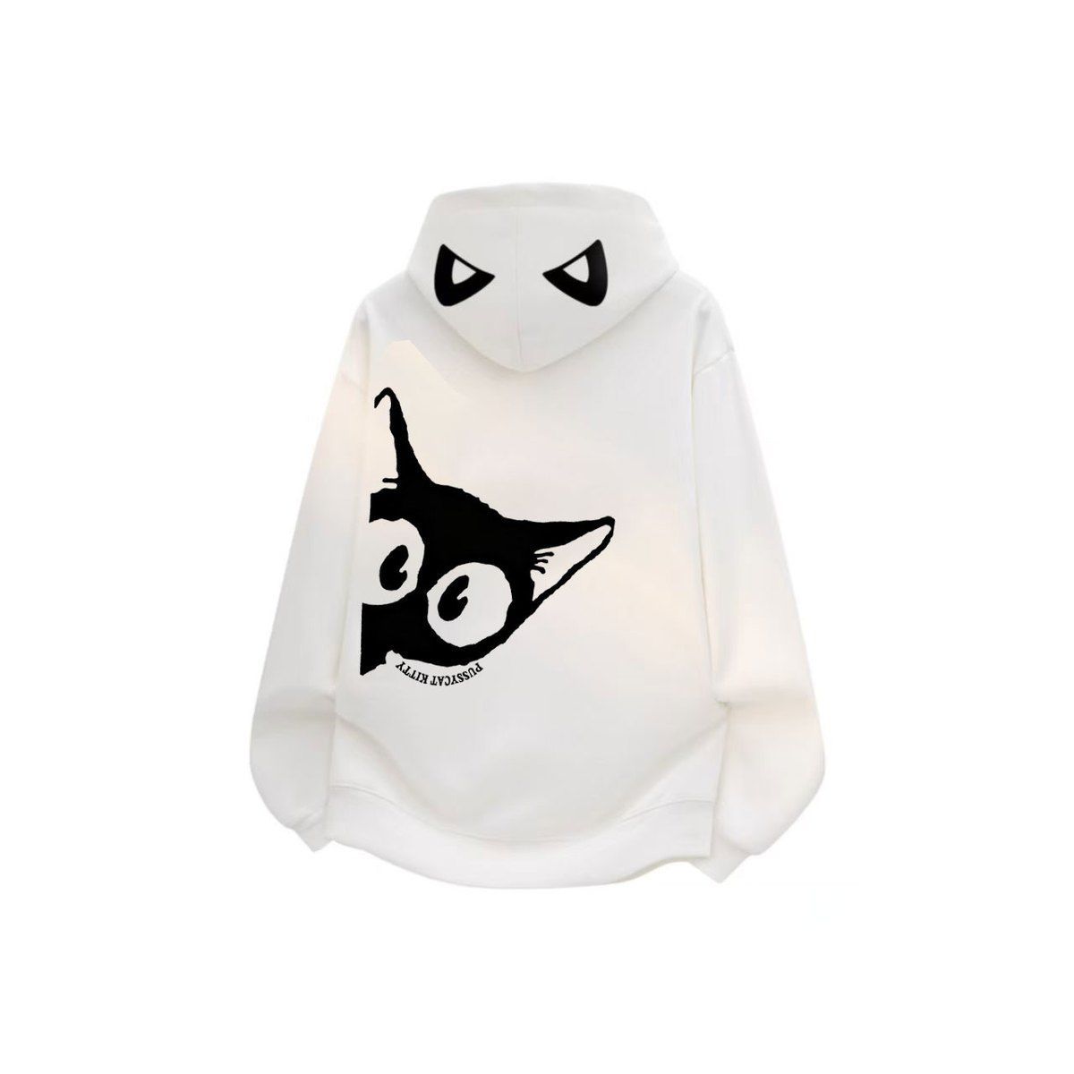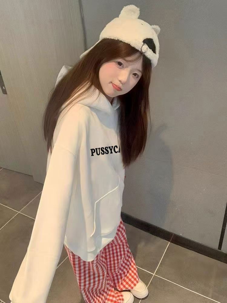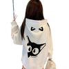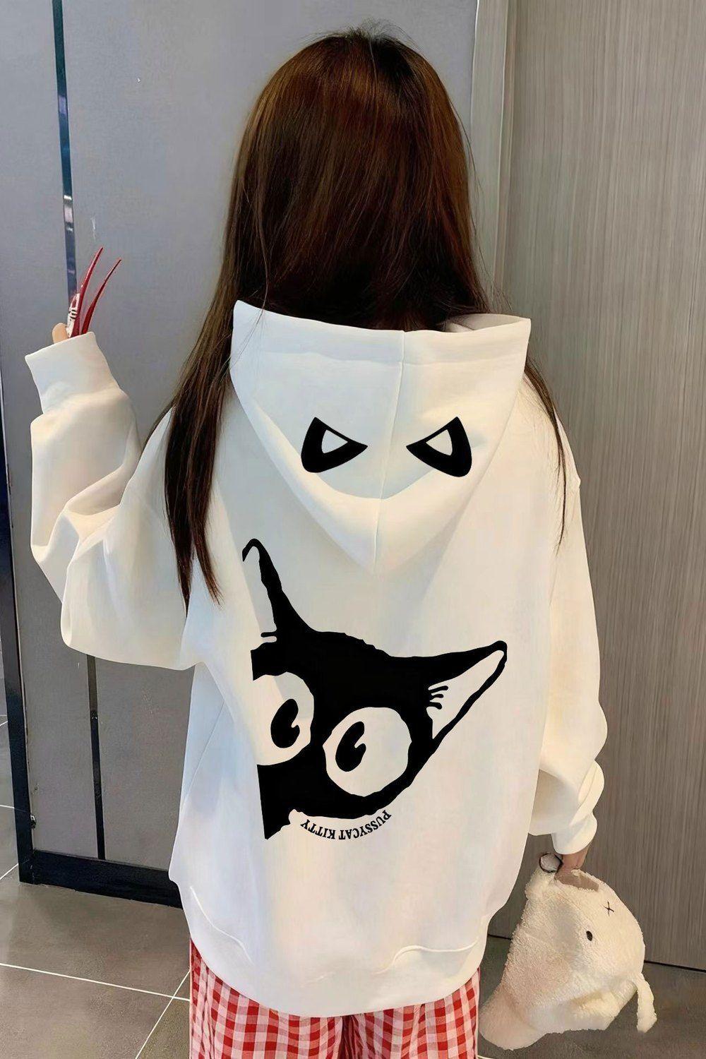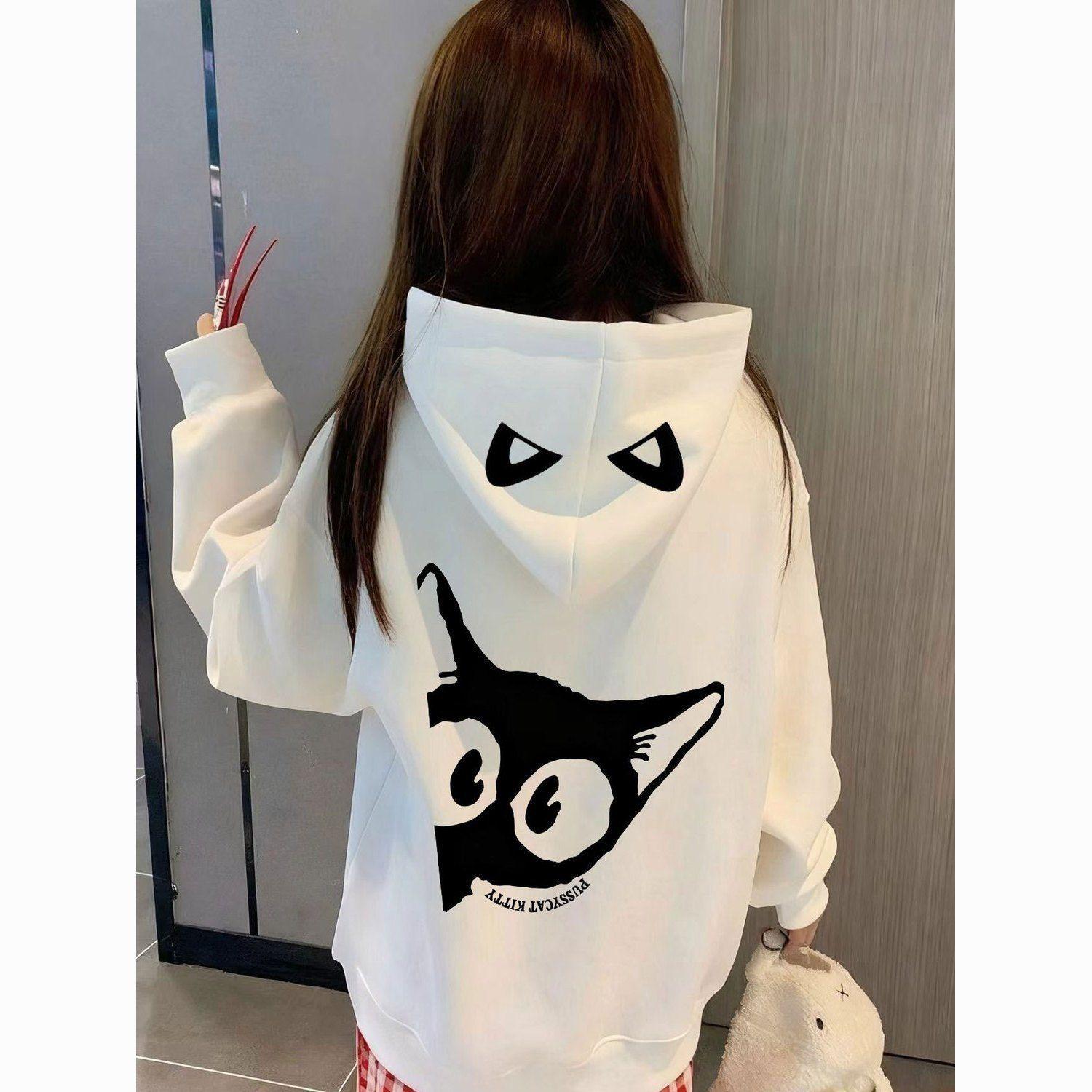 Sudadera gruesa con capucha estilo americano dulce y lindo para mujer con estampado de gato, top holgado y perezoso, chaqueta casual