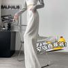 Pantalón de chándal blanco-gris mujer otoño 2025 nuevo talle alto drapeado pierna recta petite holgado casual pierna ancha
