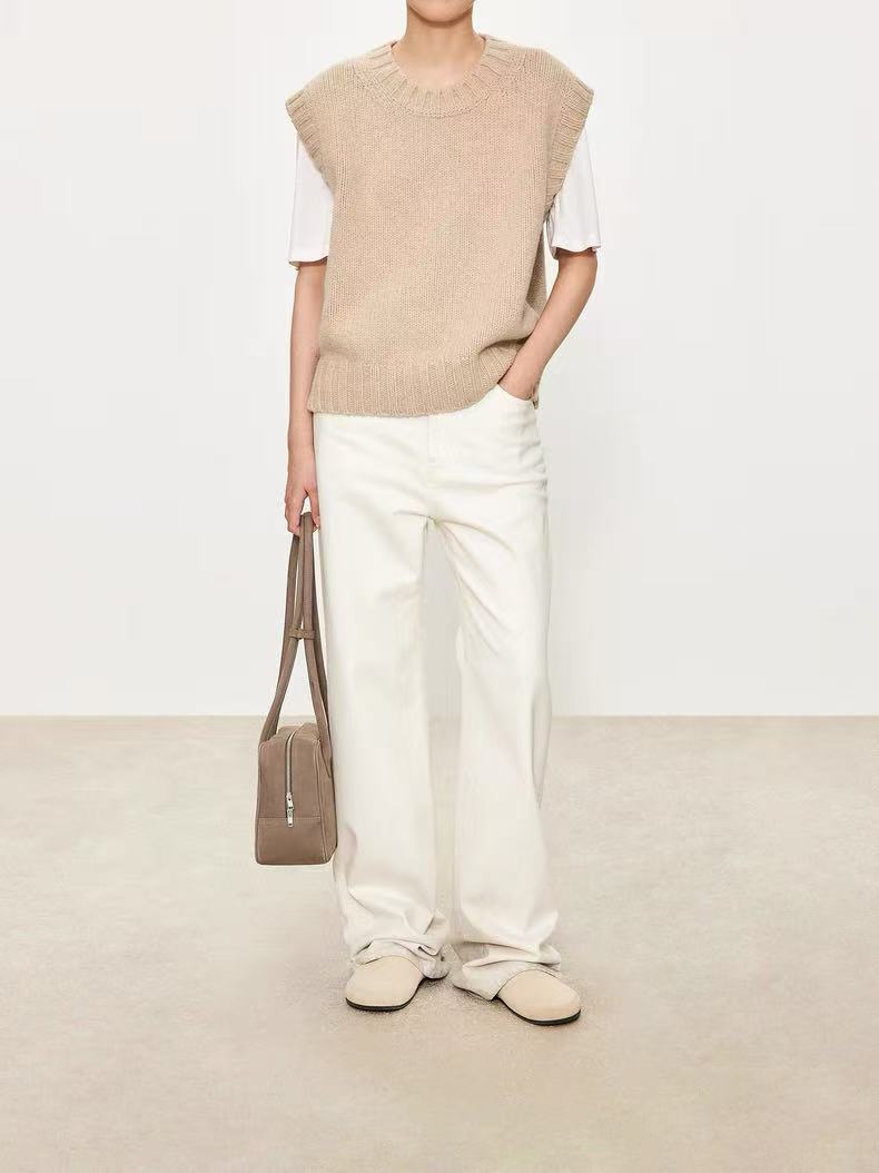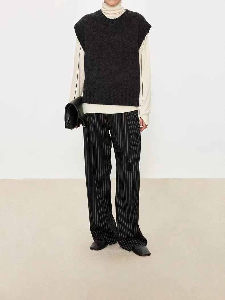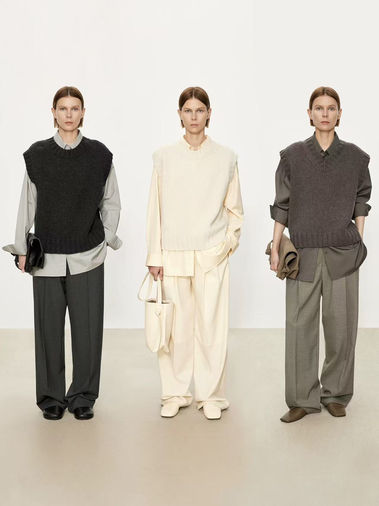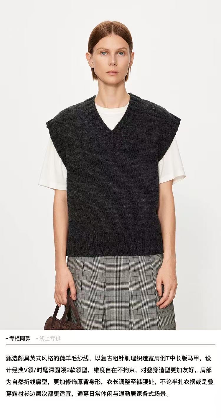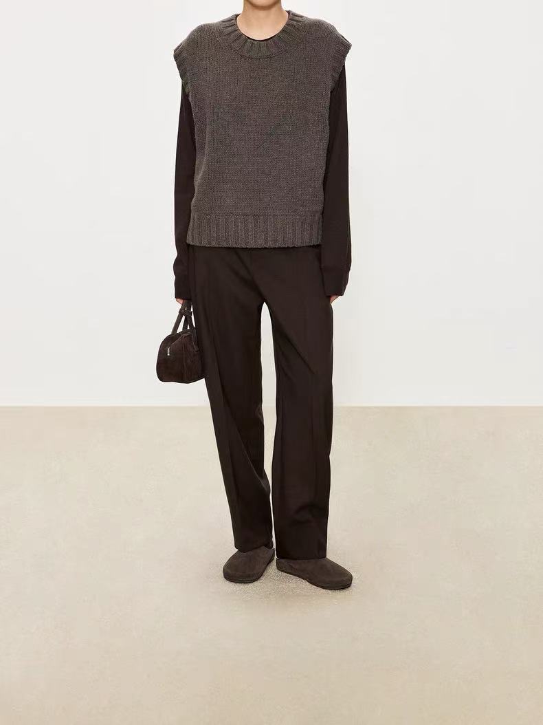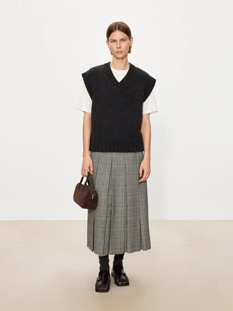 25 Otoño/Invierno Nuevo Chaleco de Punto de Lana Pura para Mujer Cuello en V Color Sólido Jersey Holgado Sin Mangas Holgado Camiseta Básica