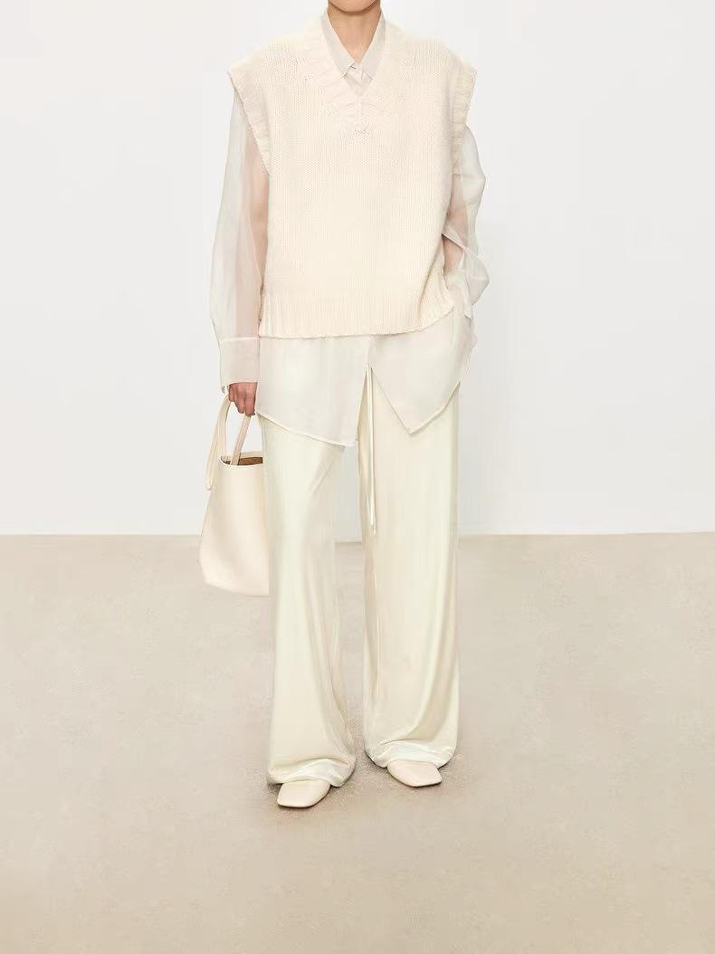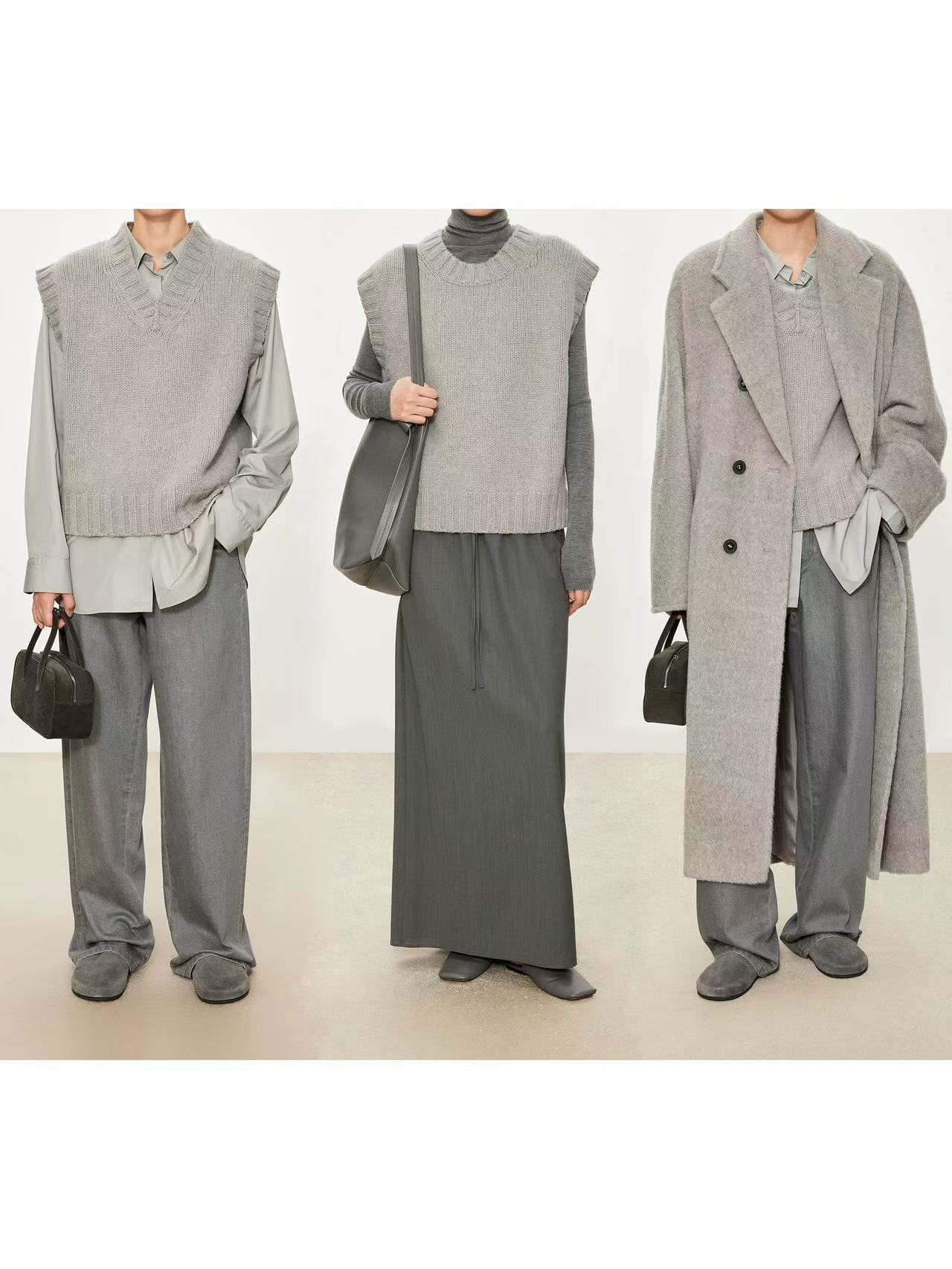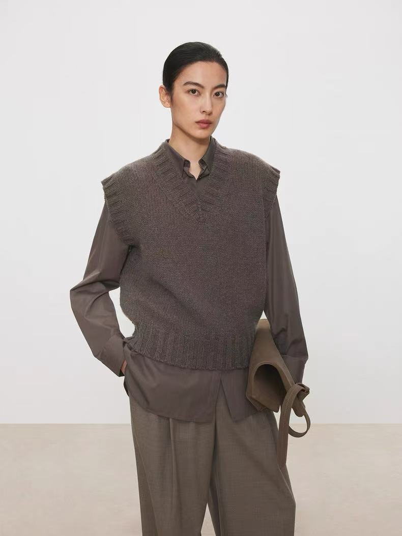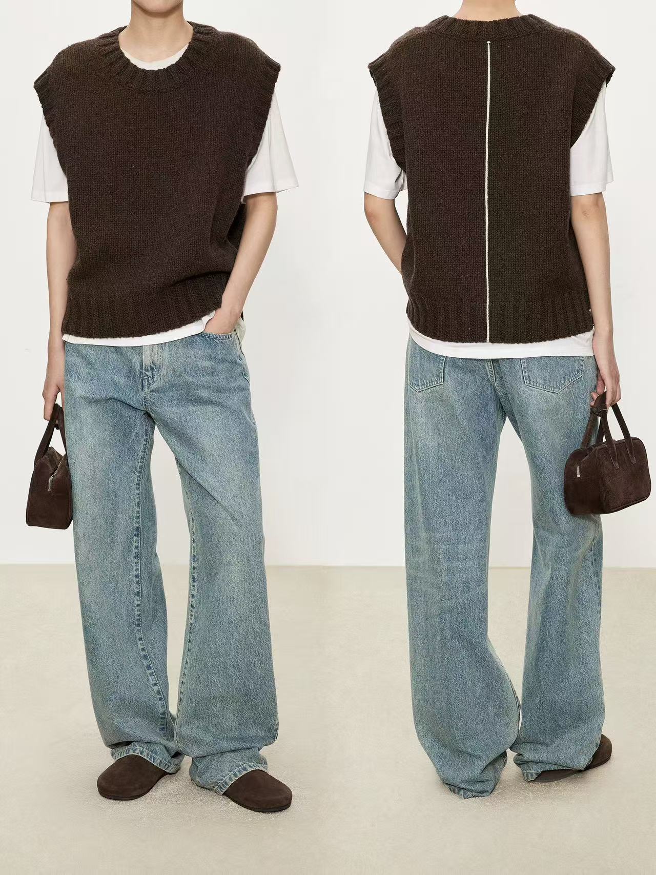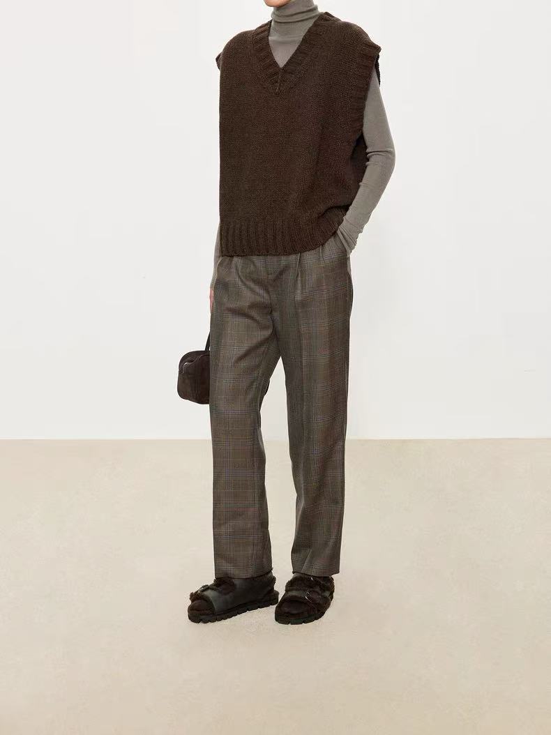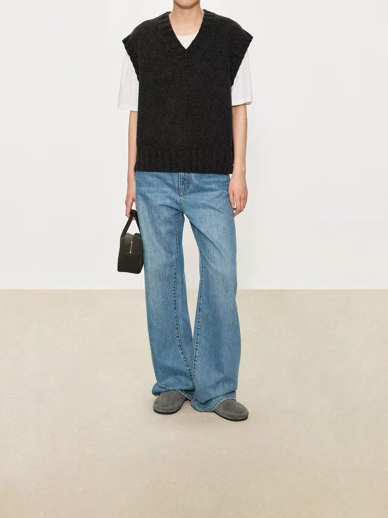 25 Otoño/Invierno Nuevo Chaleco de Punto de Lana Pura para Mujer Cuello en V Color Sólido Jersey Holgado Sin Mangas Holgado Camiseta Básica