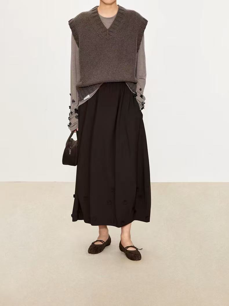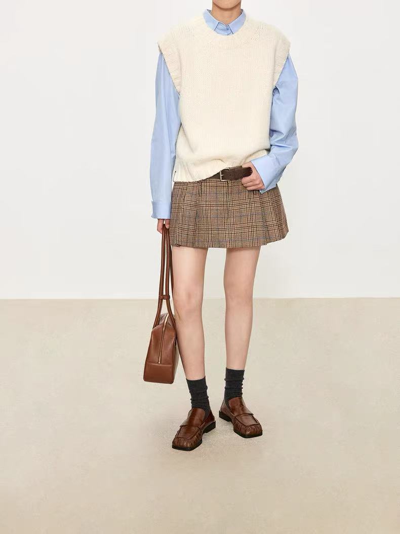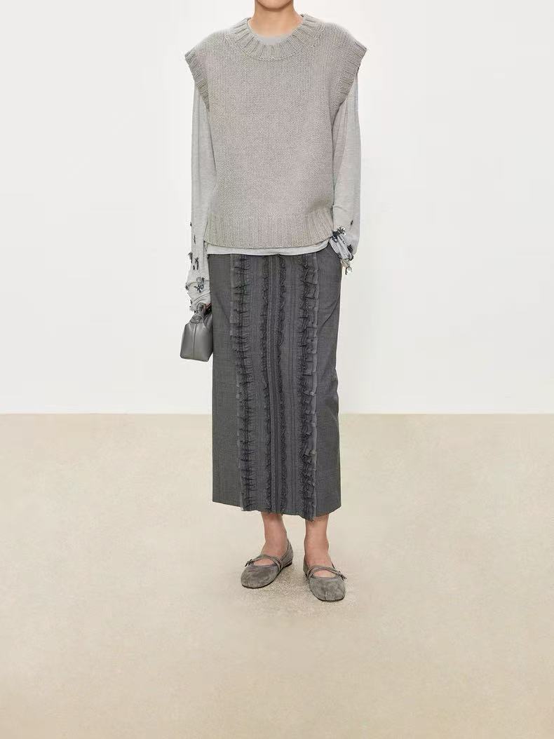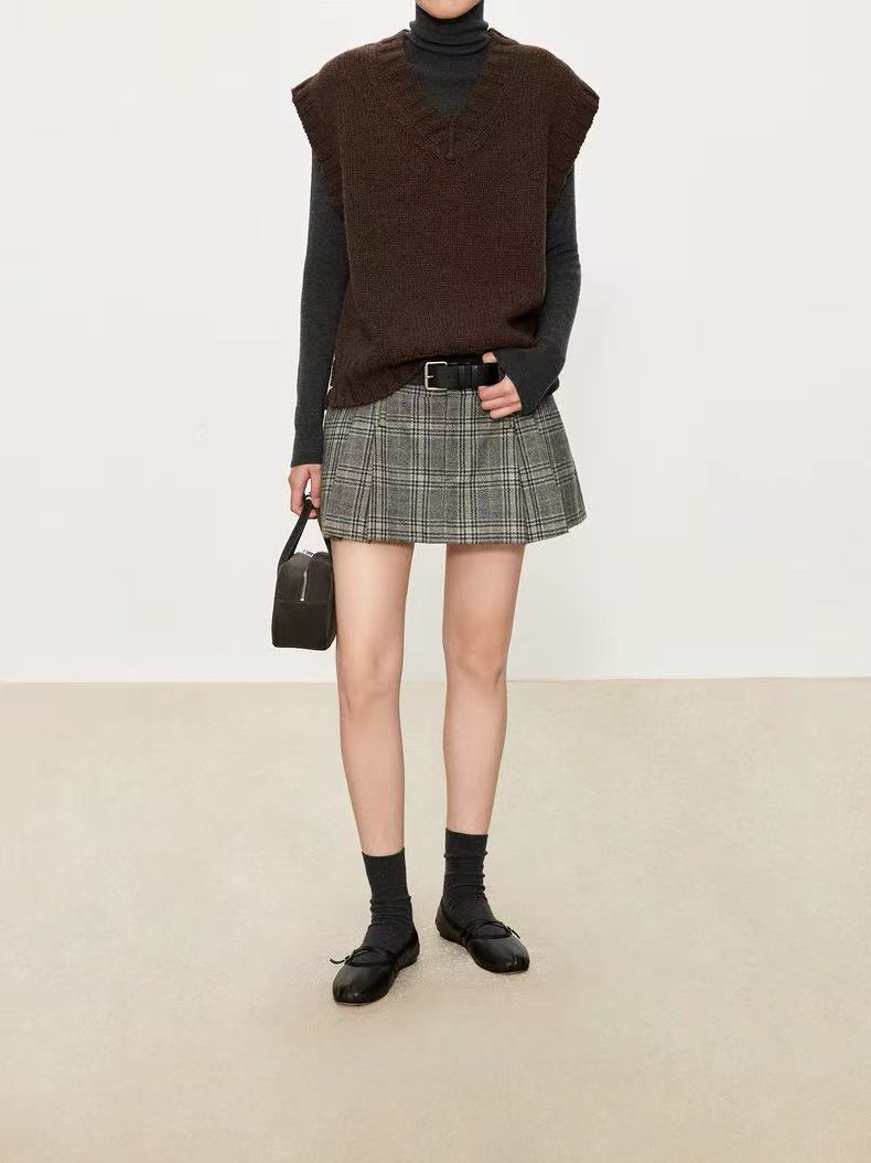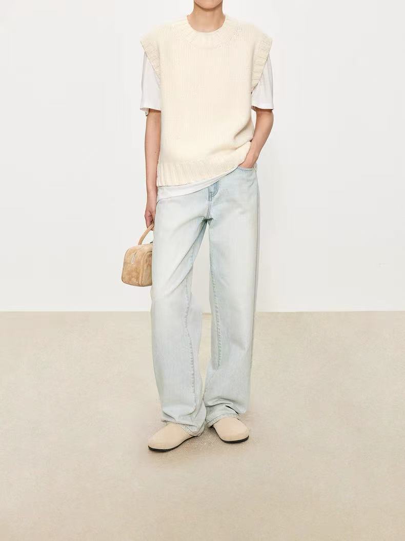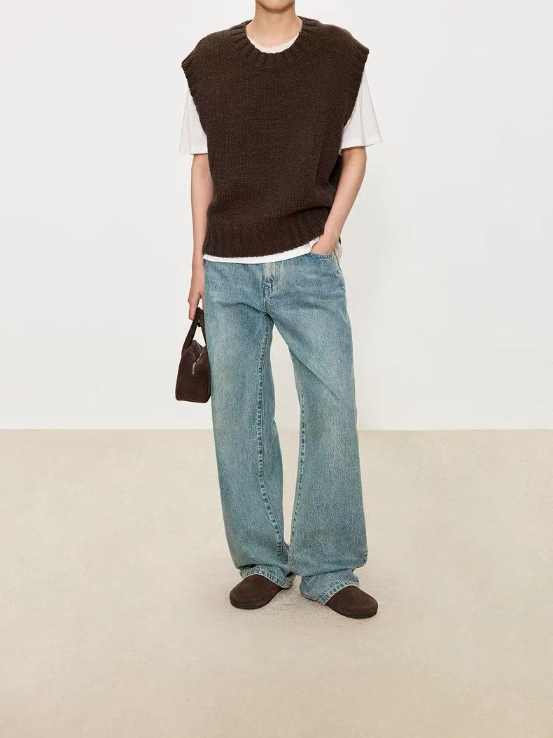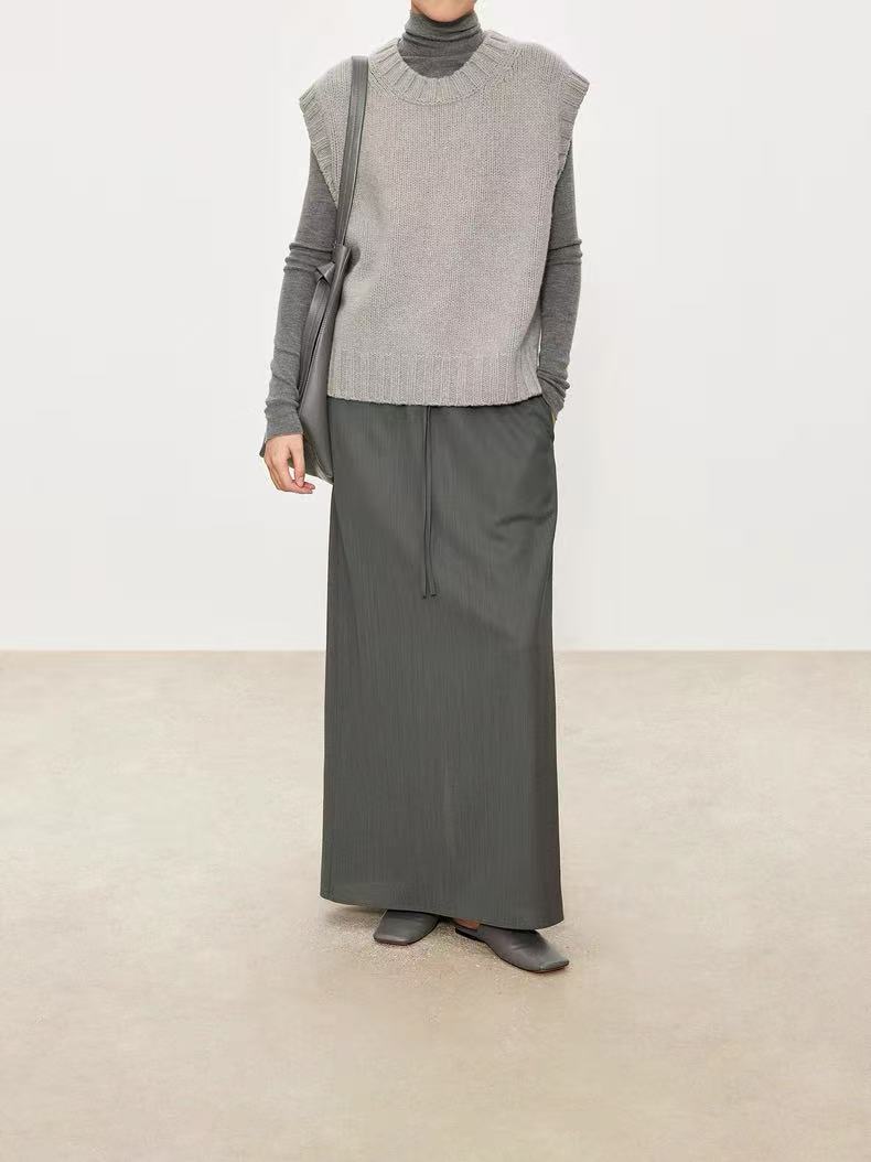 25 Otoño/Invierno Nuevo Chaleco de Punto de Lana Pura para Mujer Cuello en V Color Sólido Jersey Holgado Sin Mangas Holgado Camiseta Básica