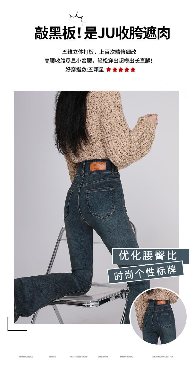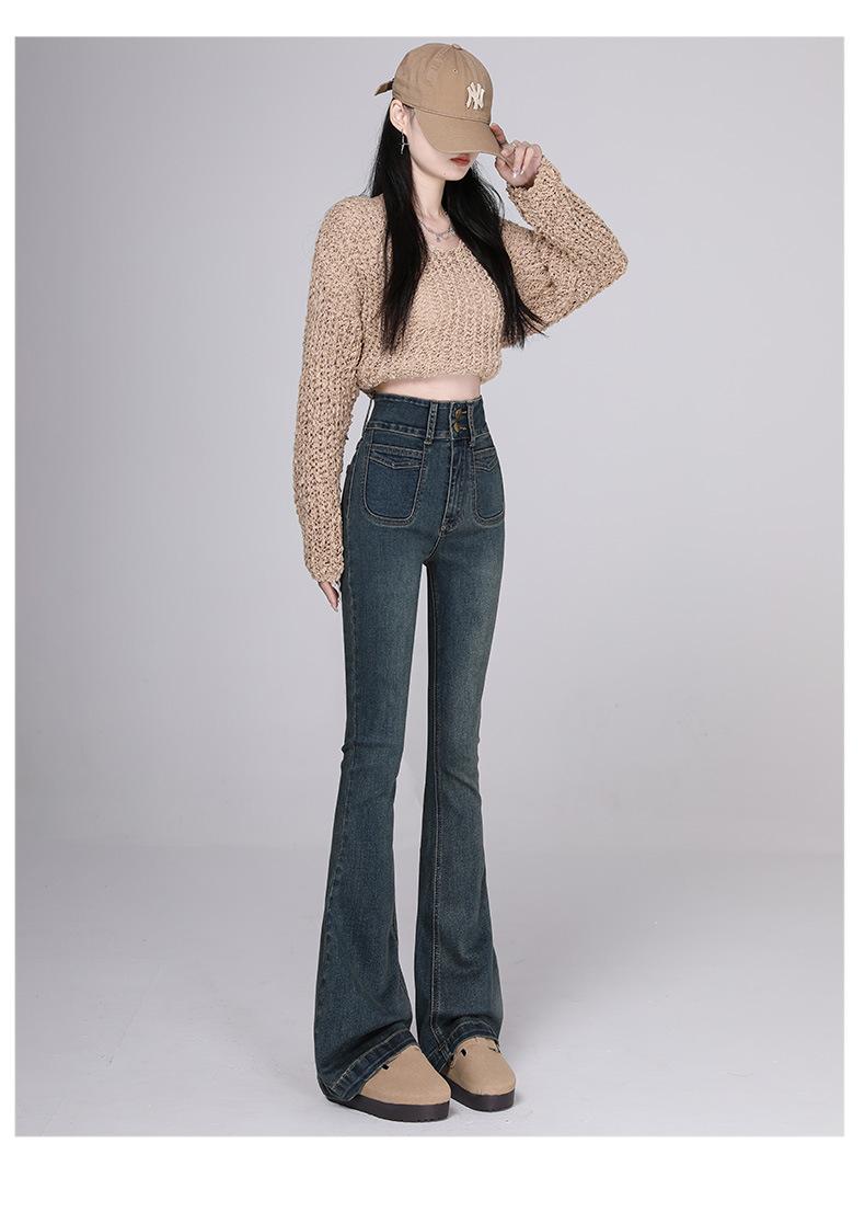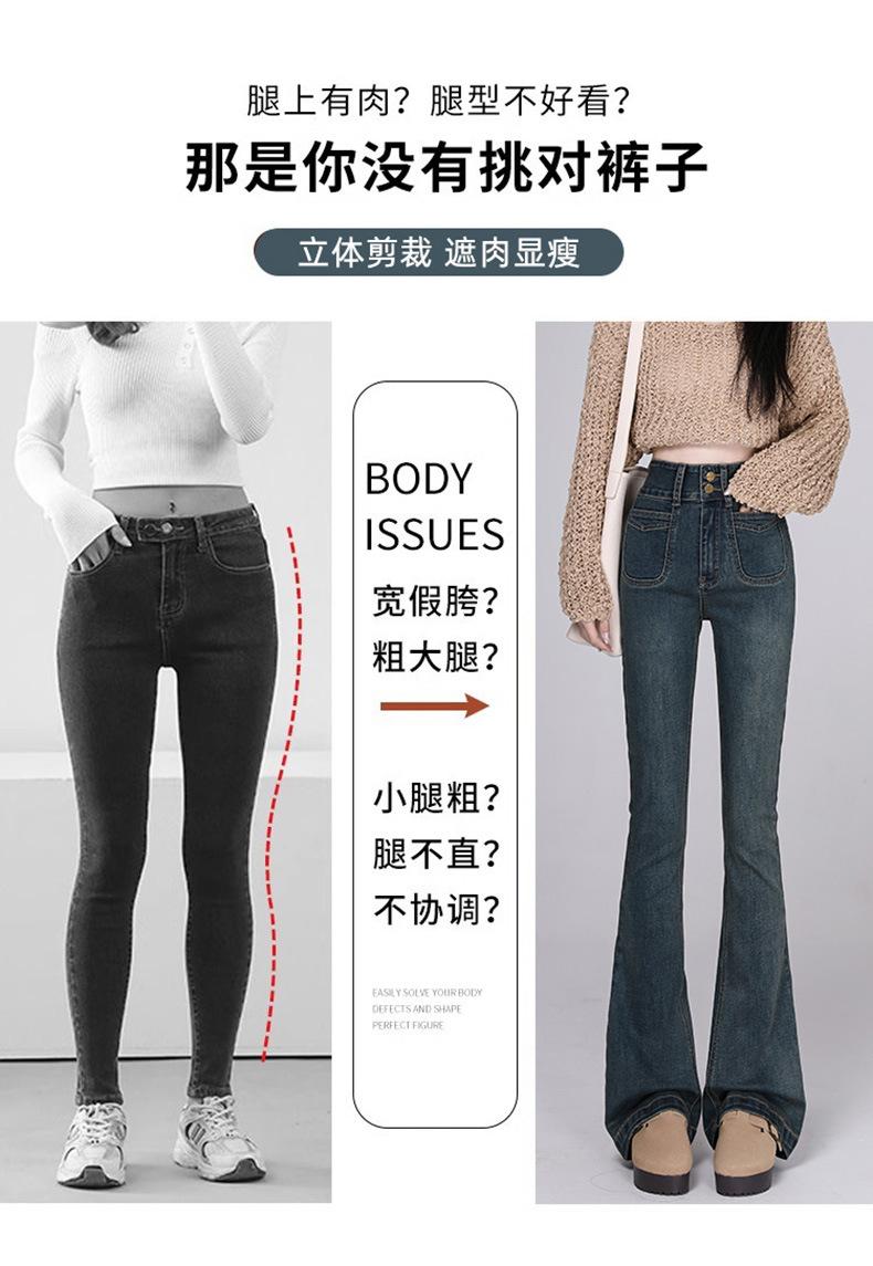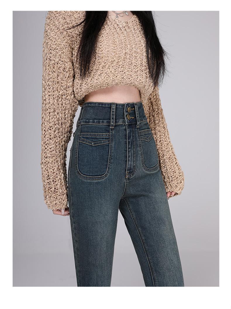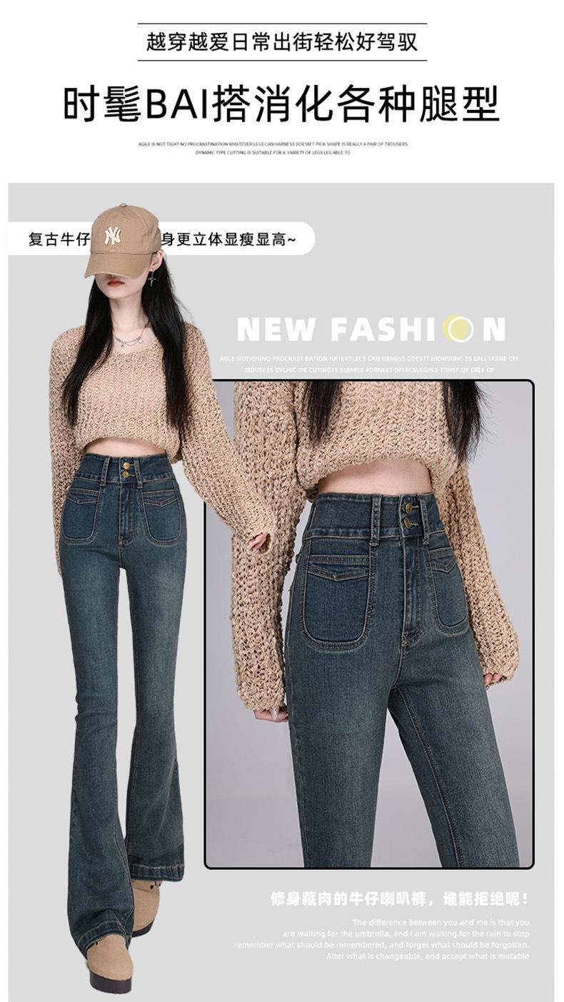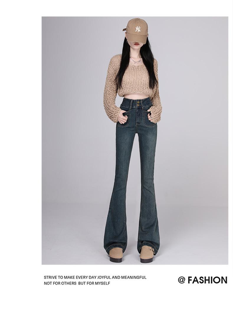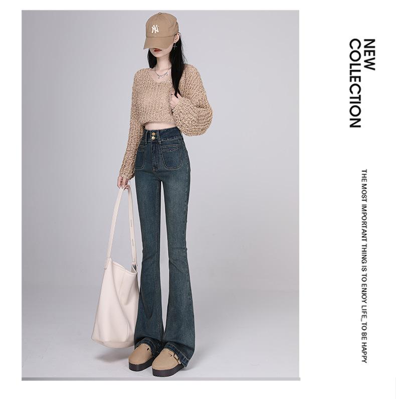 Otoño Nuevo Spice Girls Stretch Retro Doble Hebilla Cintura Alta Pantalones Acampanados Ajustados Combinan con Todo Adelgazantes Jeans Mujer