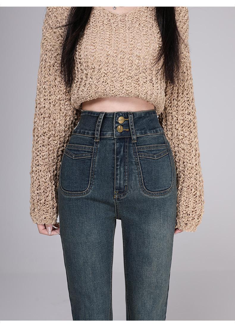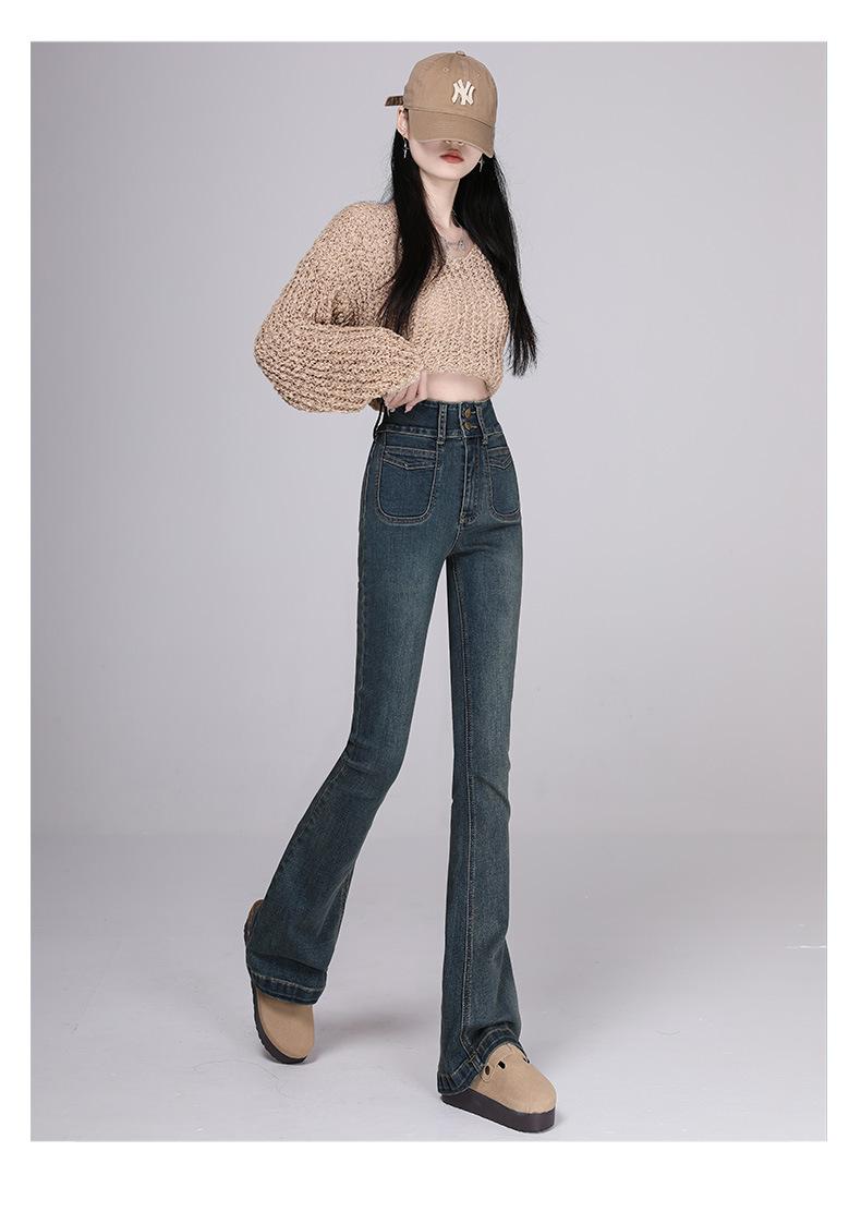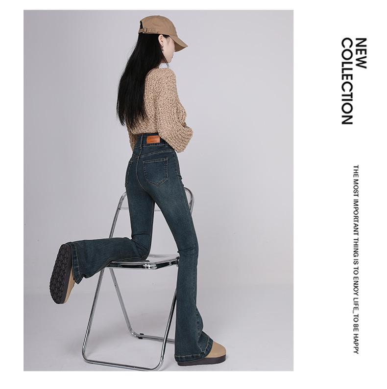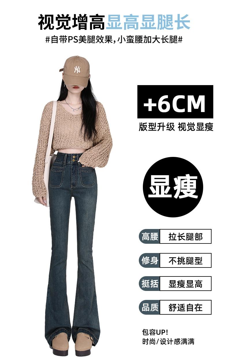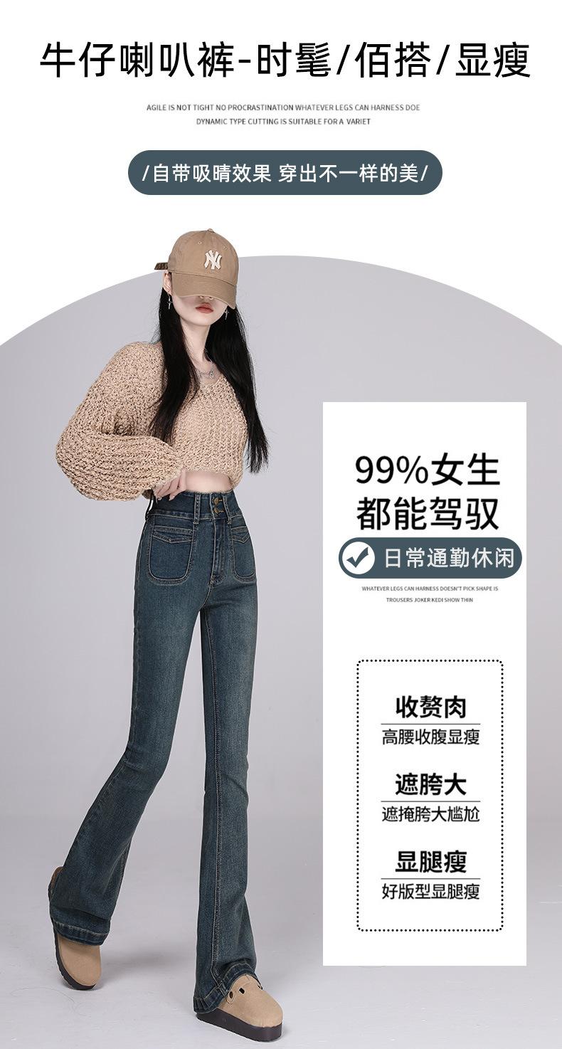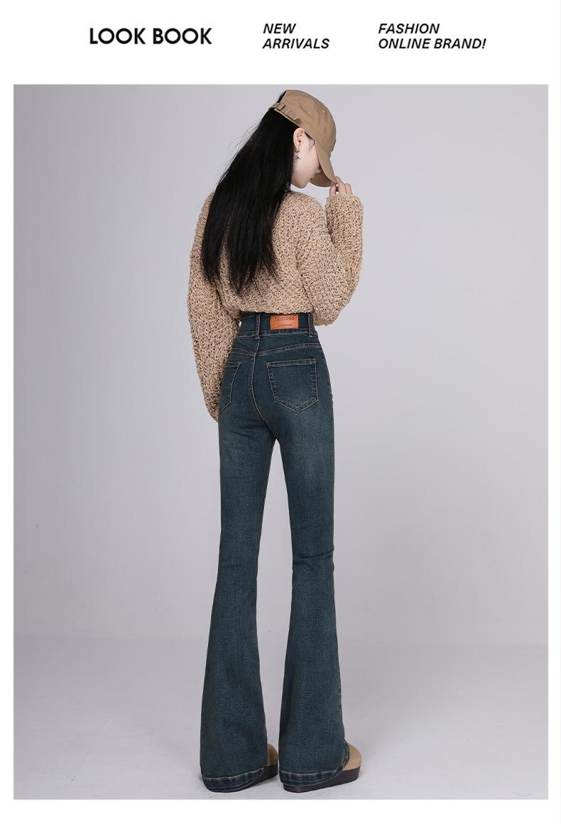 Otoño Nuevo Spice Girls Stretch Retro Doble Hebilla Cintura Alta Pantalones Acampanados Ajustados Combinan con Todo Adelgazantes Jeans Mujer