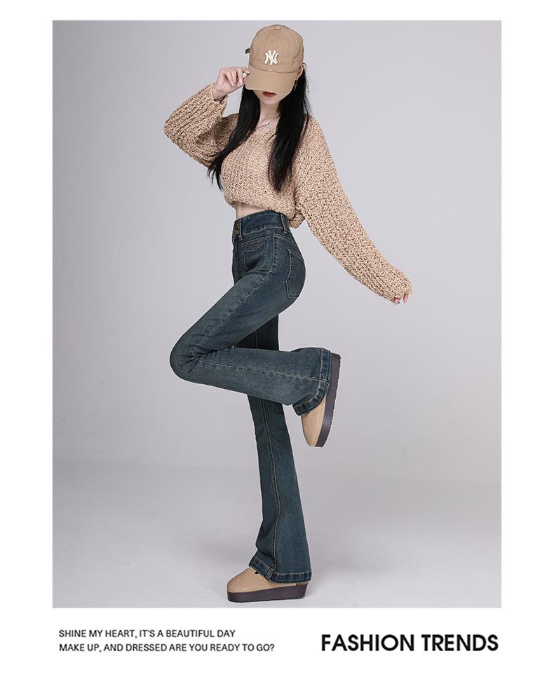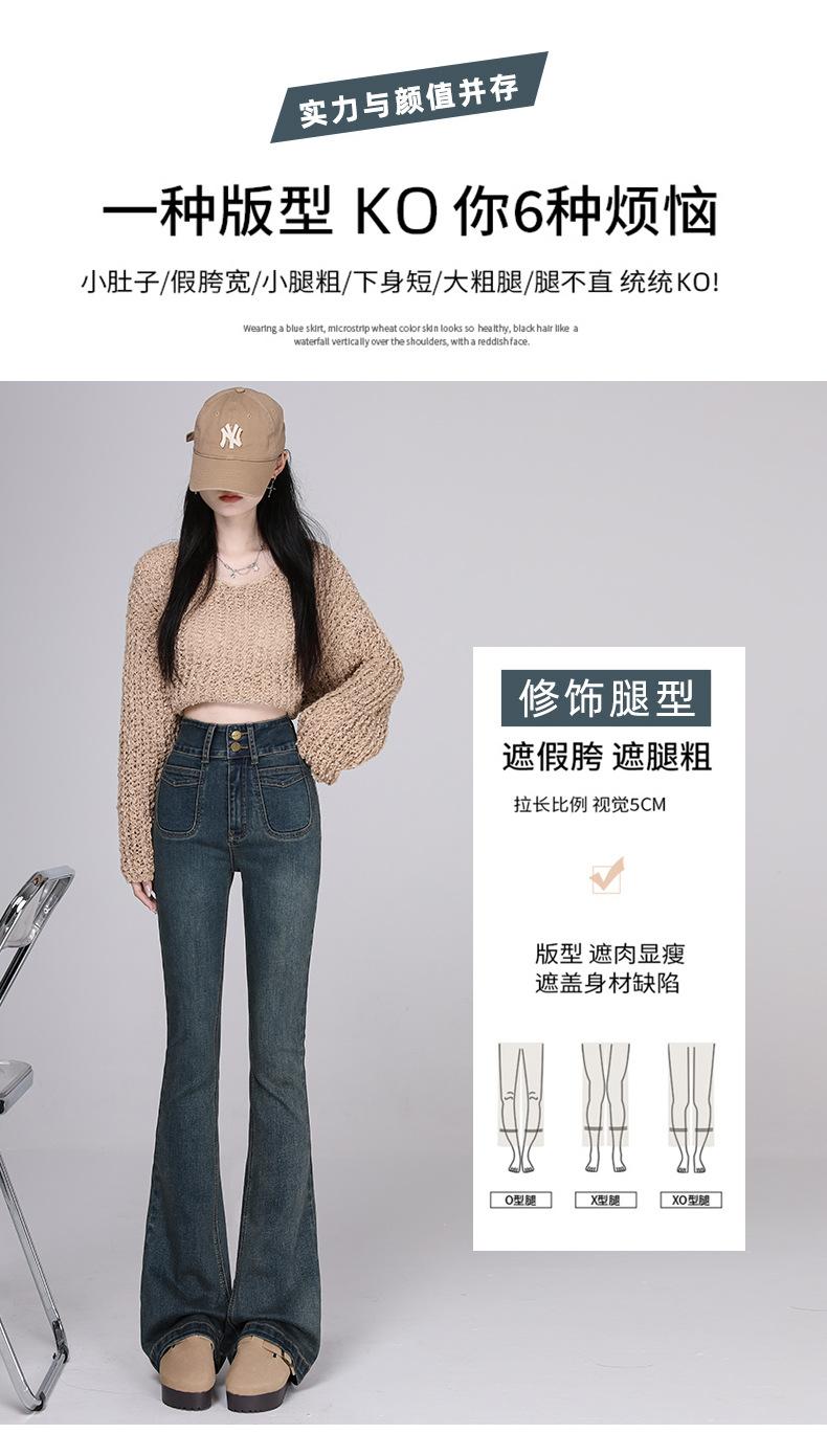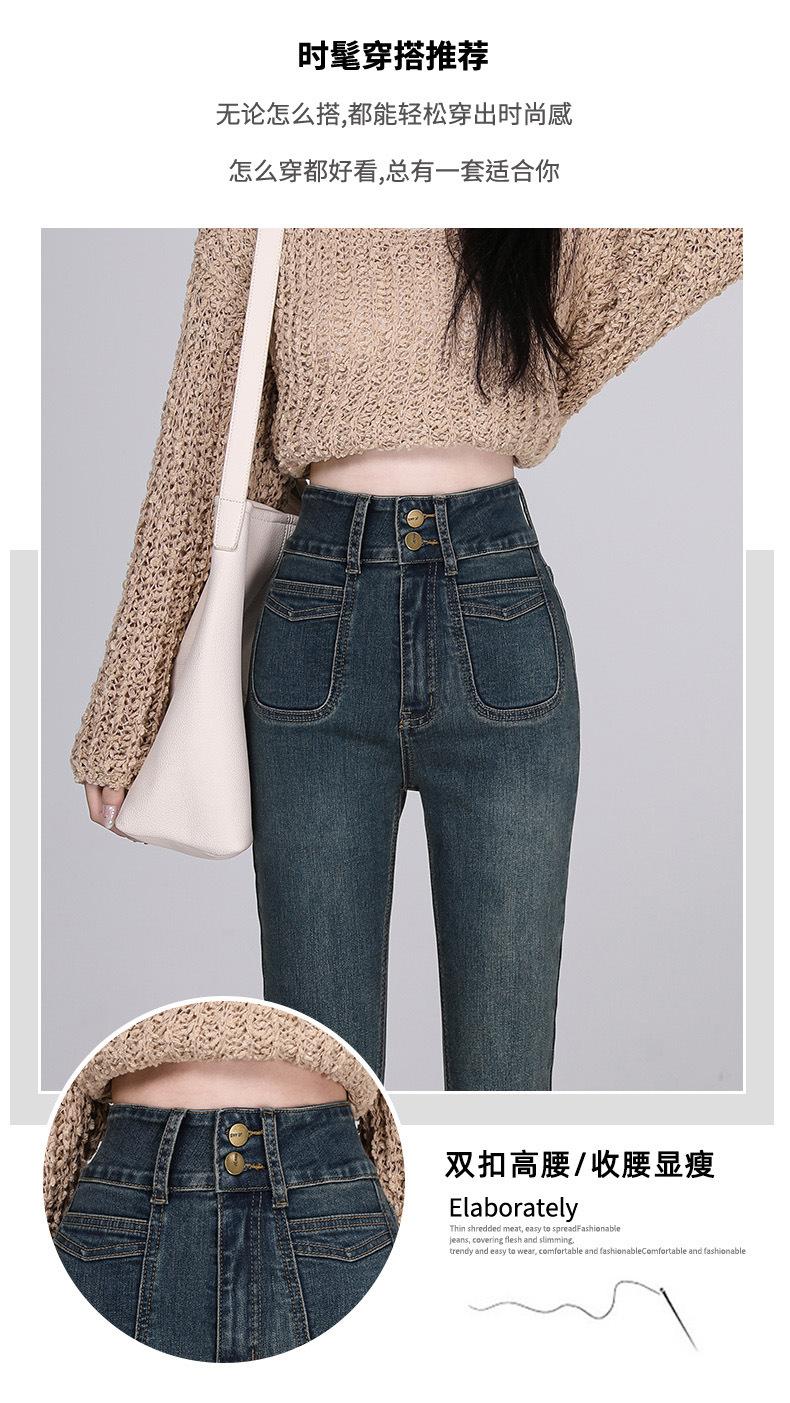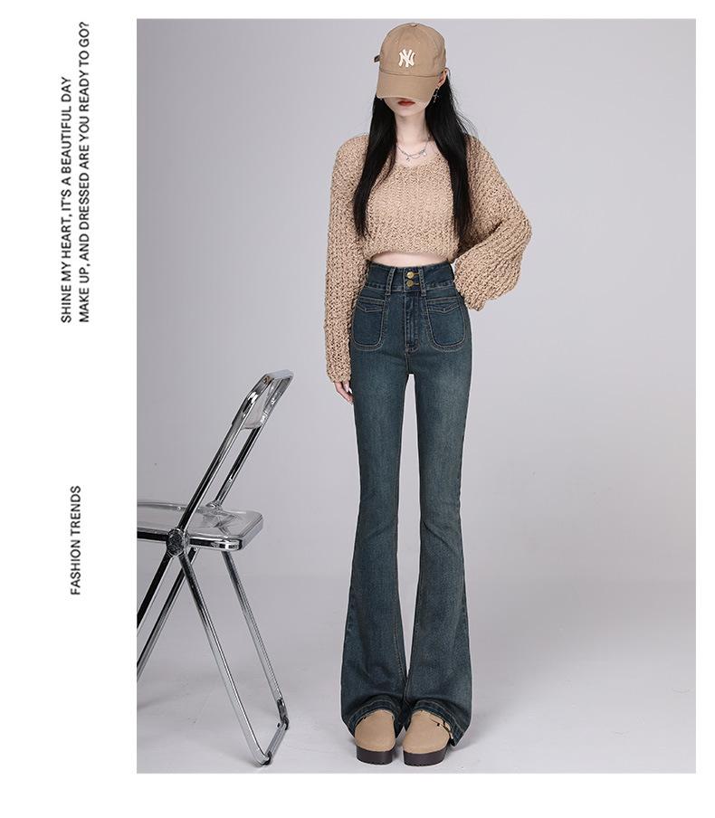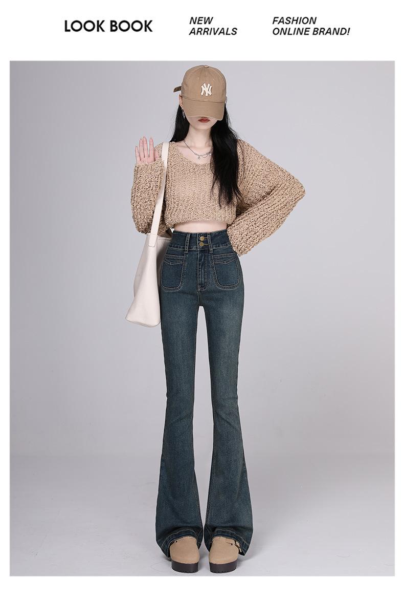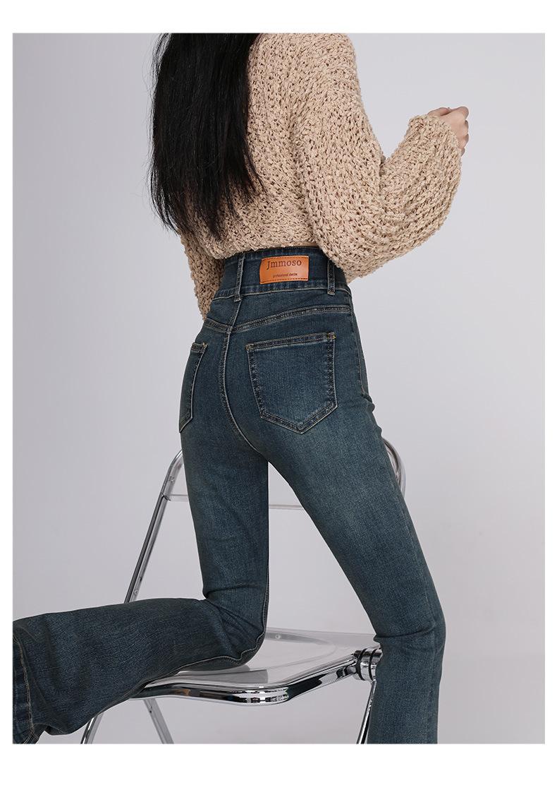 Otoño Nuevo Spice Girls Stretch Retro Doble Hebilla Cintura Alta Pantalones Acampanados Ajustados Combinan con Todo Adelgazantes Jeans Mujer