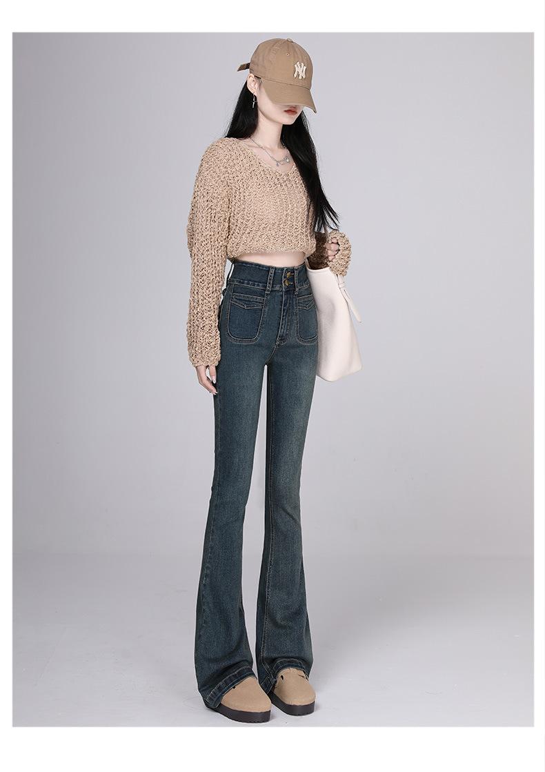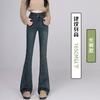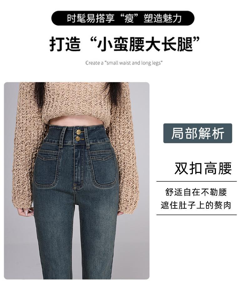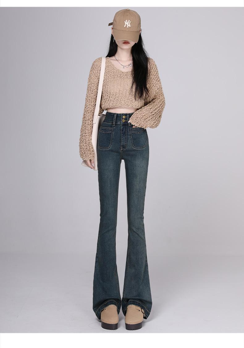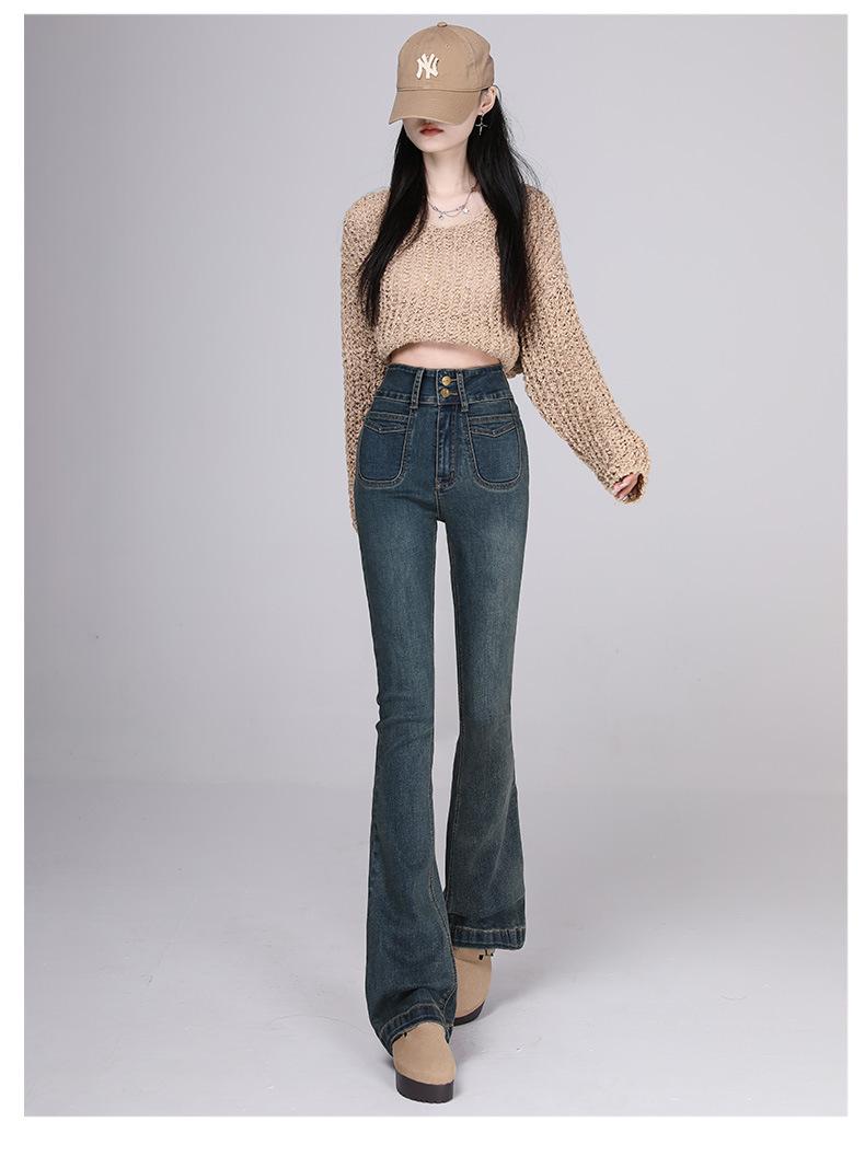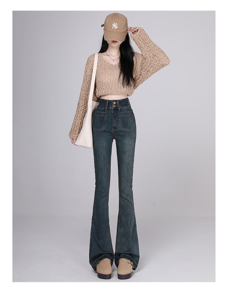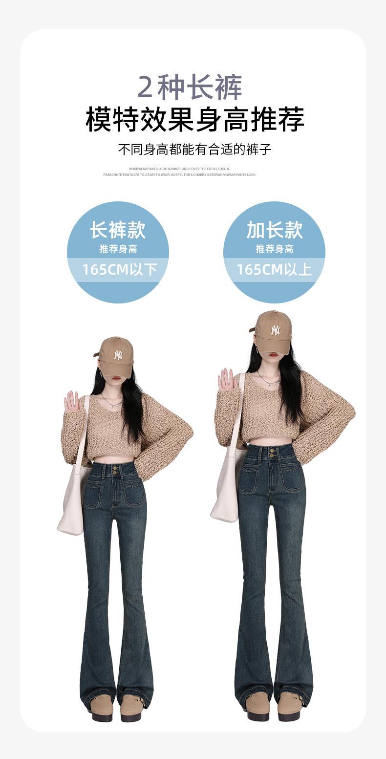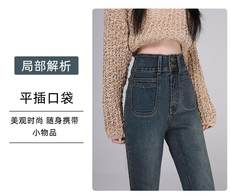 Otoño Nuevo Spice Girls Stretch Retro Doble Hebilla Cintura Alta Pantalones Acampanados Ajustados Combinan con Todo Adelgazantes Jeans Mujer