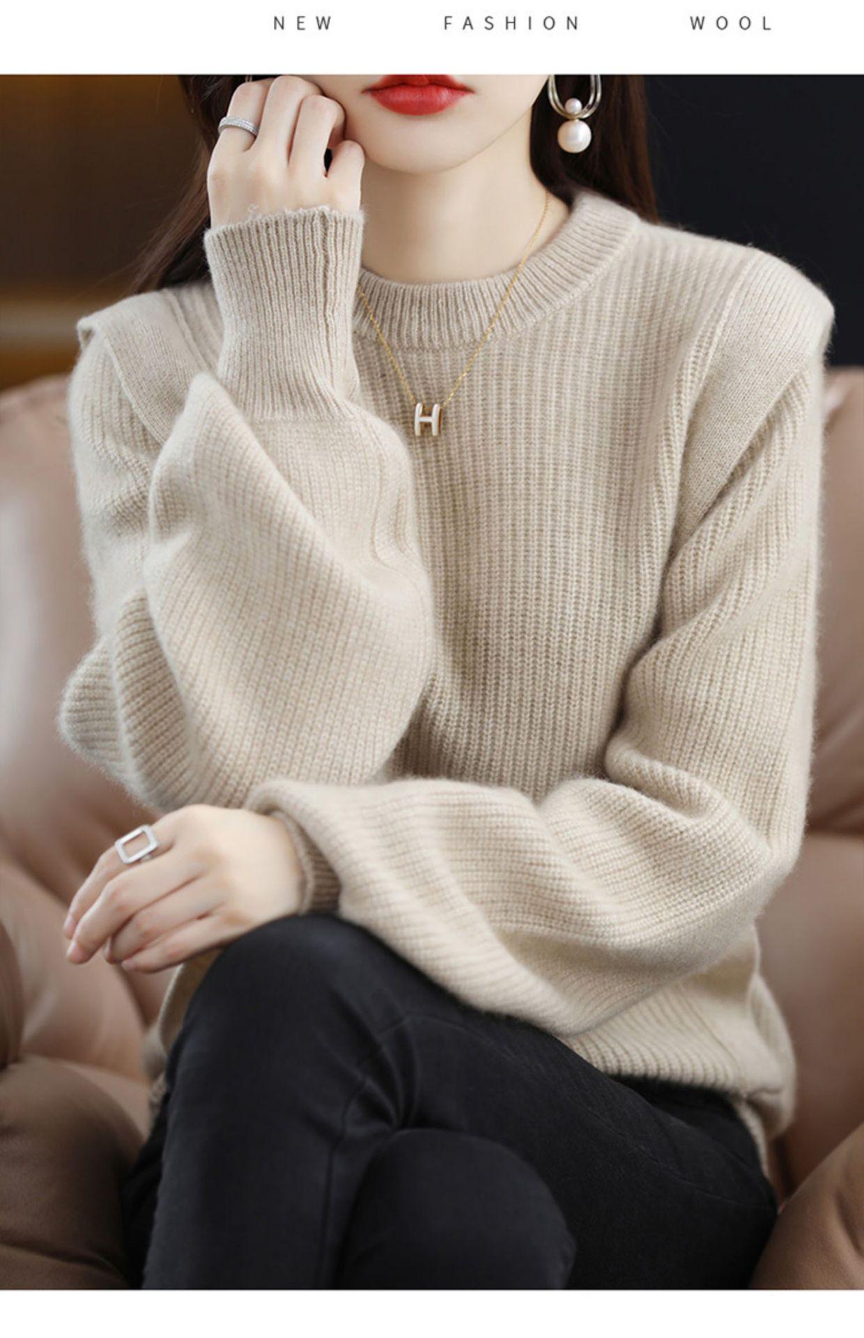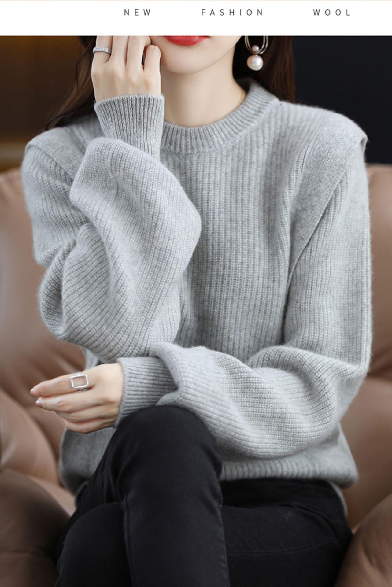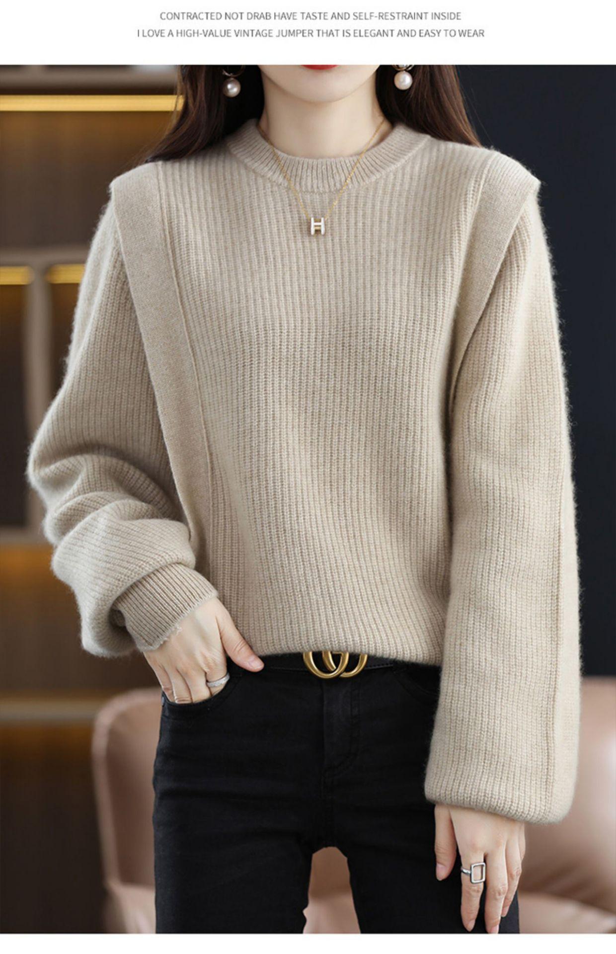 Suéter de Punto Elegante de Nuevo Estilo Otoño/Invierno 2025 de Dos Piezas Falsas para Mujer, Cuello Redondo, Corte Holgado, Extragrande y Grueso