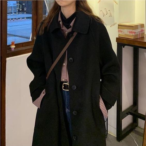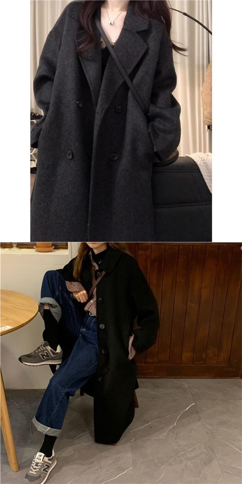 Abrigo de lana de largo medio 2025 para mujer otoño invierno de alta gama petite estilo coreano por encima de la rodilla casual abrigo trench abrigo de lana