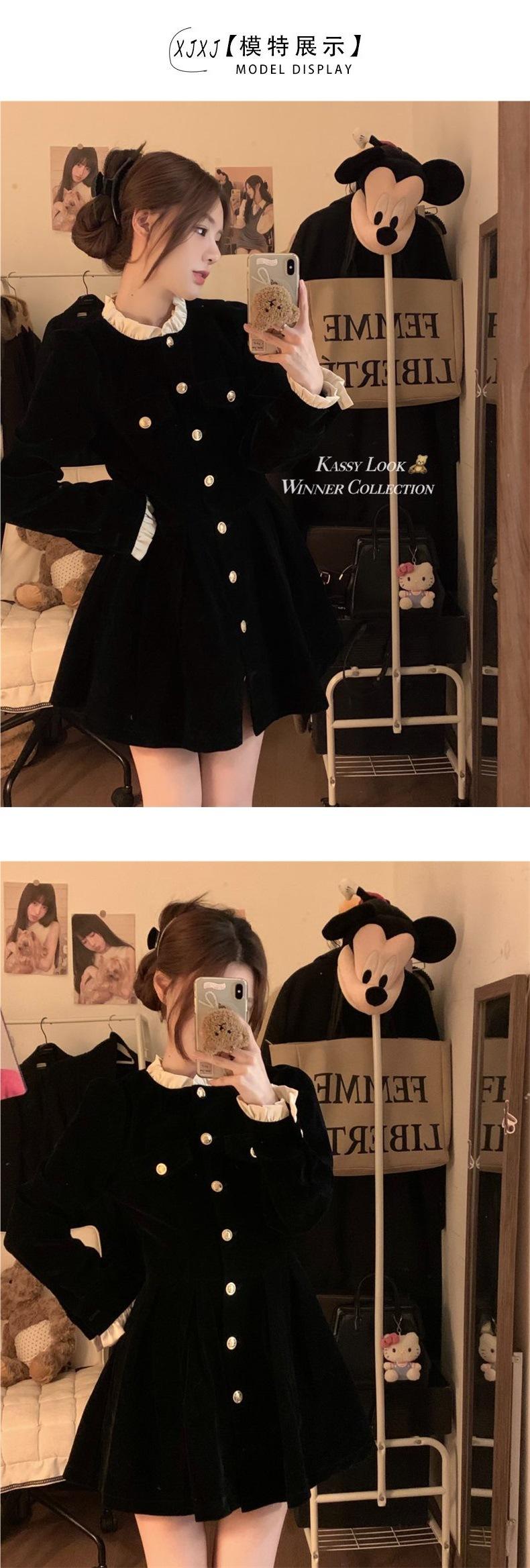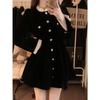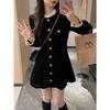Vestido Francés Estilo Hepburn Negro Pequeño de Alta Gama para Mujer Otoño Temprano 2025 Nuevo Temperamento Falda Corta Ajustada a la Cintura