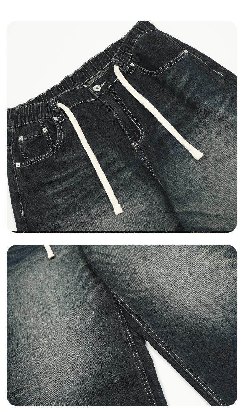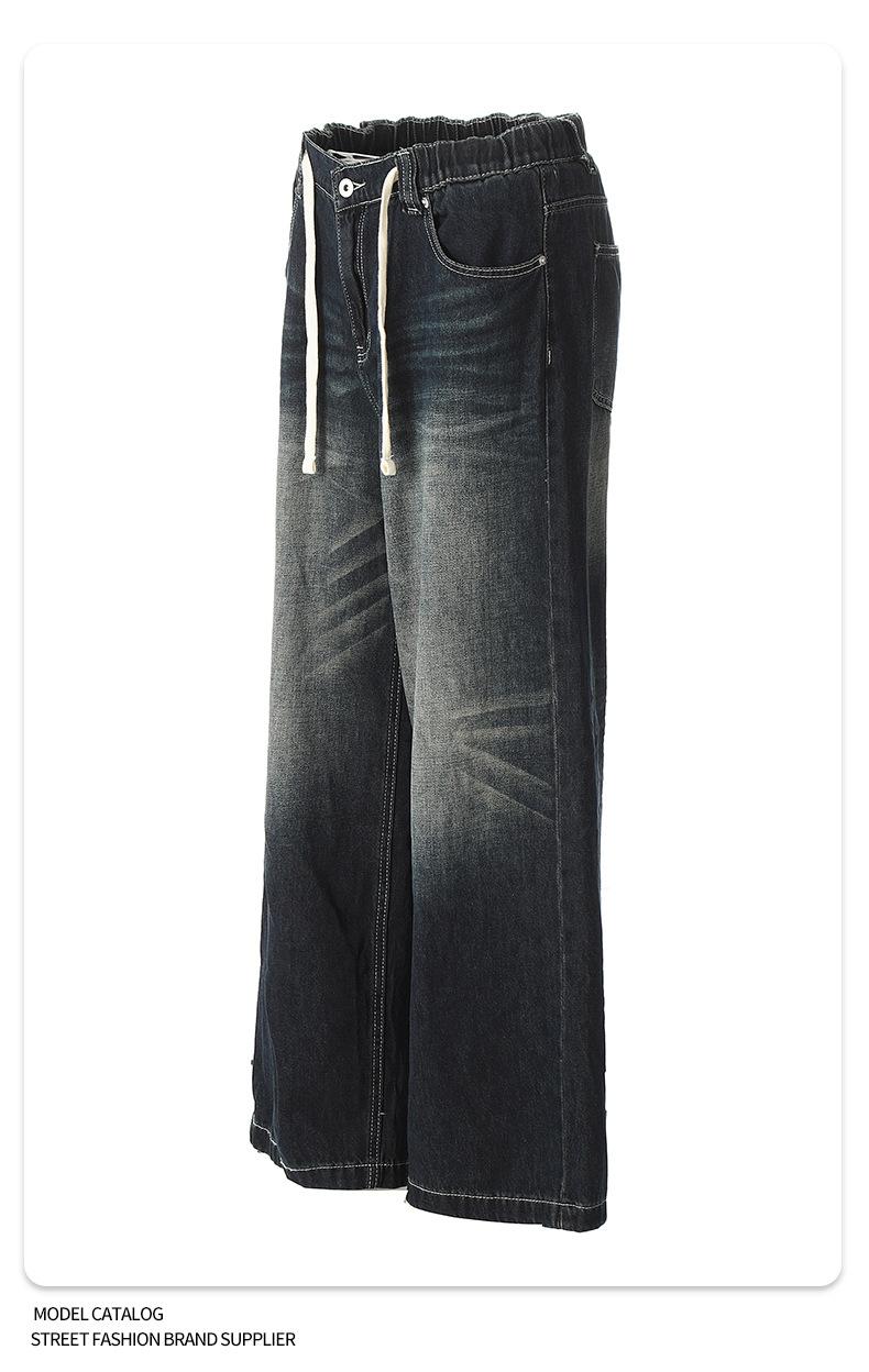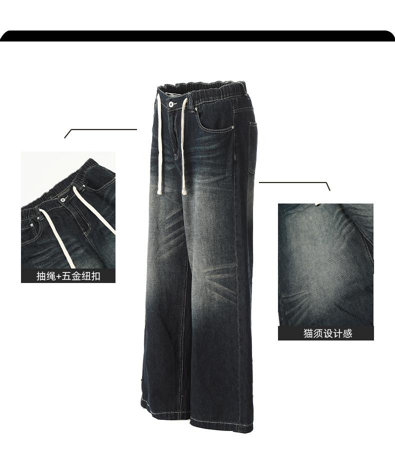 Yongfang Calle Europea y Americana Otoño Americano Retro Lavado Cintura Elástica Diseño Bigotes Desgastados Jeans Simples hasta el Suelo