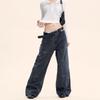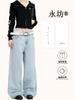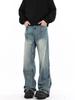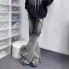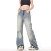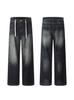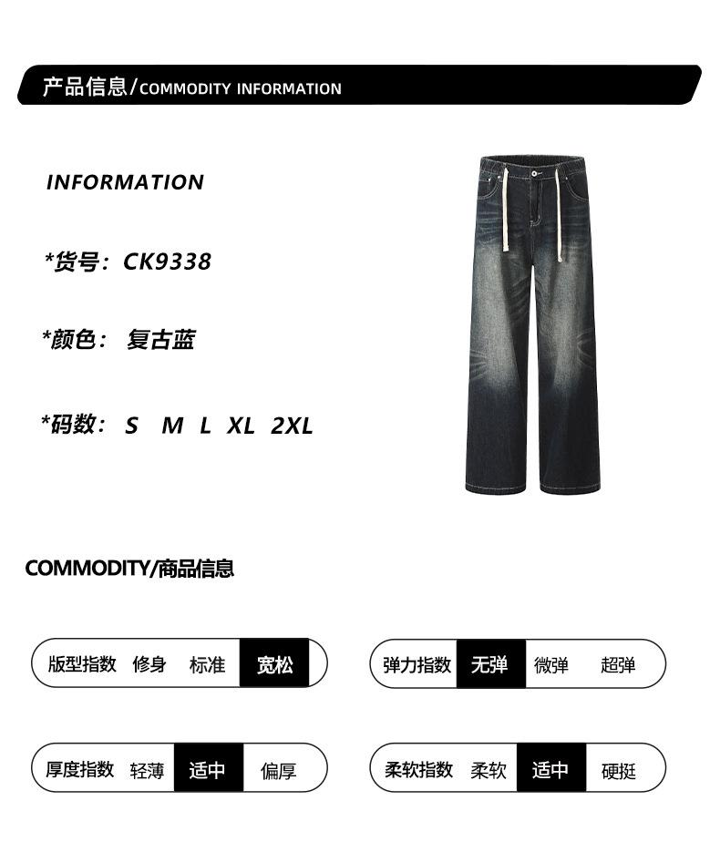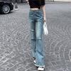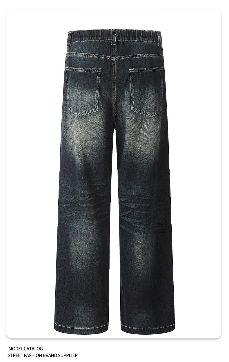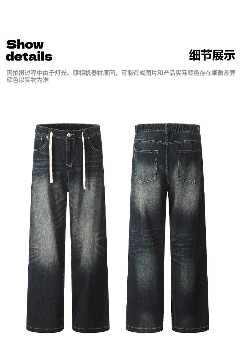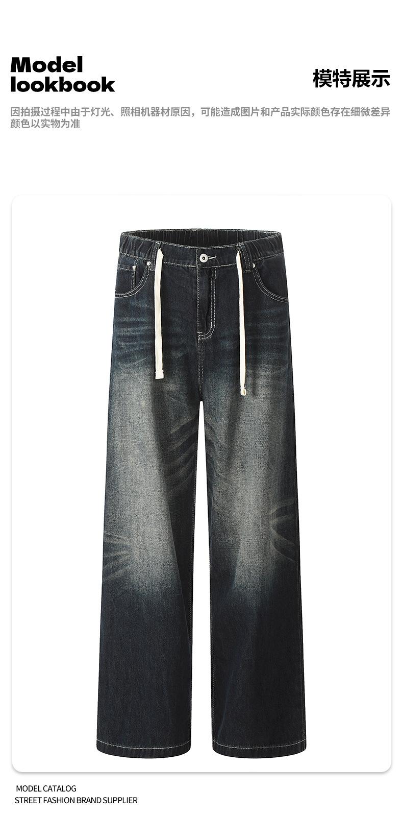 Yongfang Calle Europea y Americana Otoño Americano Retro Lavado Cintura Elástica Diseño Bigotes Desgastados Jeans Simples hasta el Suelo