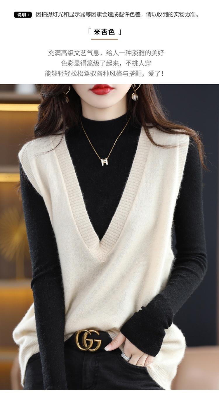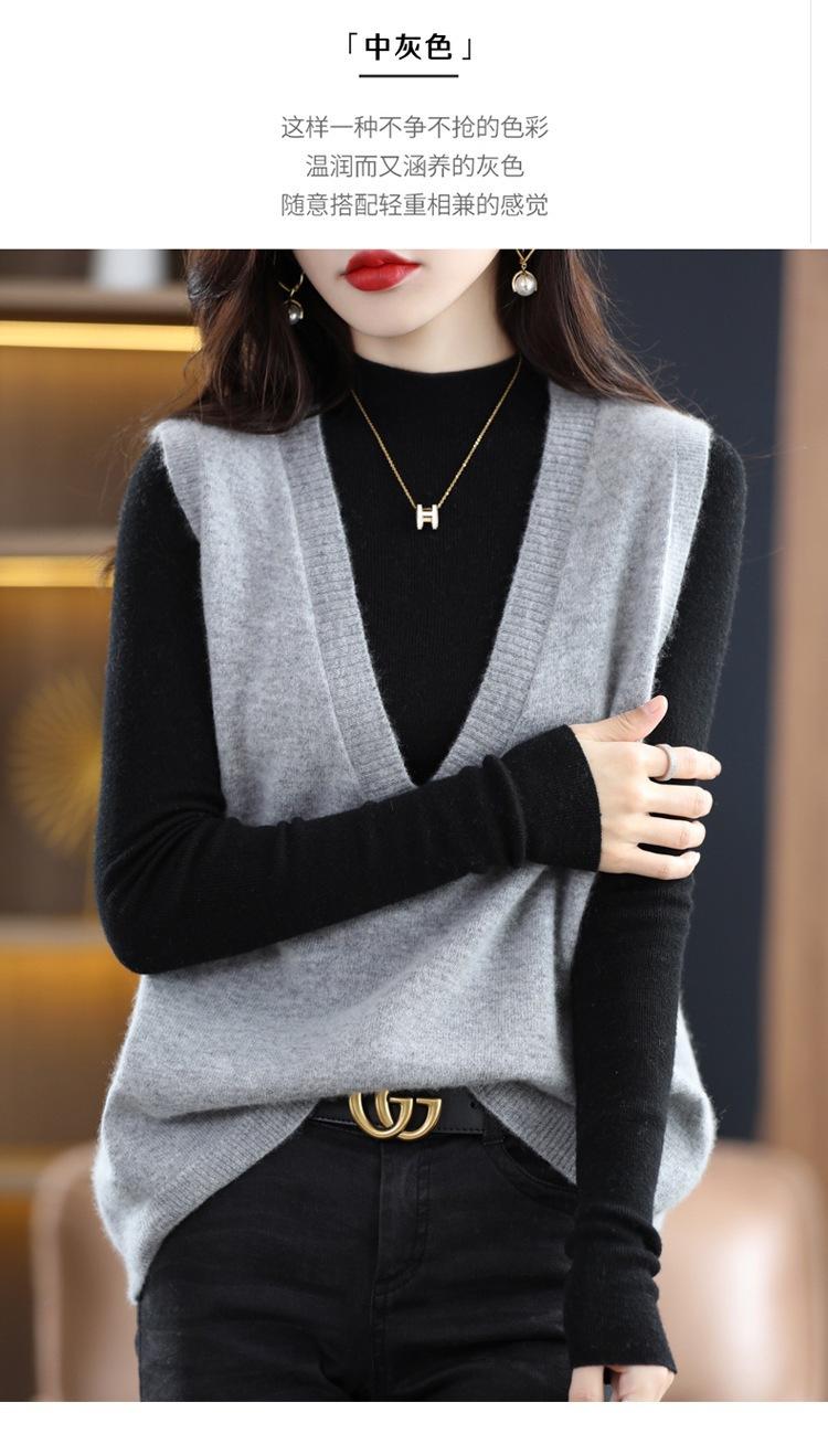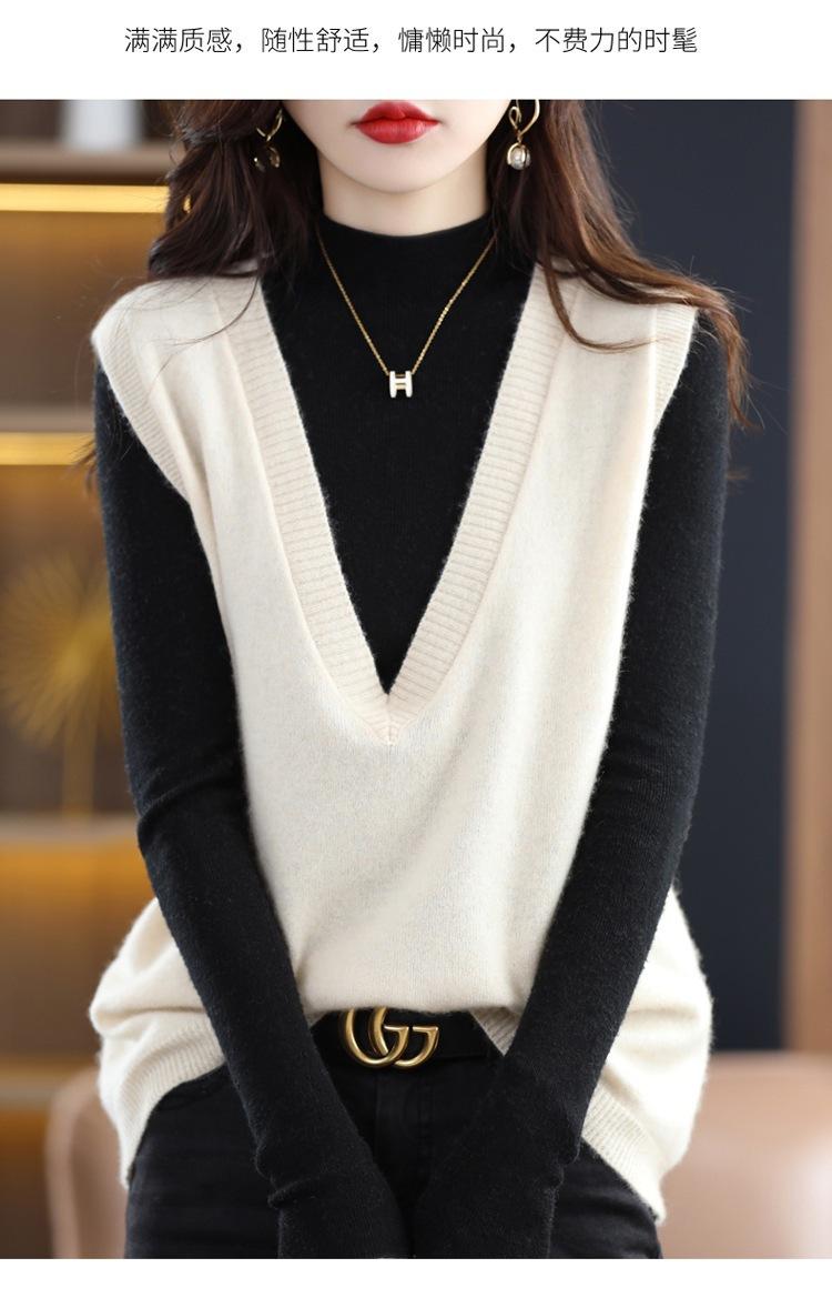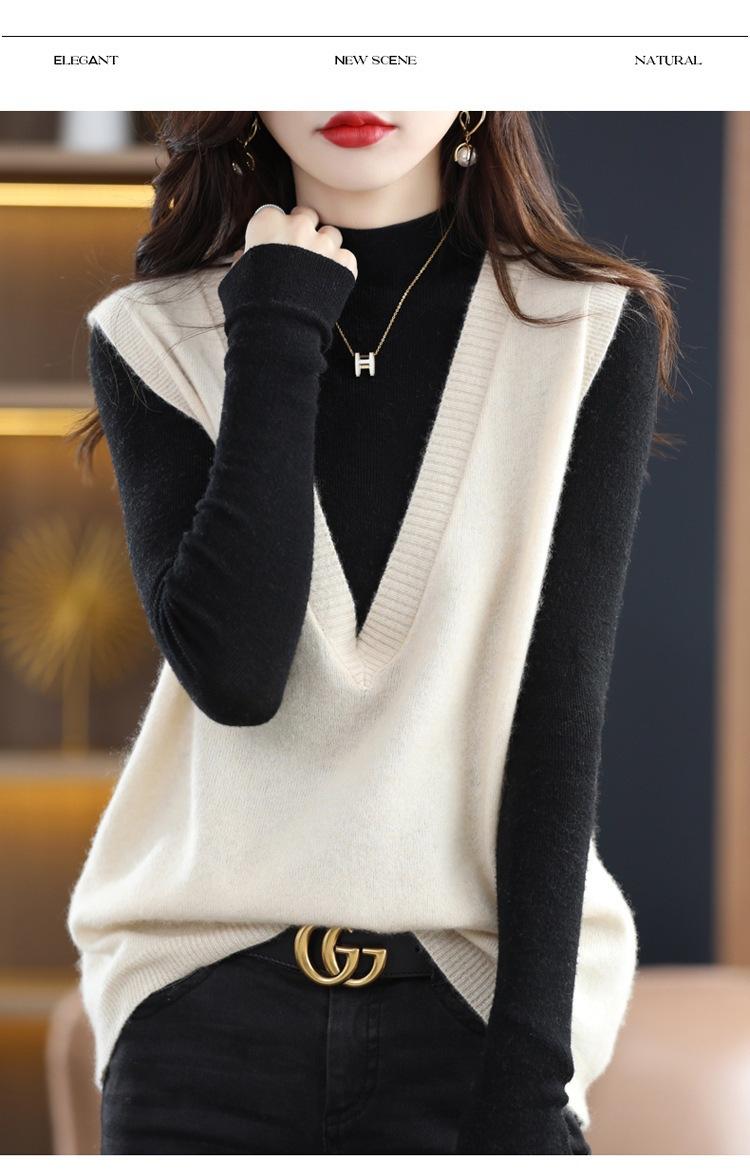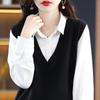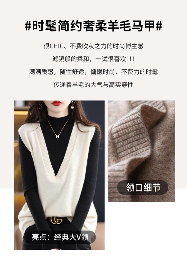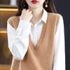 Chaleco Tejido de Lana 100% Pura Suéter sin Mangas Ropa Exterior para Mujer 2025 Otoño/Invierno Nuevo Estilo Chaleco de Hombro Top en Capas