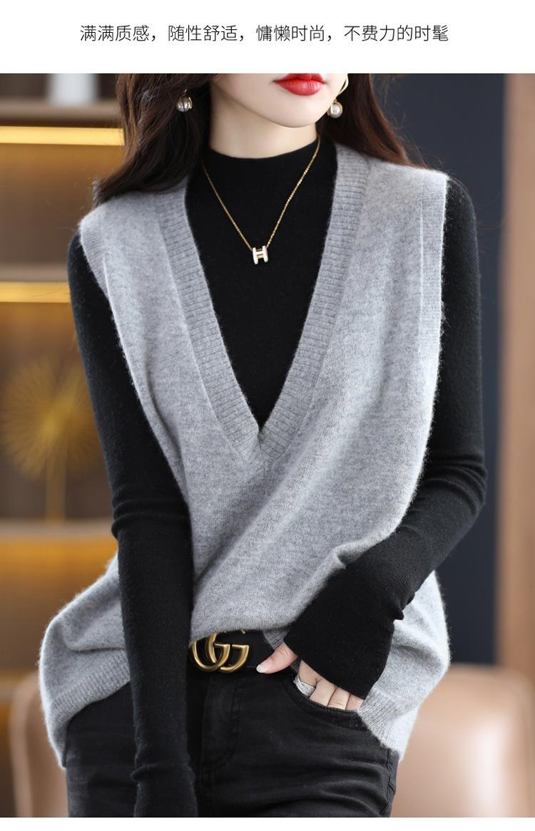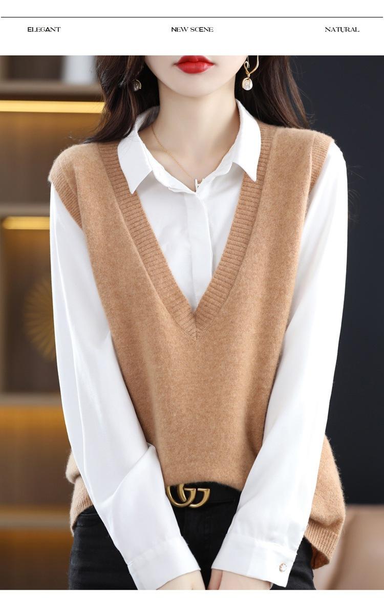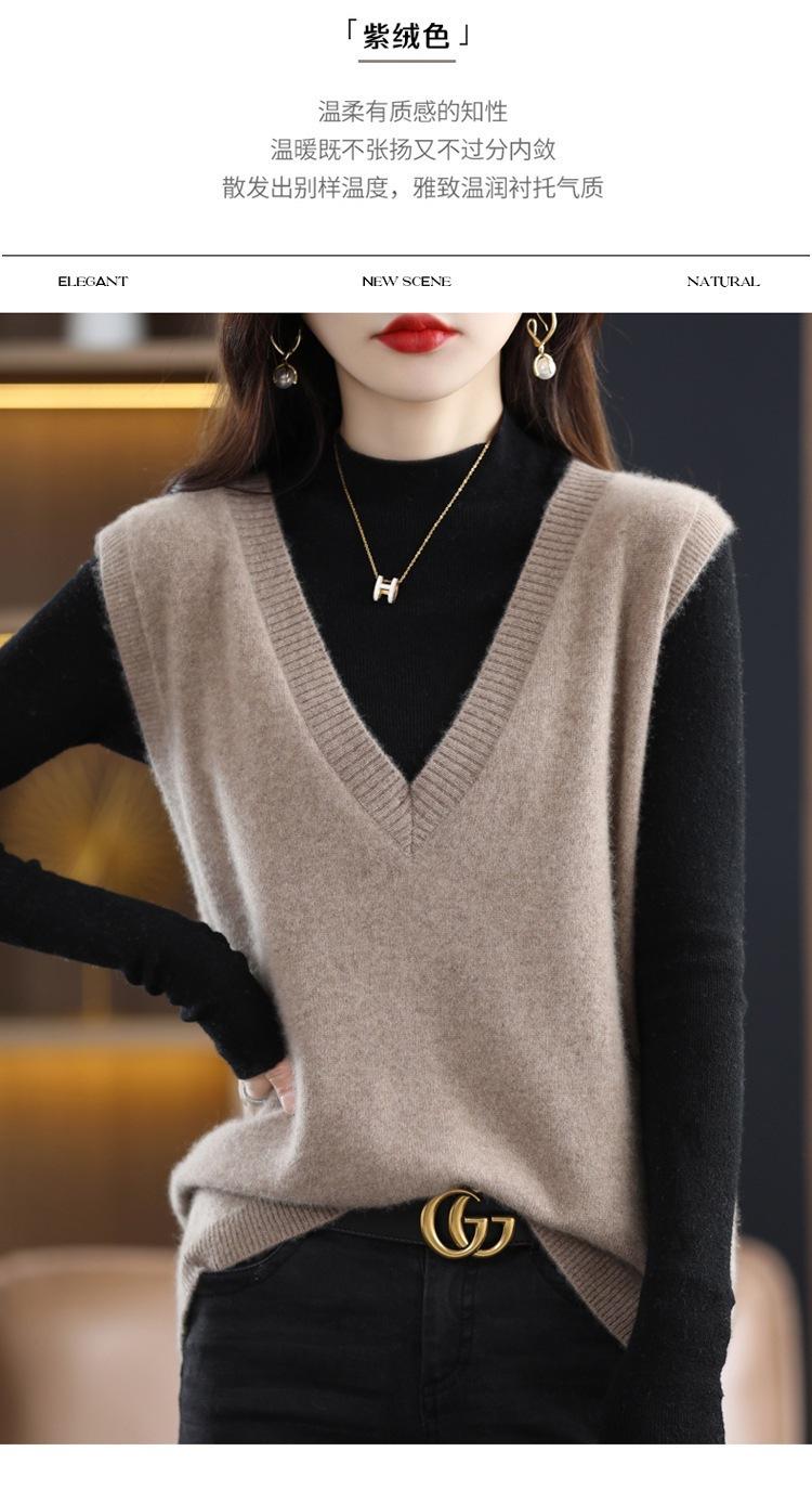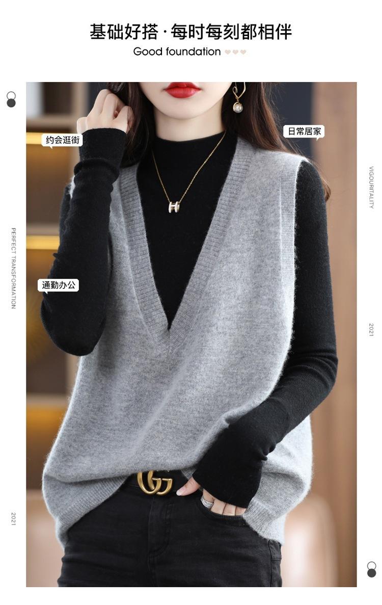 Chaleco Tejido de Lana 100% Pura Suéter sin Mangas Ropa Exterior para Mujer 2025 Otoño/Invierno Nuevo Estilo Chaleco de Hombro Top en Capas
