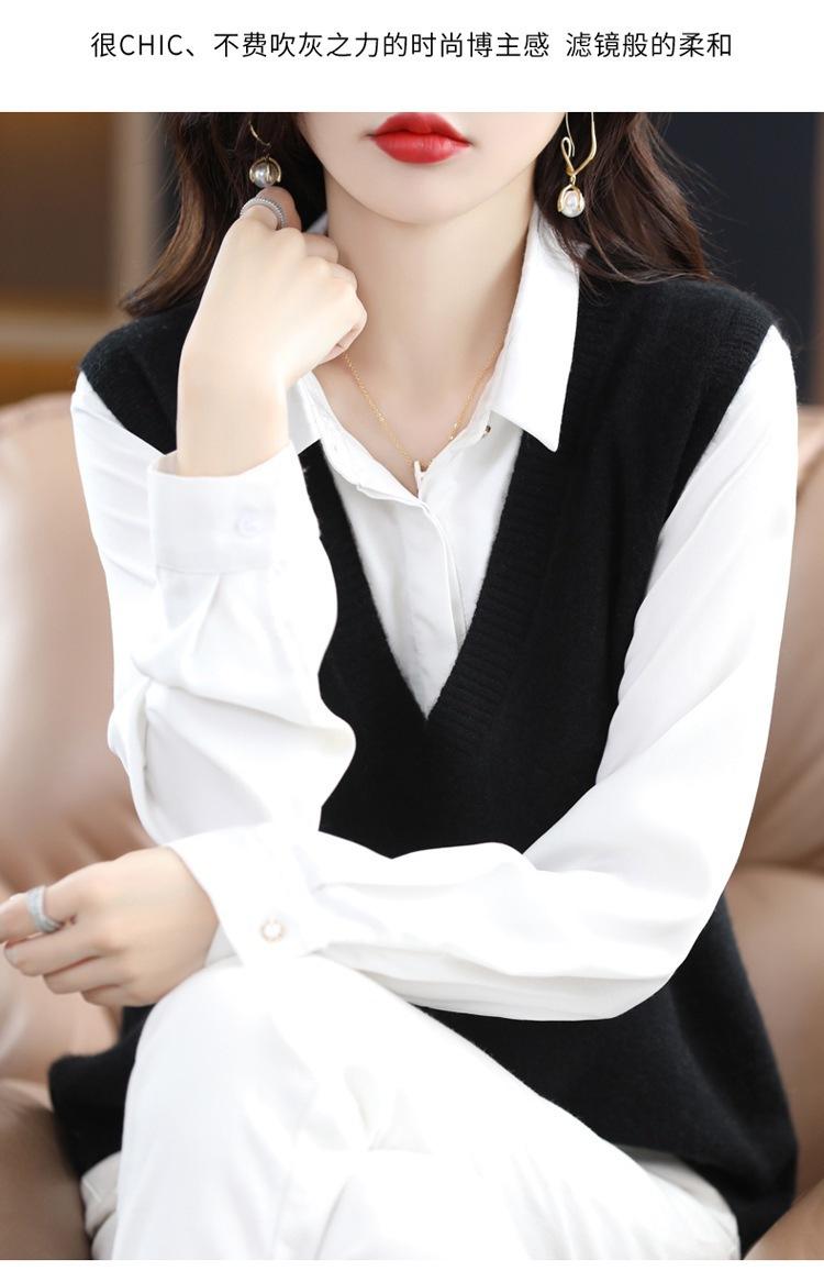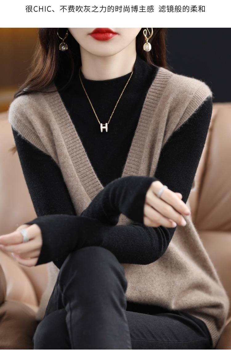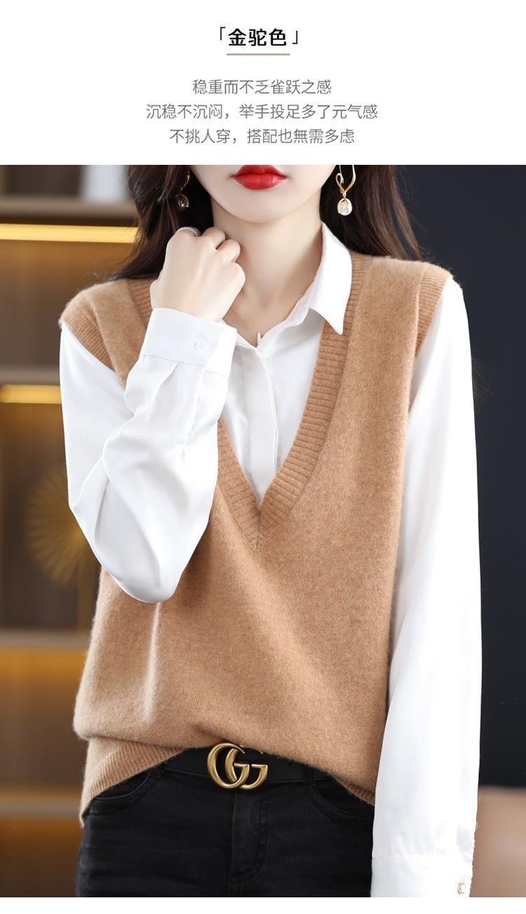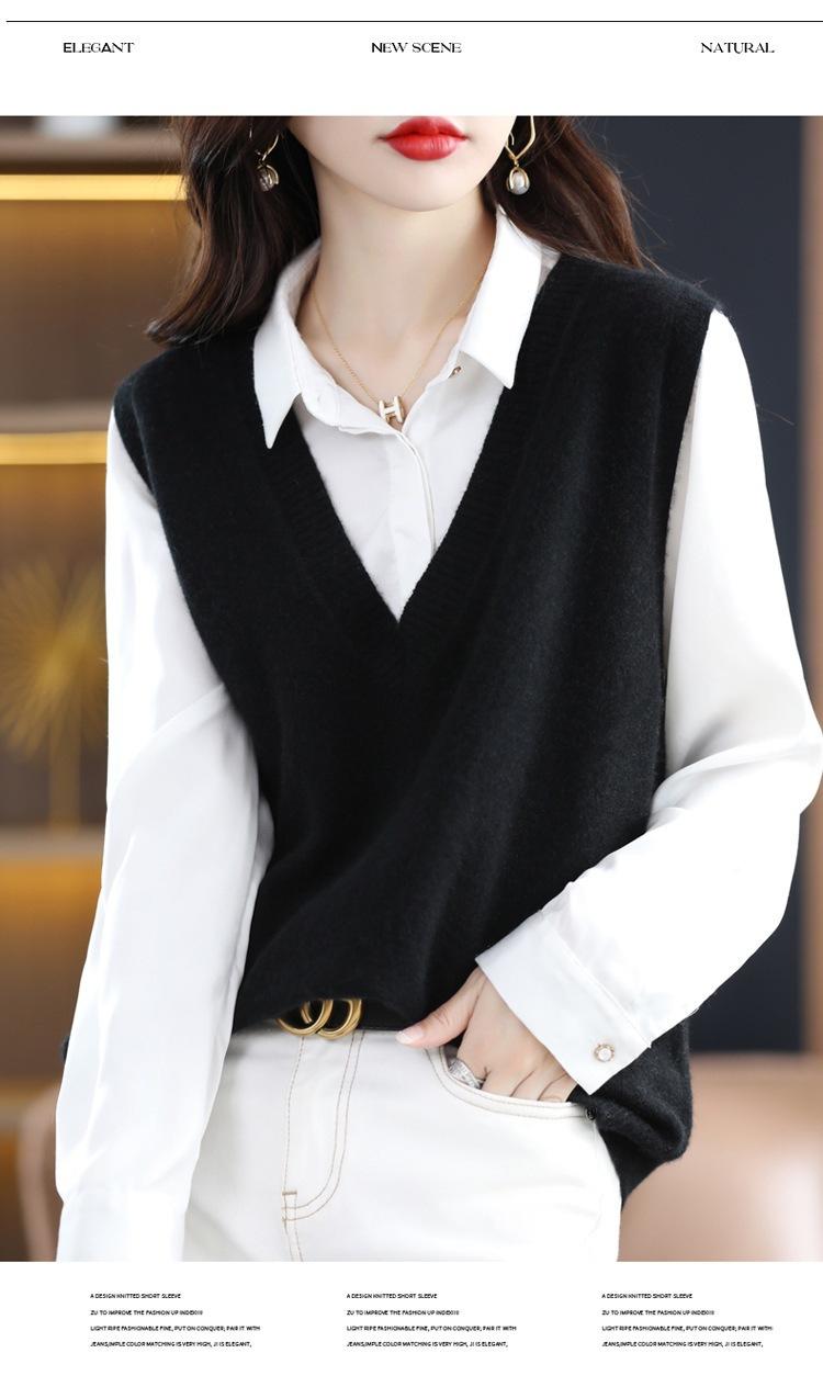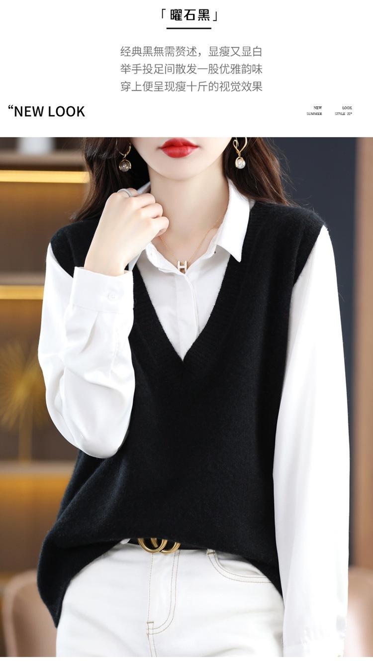 Chaleco Tejido de Lana 100% Pura Suéter sin Mangas Ropa Exterior para Mujer 2025 Otoño/Invierno Nuevo Estilo Chaleco de Hombro Top en Capas