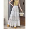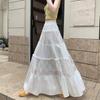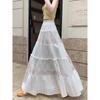 Falda Pastel de Malla Bordada Blanca con Empalme Verano 2025 Nueva Falda Midi de Cintura Alta