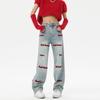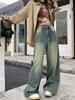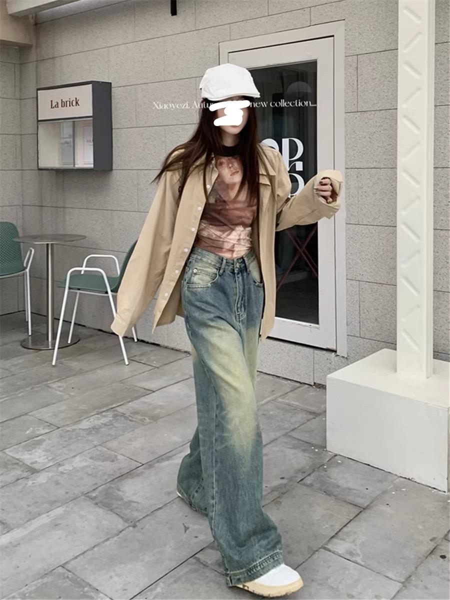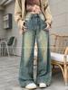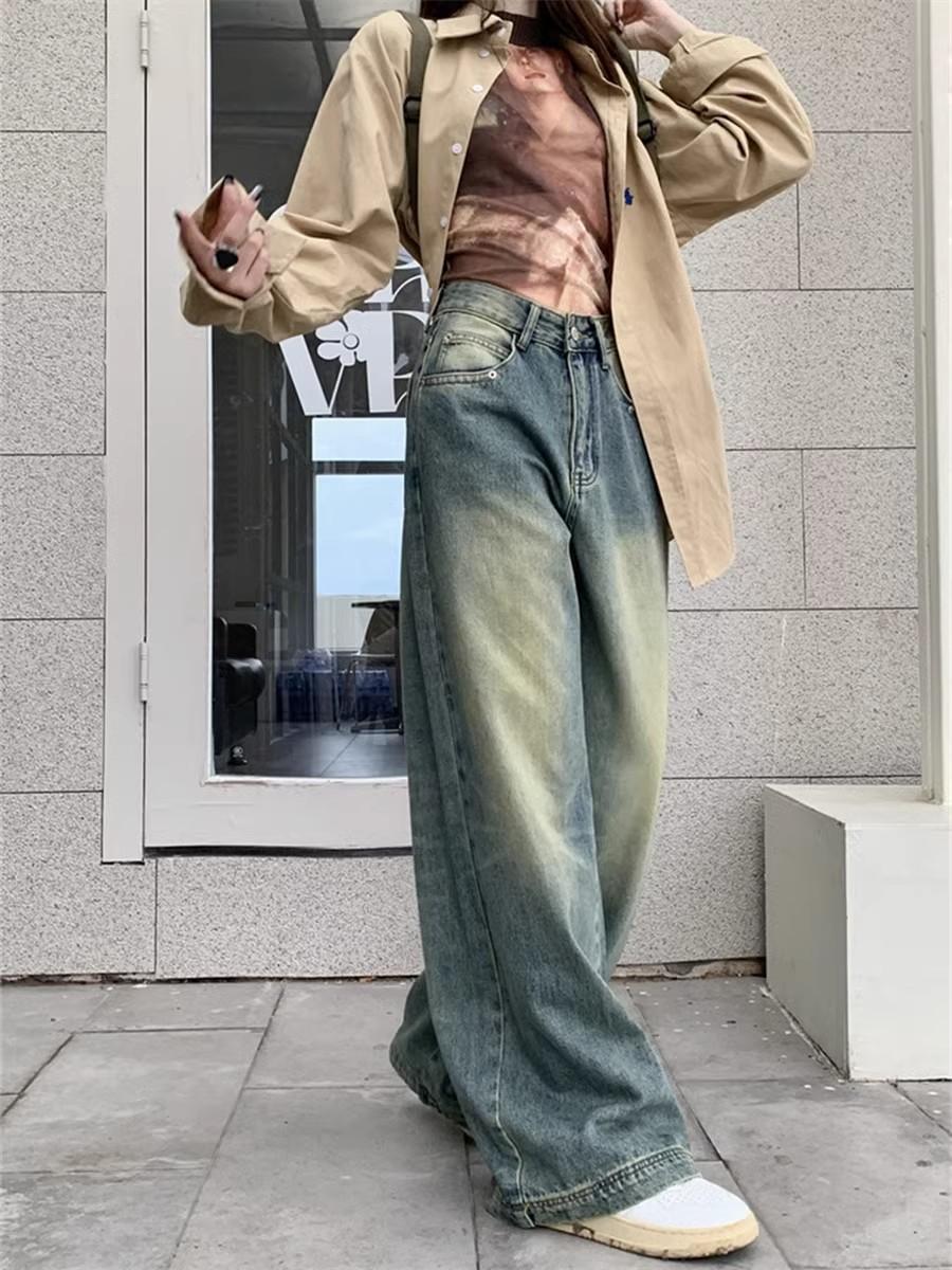 Jeans Retro 2024 para Mujer Primavera y Otoño Pantalones Rectos de Cintura Alta Estilo Americano High Street Sueltos Sumergidos Más Largos Pantalones Rectos