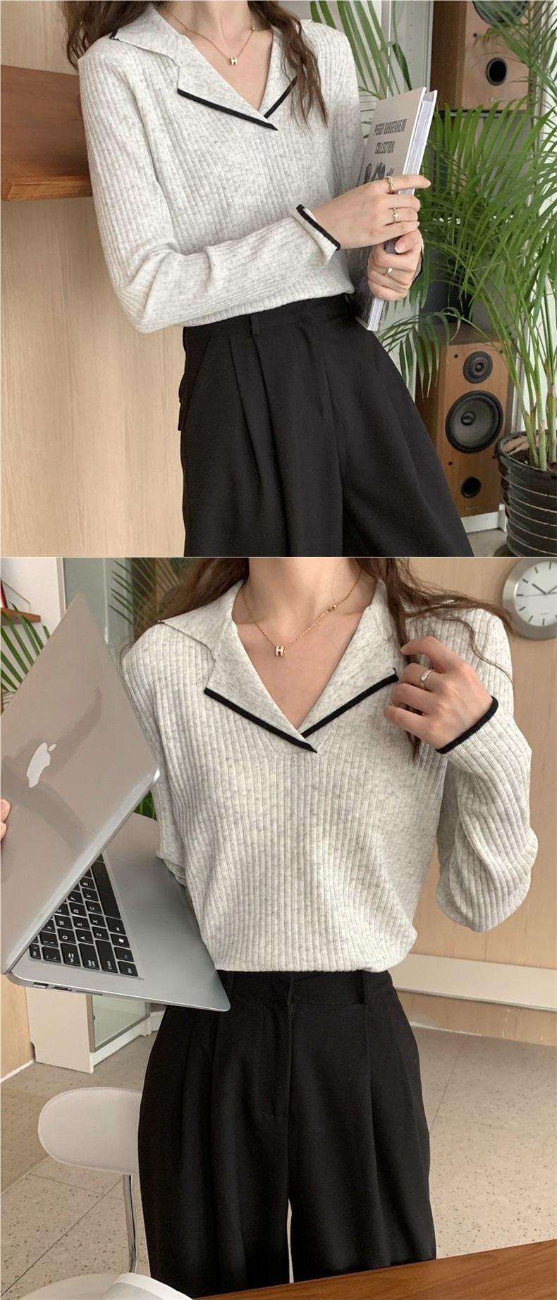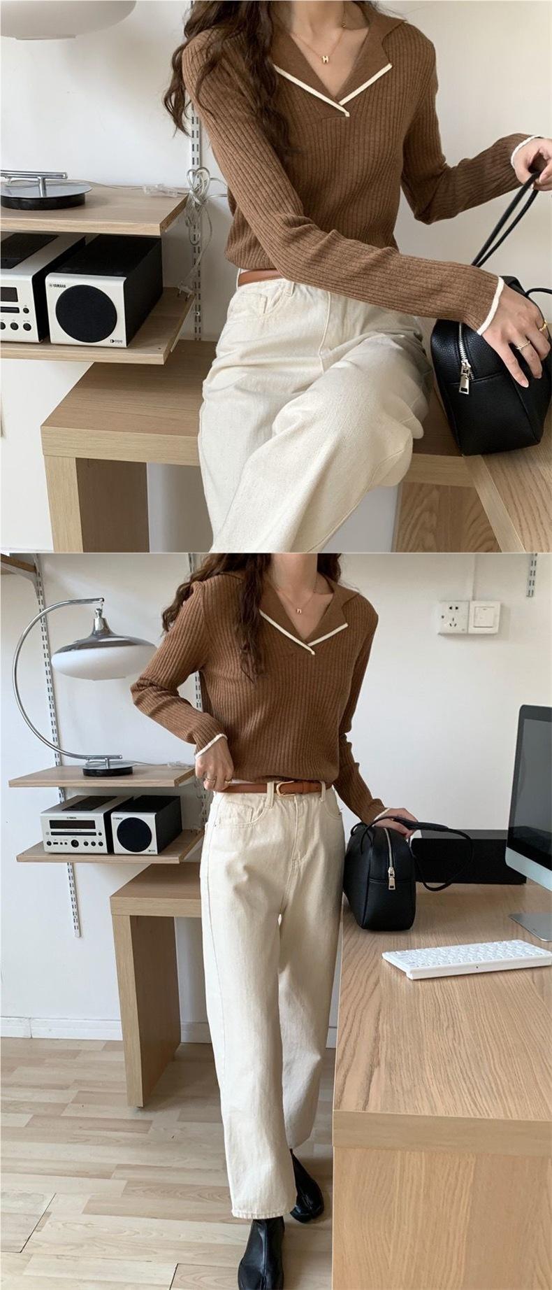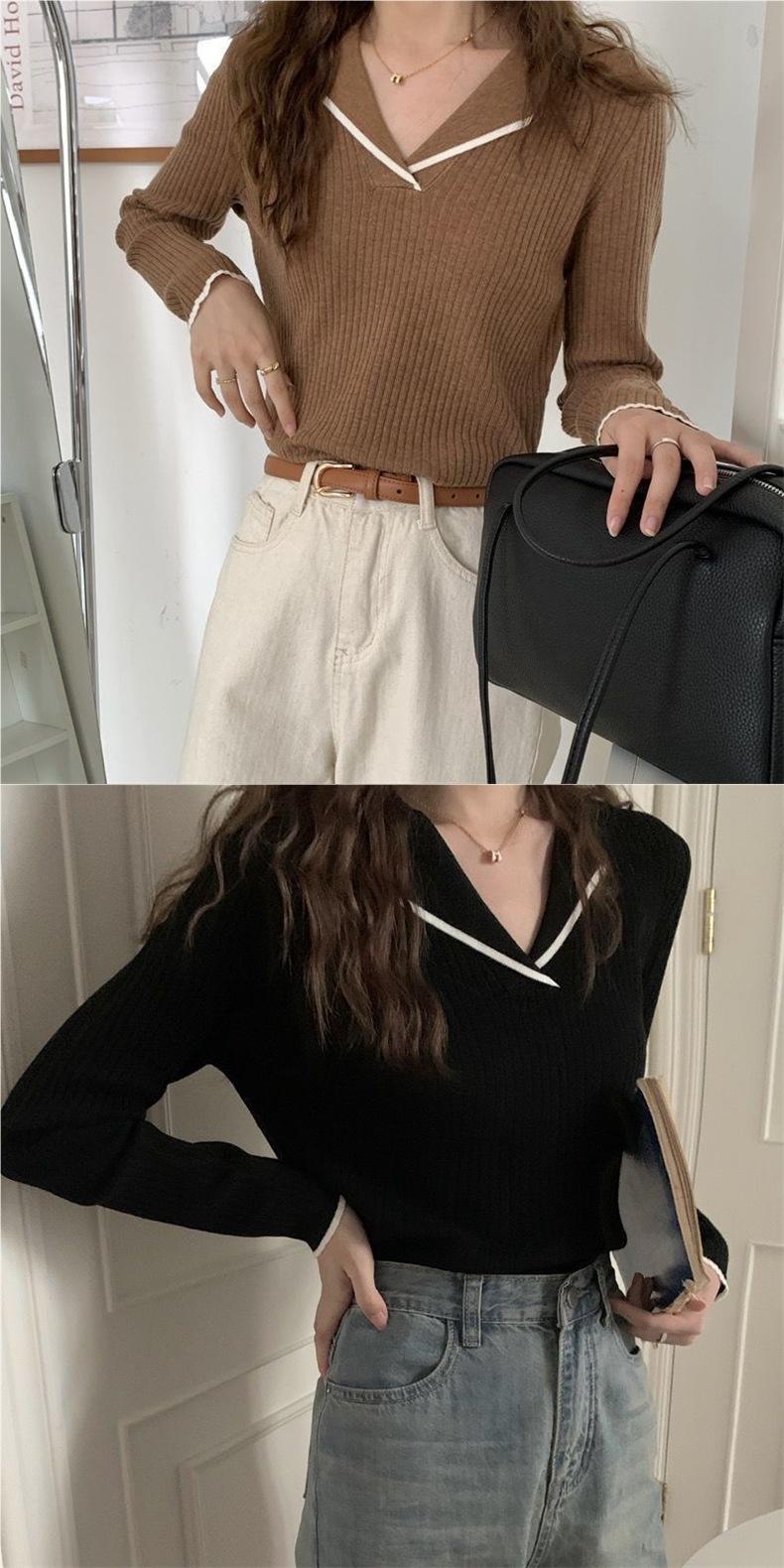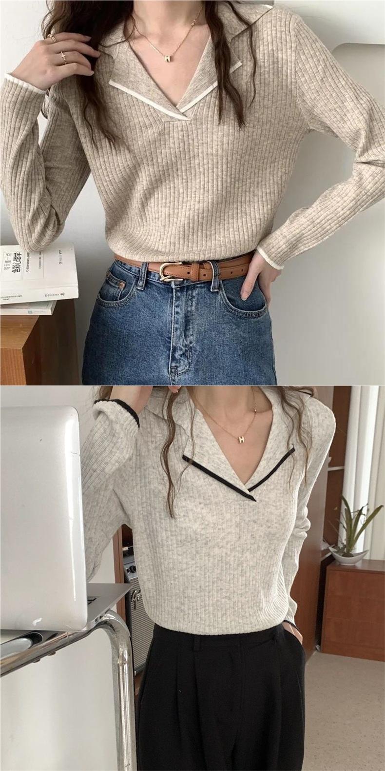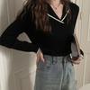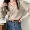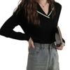 2025 Otoño/Invierno Nuevo Suéter de Punto para Mujer Nuevo Suéter de Manga Larga Capa Base Adelgazante Cuello Solapa Top Tendencia