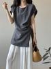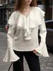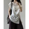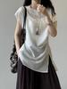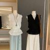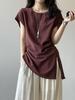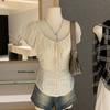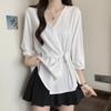Camisa de Diseño Estilo Francés con Abertura Lateral para Mujer, Temperamento de Verano, Blusa Top Versátil Entallada con Cintura Ajustable 82552