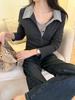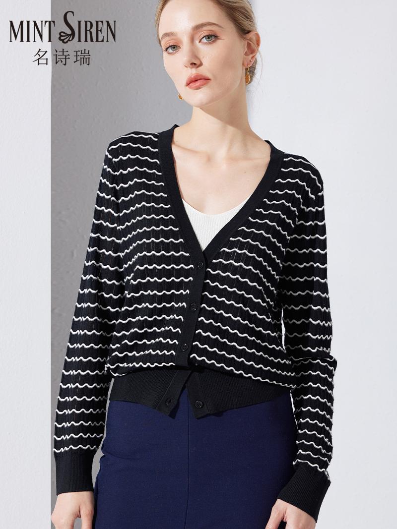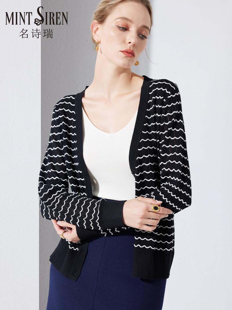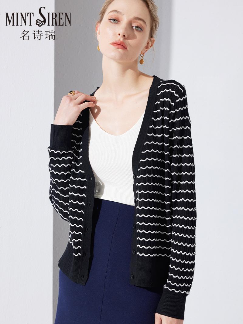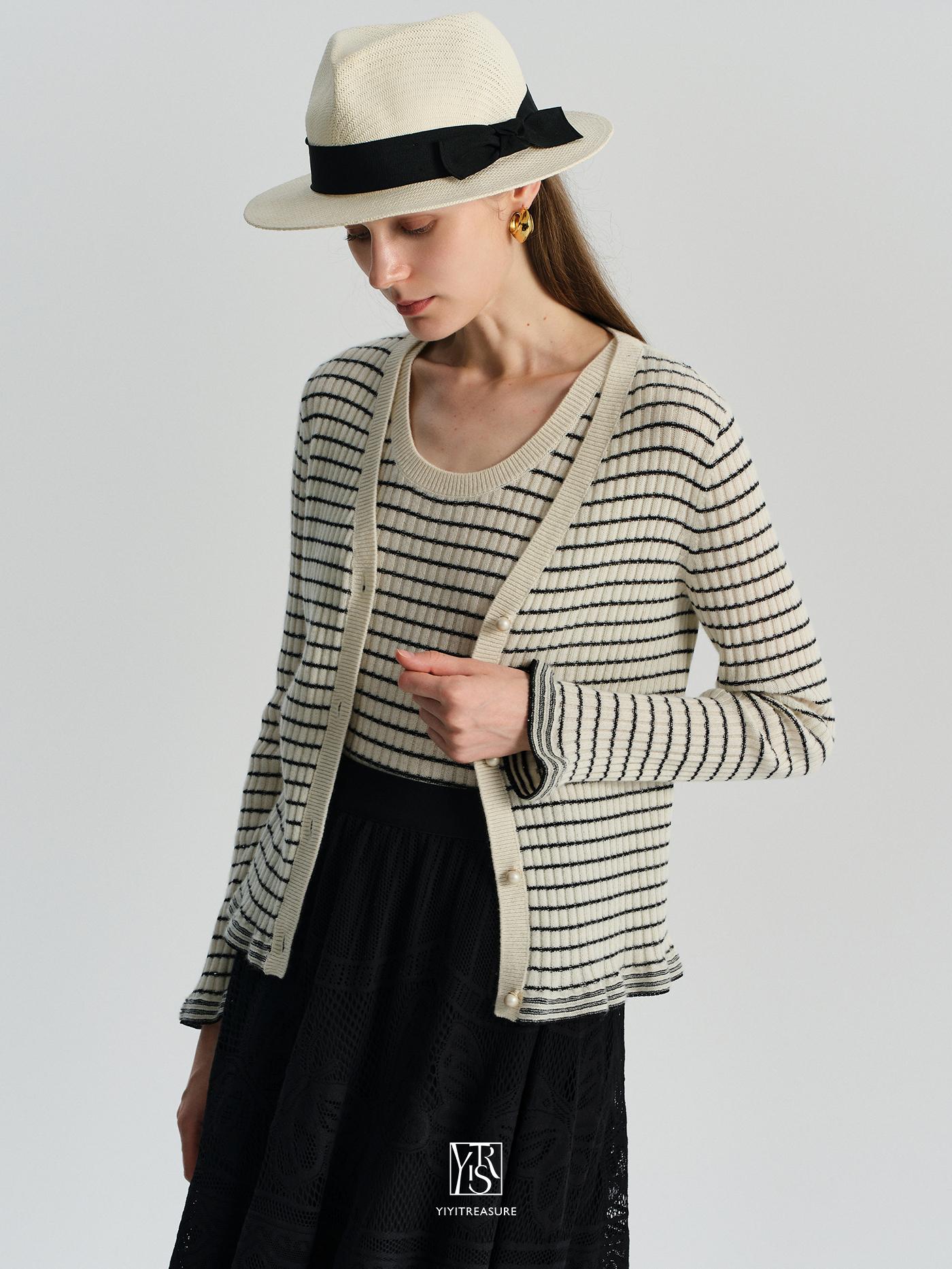 YIYI Hilos Starlight Lana Cachemira Rayado Lentejuela Volante Delgado Tejido Cárdigan y Chaleco