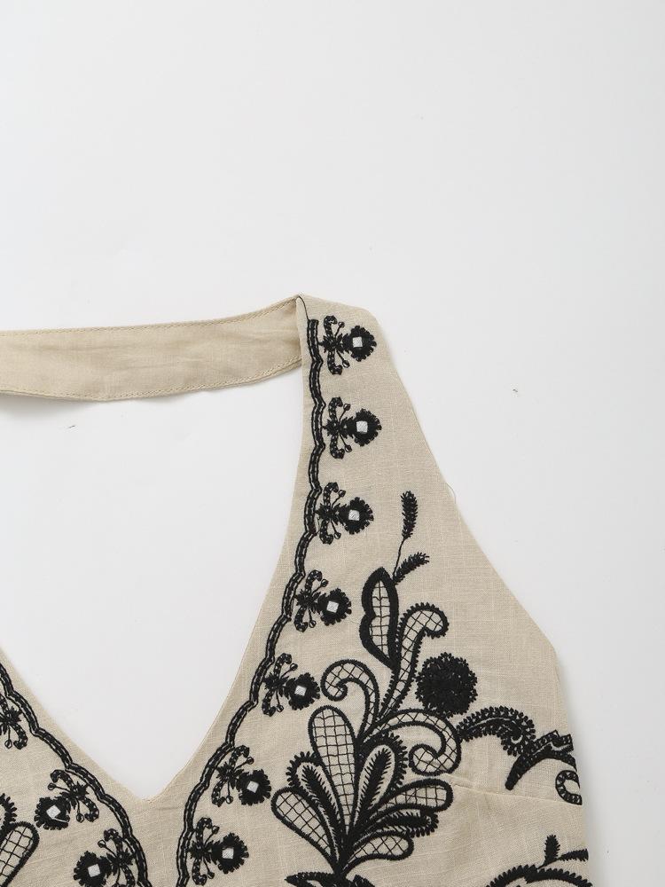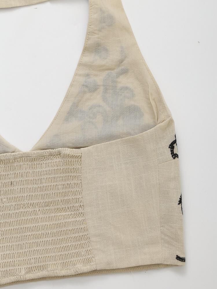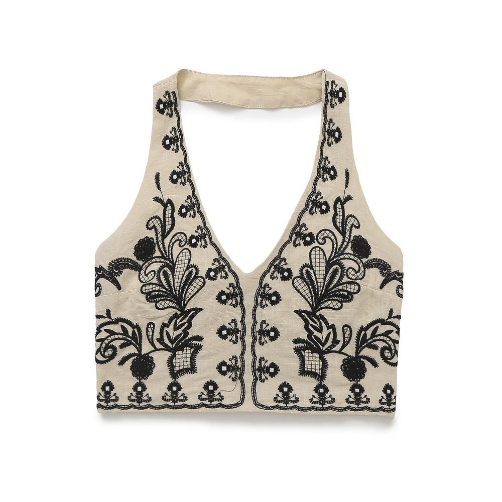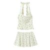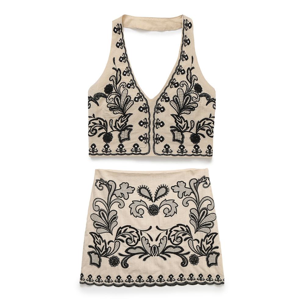 Exclusivo Transfronterizo Moda Europea y Americana Aliexpress Ins Popular Top Corto Bordado con Cuello Halter y Conjunto de Falda