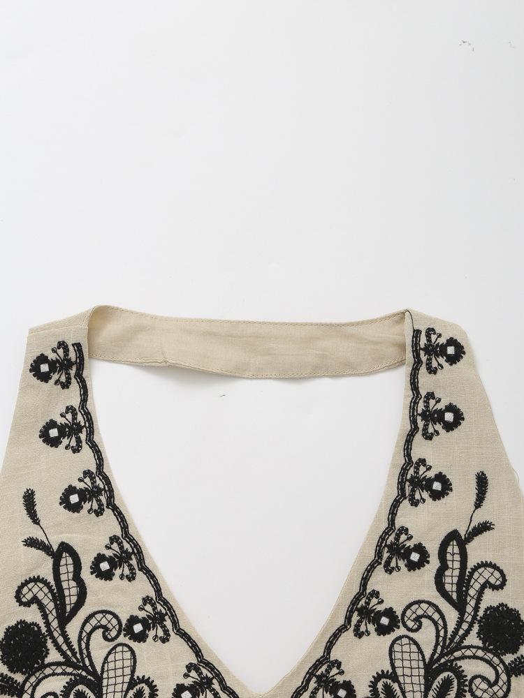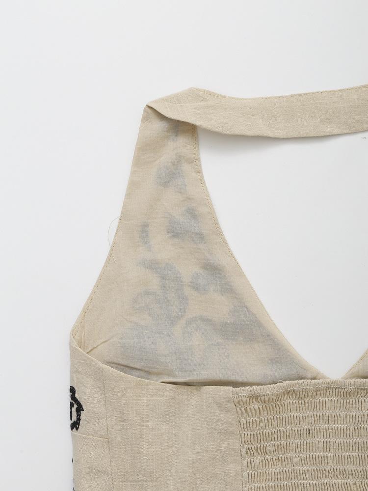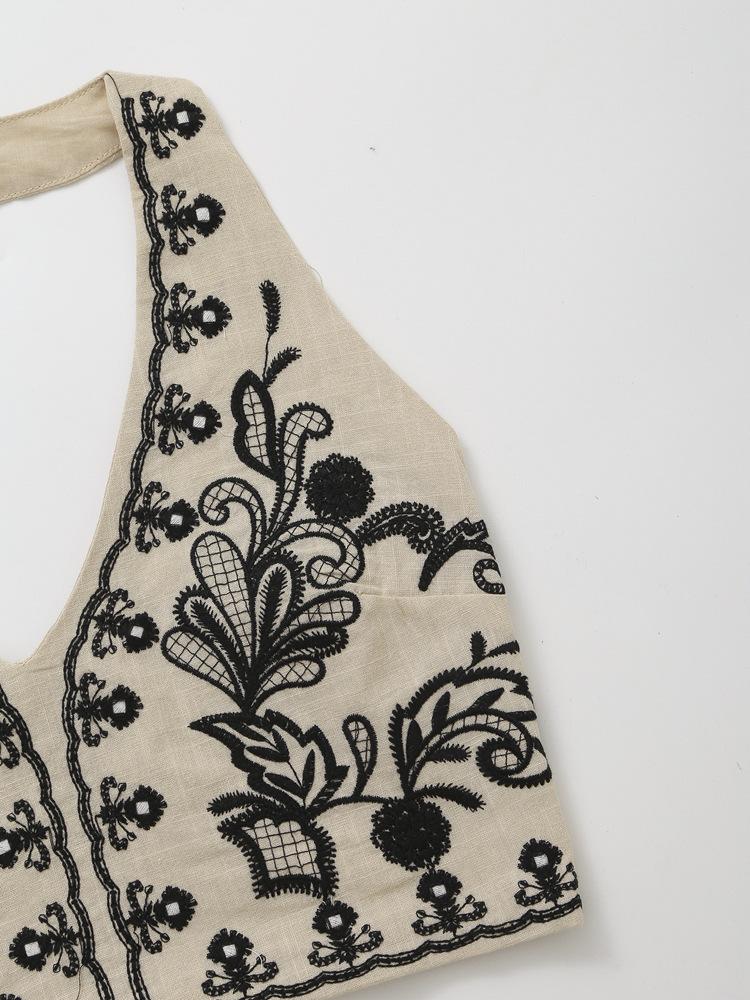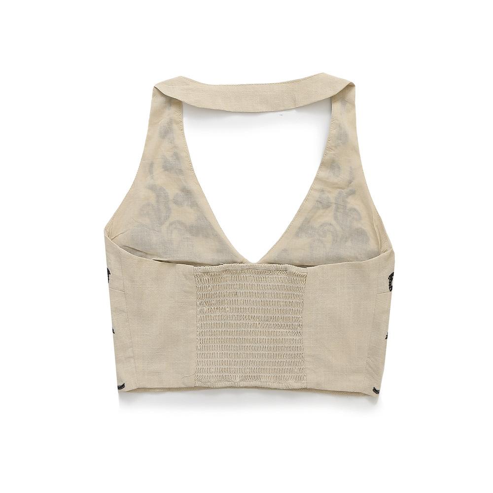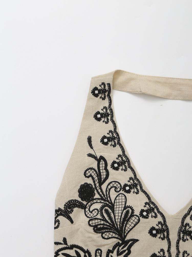 Exclusivo Transfronterizo Moda Europea y Americana Aliexpress Ins Popular Top Corto Bordado con Cuello Halter y Conjunto de Falda