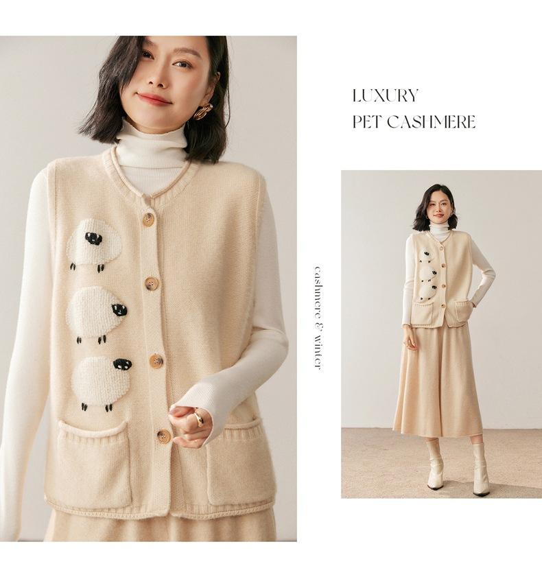 Nuevo Chaleco de Punto de Cachemira Otoño/Invierno Moda para el Trabajo Versátil Sin Mangas Suave Cómodo para Capas Cárdigan Mujer