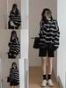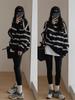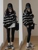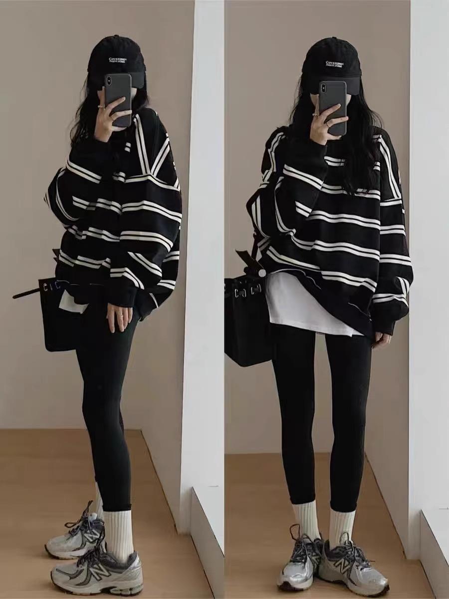 Sudadera de Compuesto Rayado de Talla Grande 330G Tendencia 2025 Principios de Otoño Nueva Camiseta Fina de Cuello Redondo y Manga Larga Ropa de Mujer Estilo Coreano