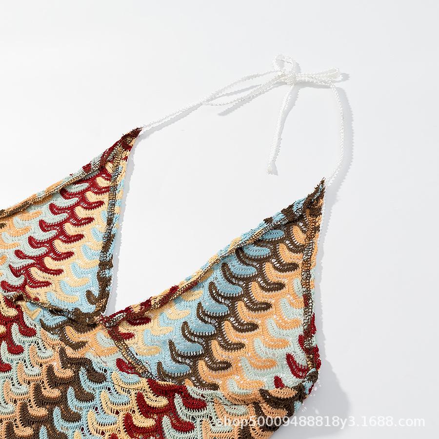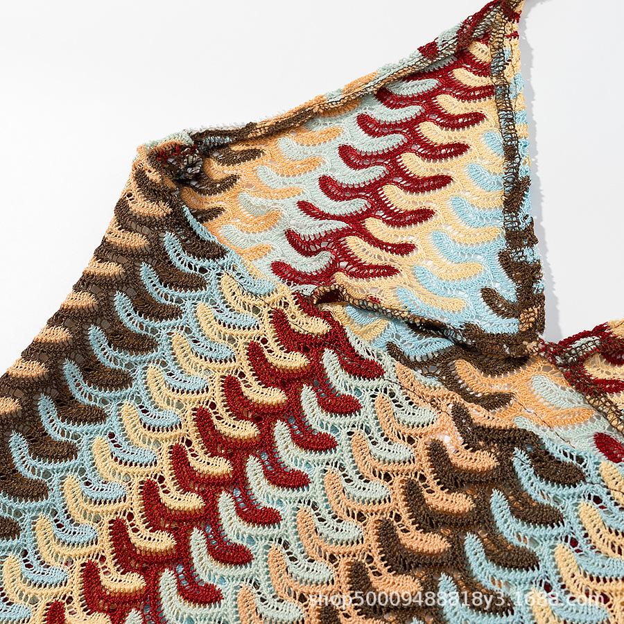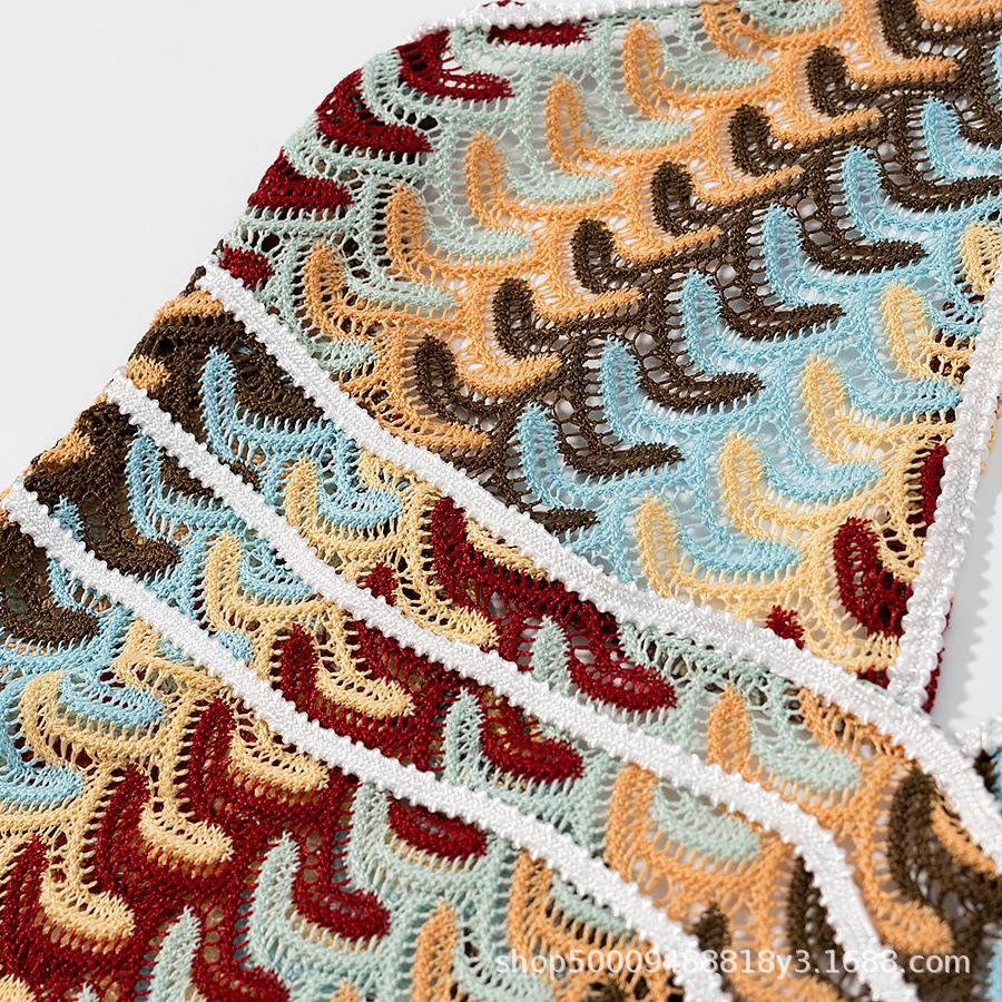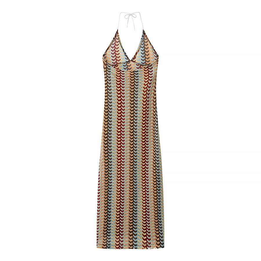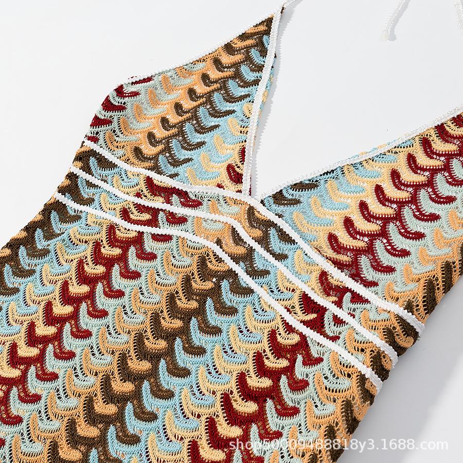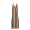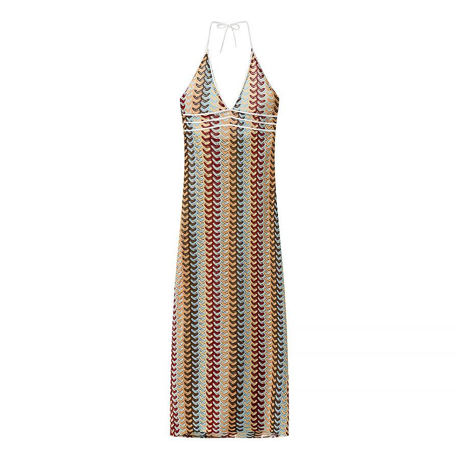 Amazon Ropa de Mujer Transfronteriza 2025 Verano Estilo Europeo y Americano Bloque de Color Encaje Cuello en V Tirantes Espagueti Espalda Descubierta Playa Vestido Largo