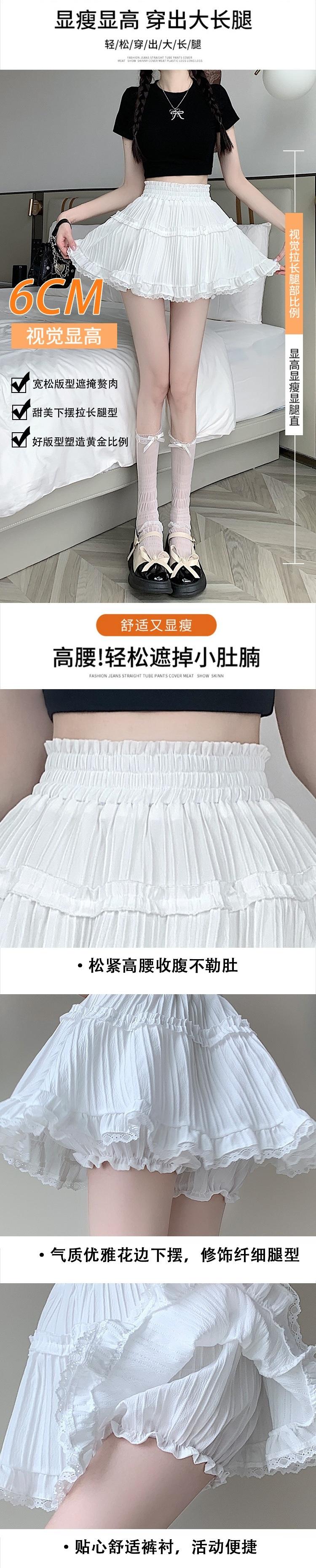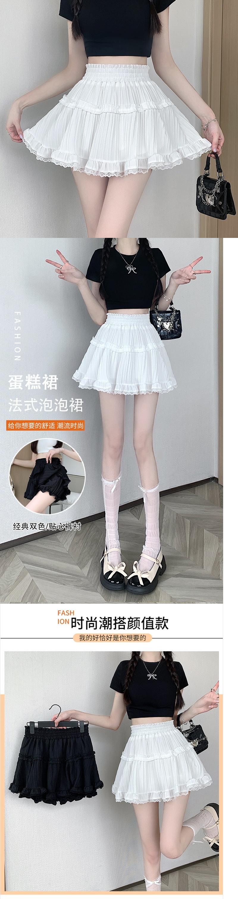 Falda plisada de cintura alta, estilo nuevo, fresca y dulce para mujer, verano, línea A, delgada, encaje, plisada, tutú