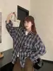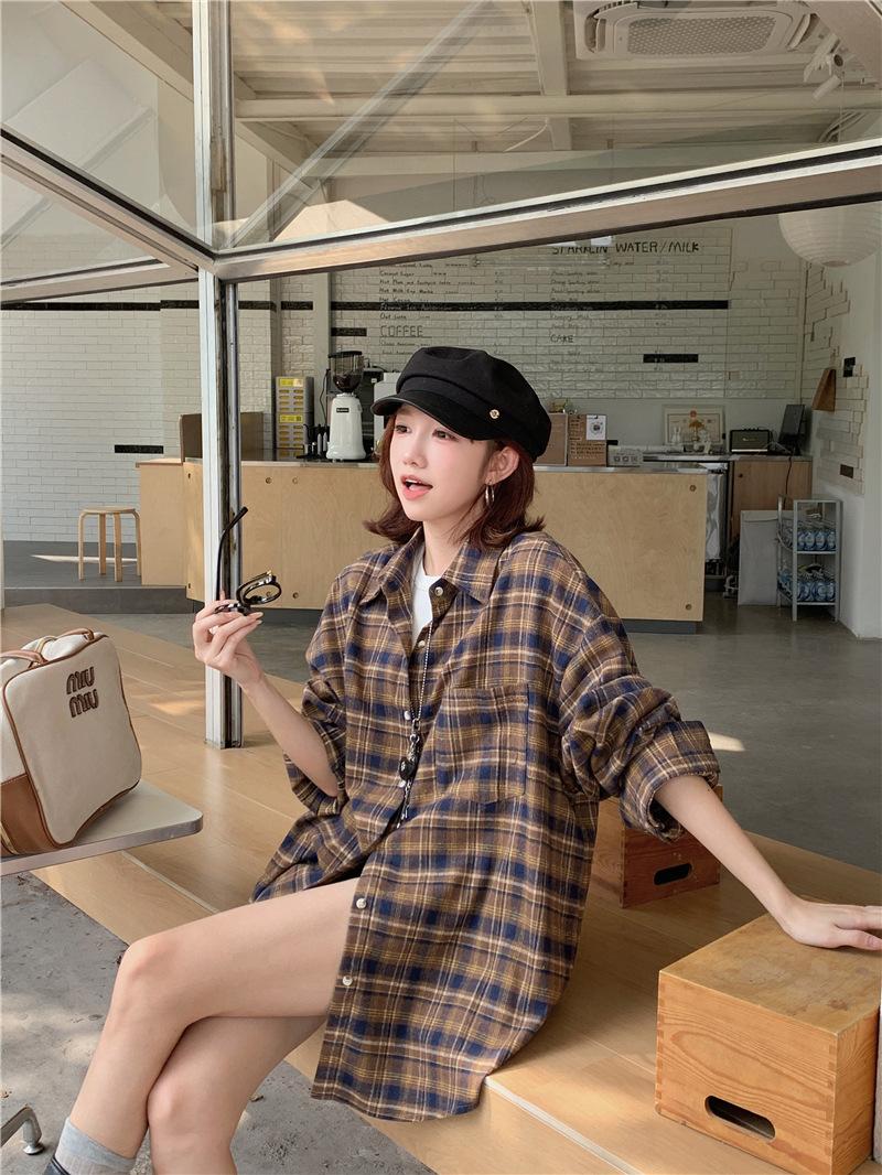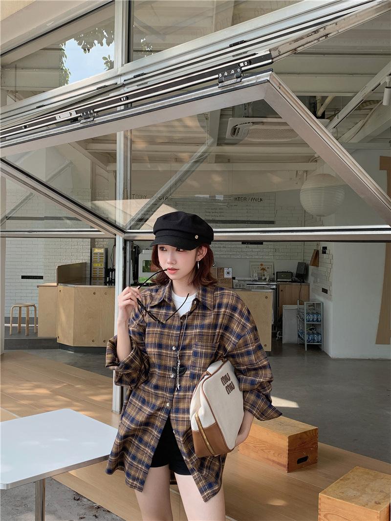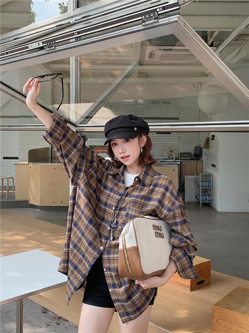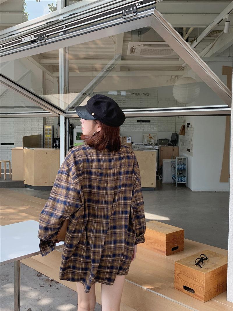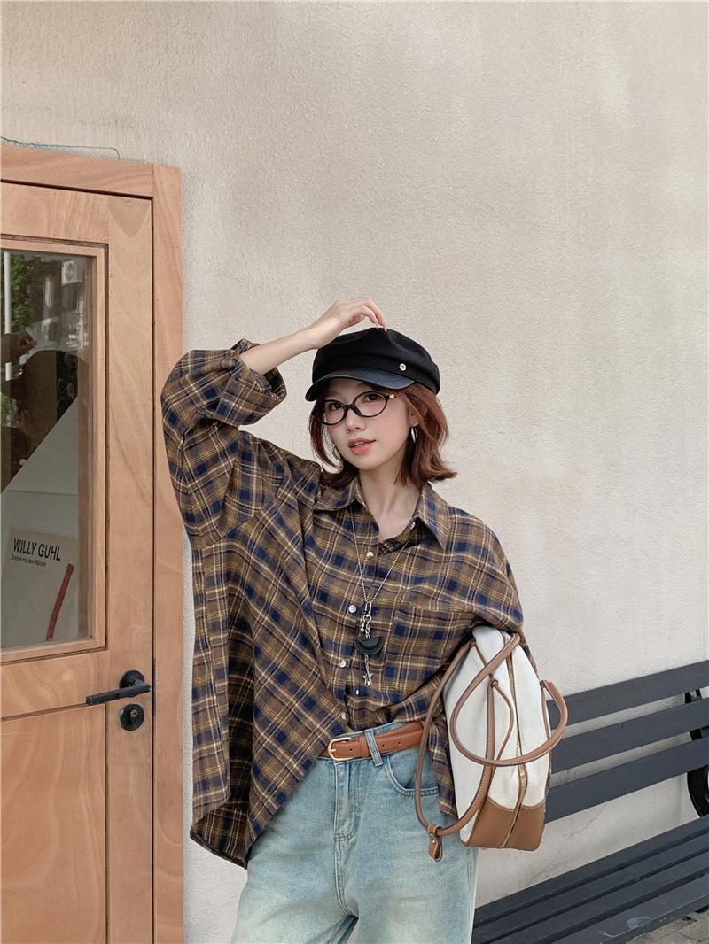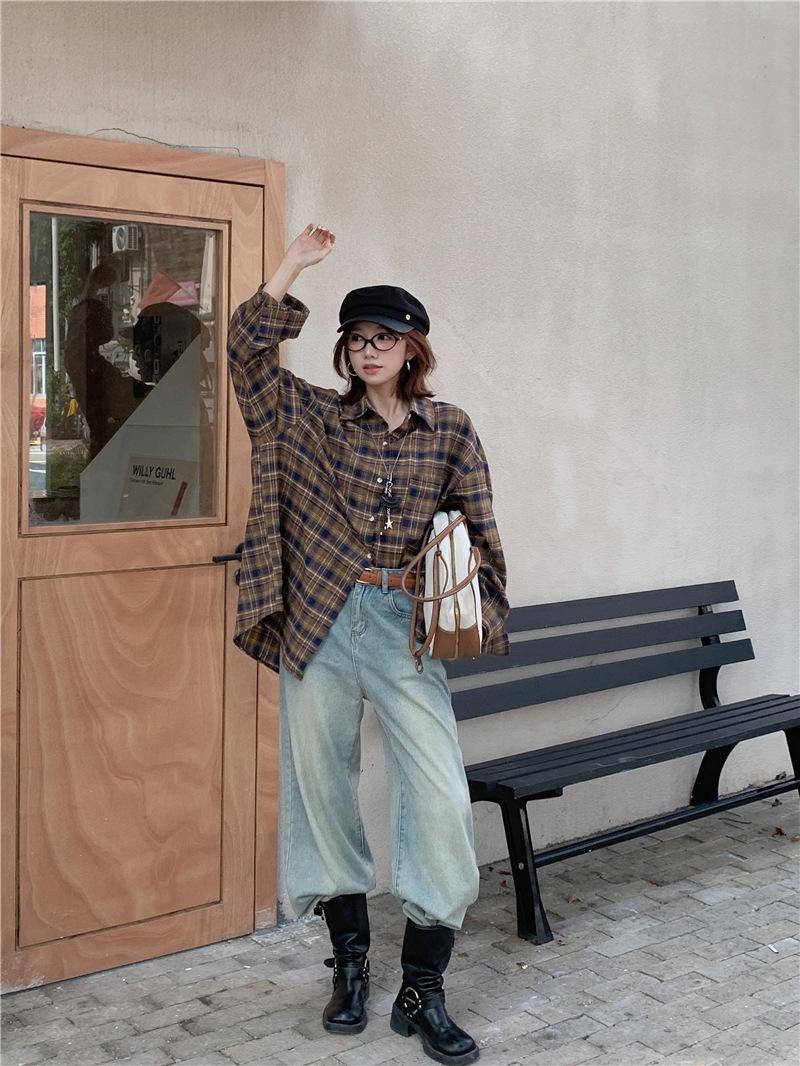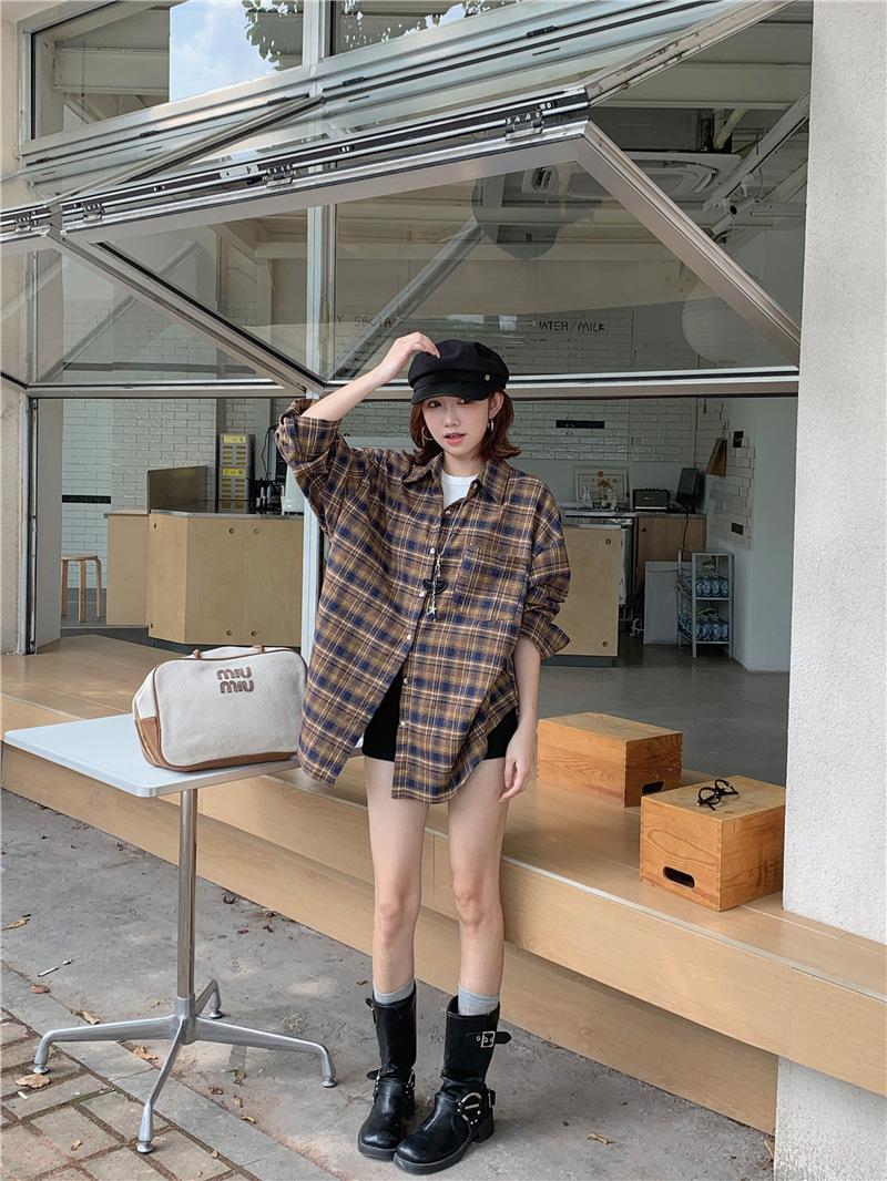 Foto Real Ropa de Mujer Estilo Coreano 2025 Otoño Nuevo Retro Suelto Versátil Camisa de Manga Larga a Cuadros