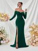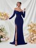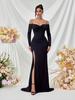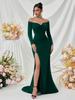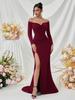 Vestido Largo Sexy de Manga Larga Europeo y Americano Transfronterizo 2025 Color Sólido Abertura Alta Hombro Delgado Fiesta Vestido de Dama de Honor