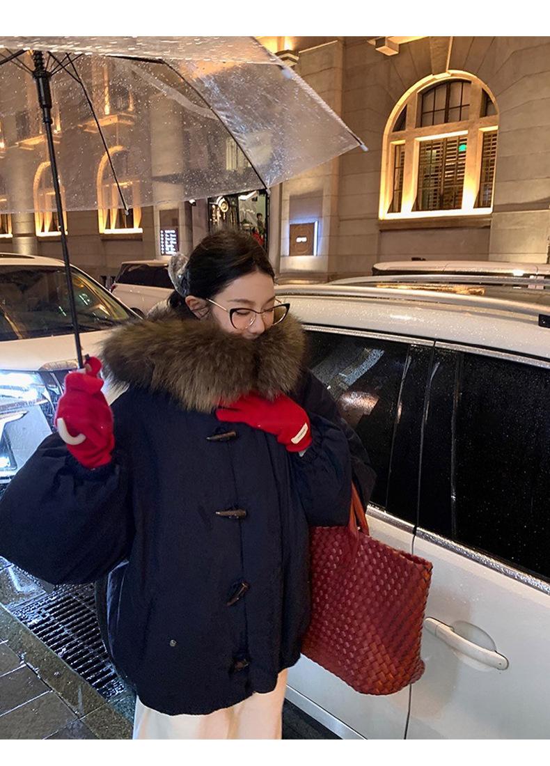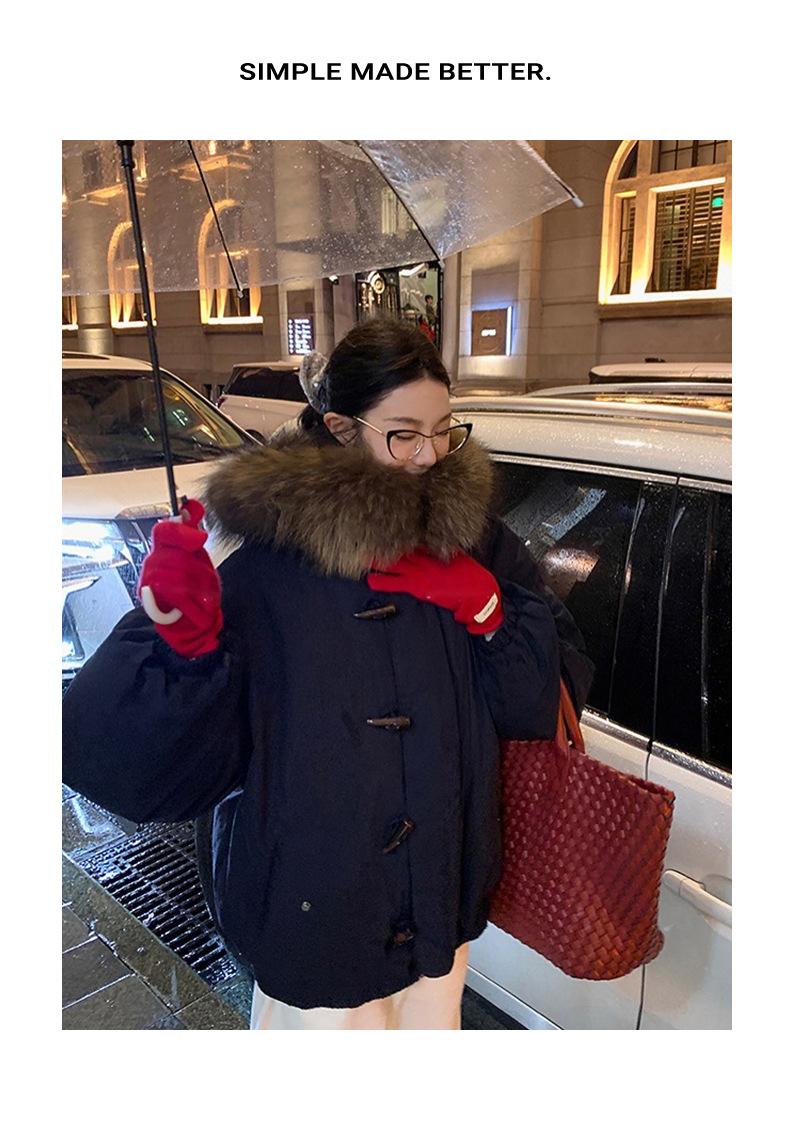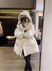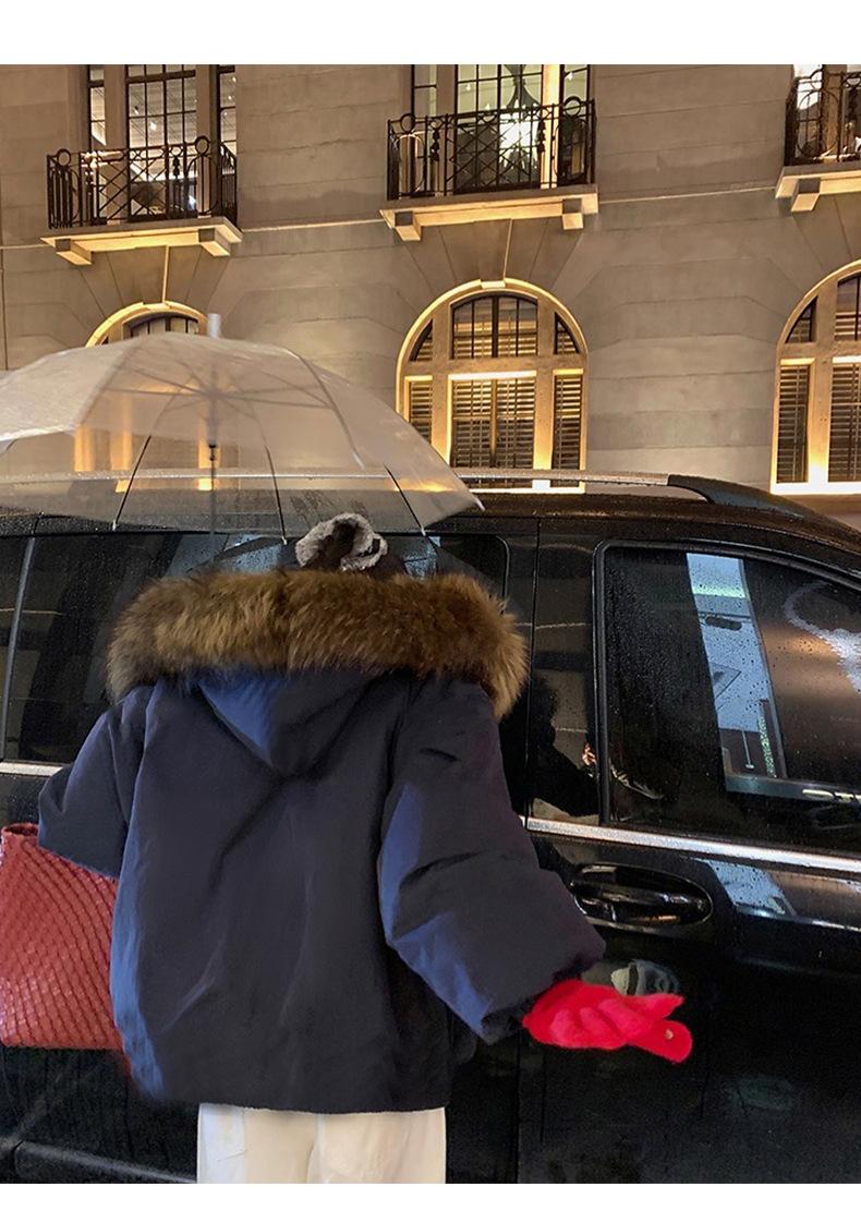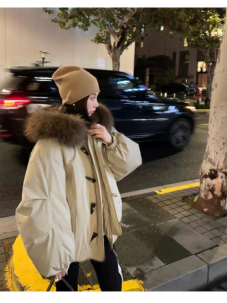 Invierno 2025 Nuevo Estilo Coreano Temperamento de Alta Gama Capucha Cuello Grande de Piel Botón de Palanca Adelgazante Chaqueta Acolchada Abrigo de Plumón de Pato Blanco para Mujer