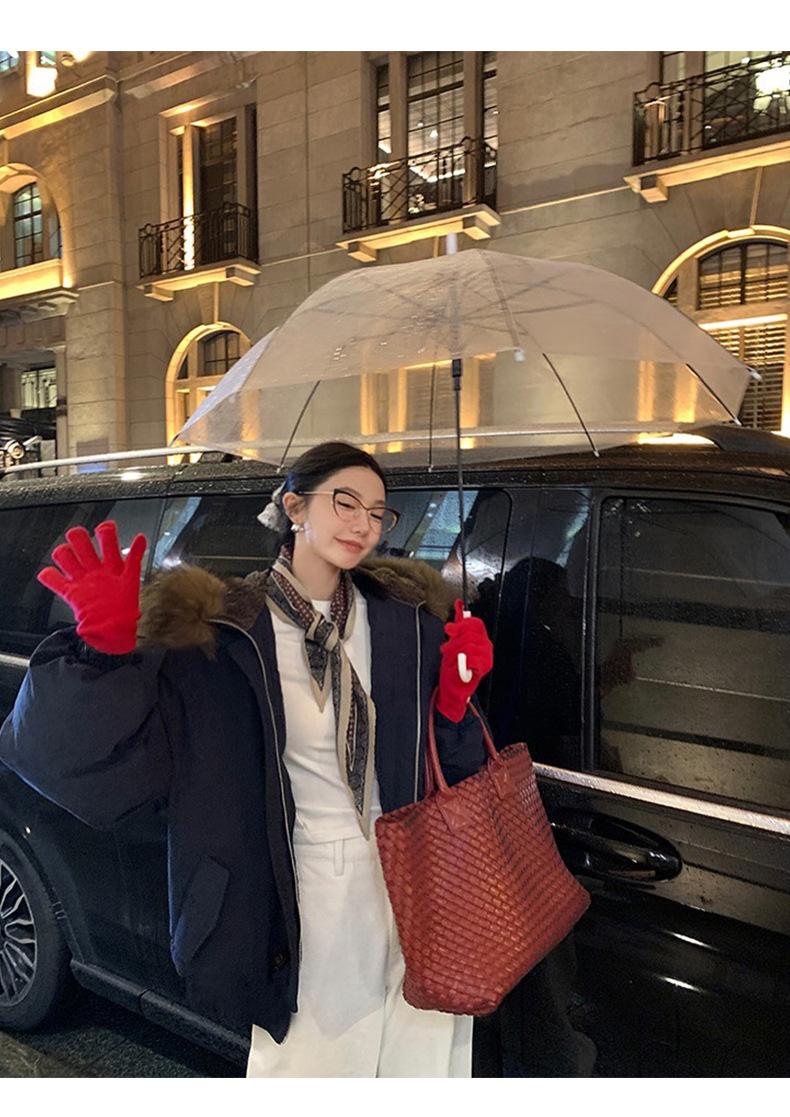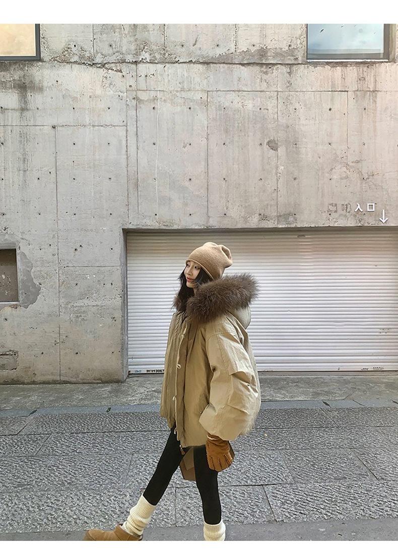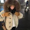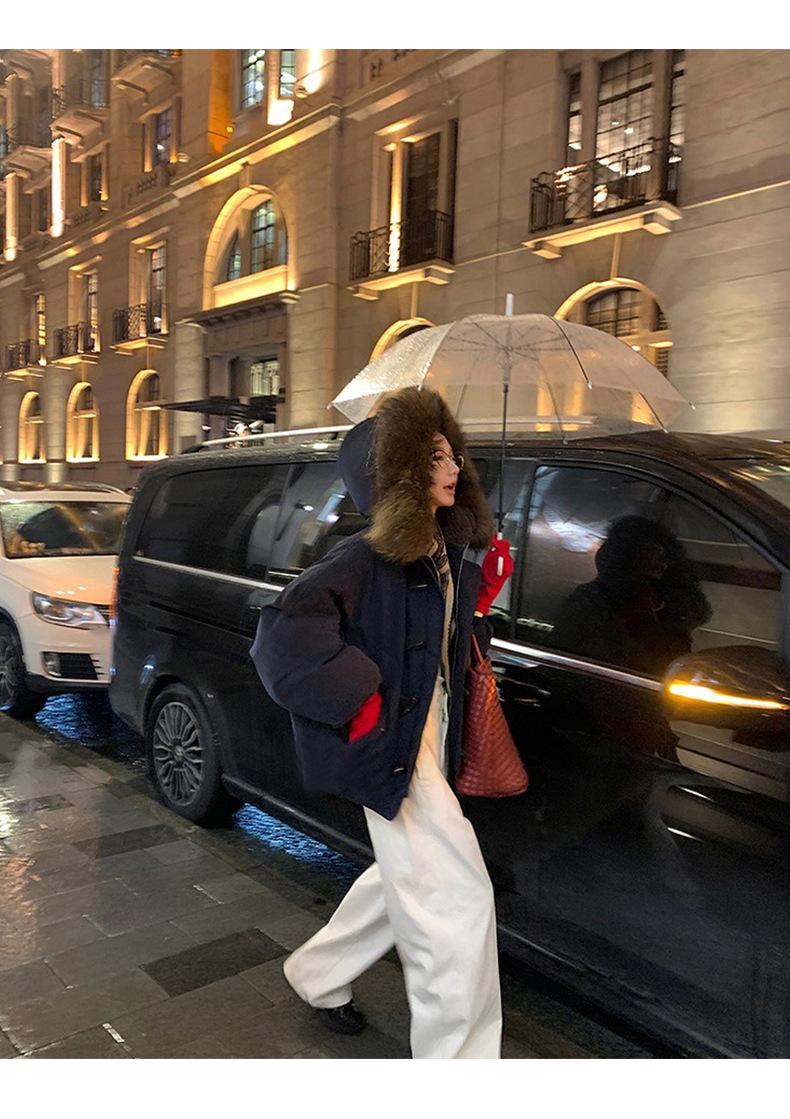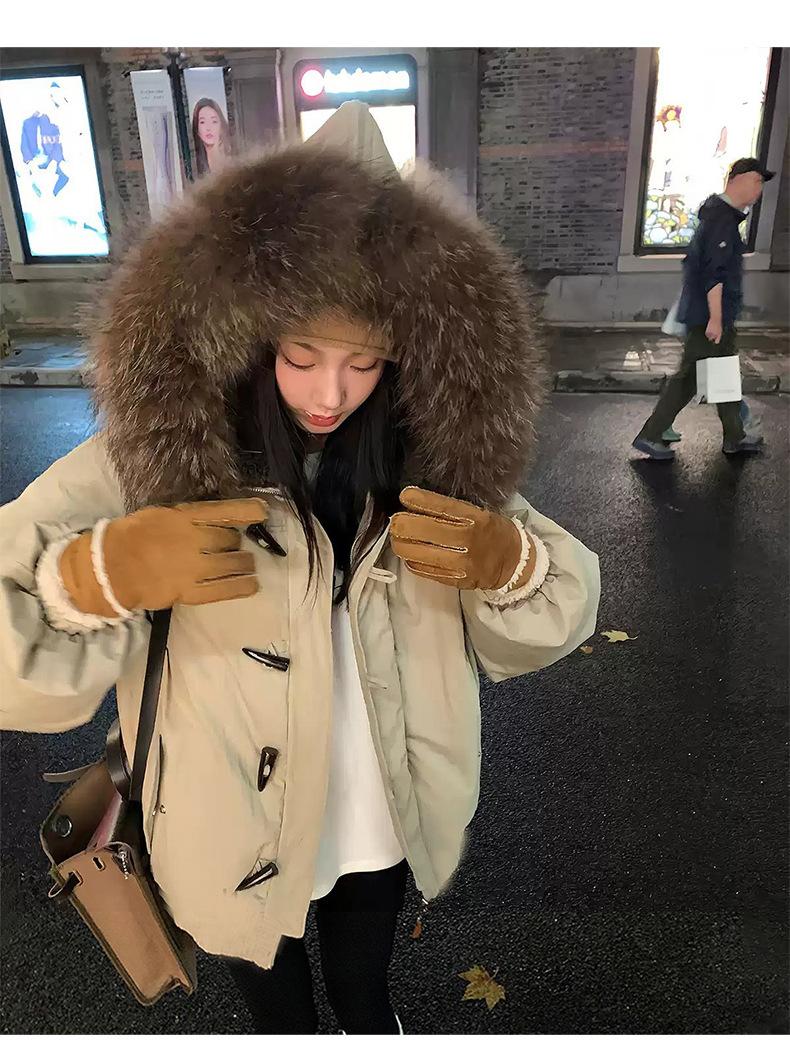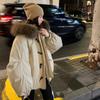 Invierno 2025 Nuevo Estilo Coreano Temperamento de Alta Gama Capucha Cuello Grande de Piel Botón de Palanca Adelgazante Chaqueta Acolchada Abrigo de Plumón de Pato Blanco para Mujer