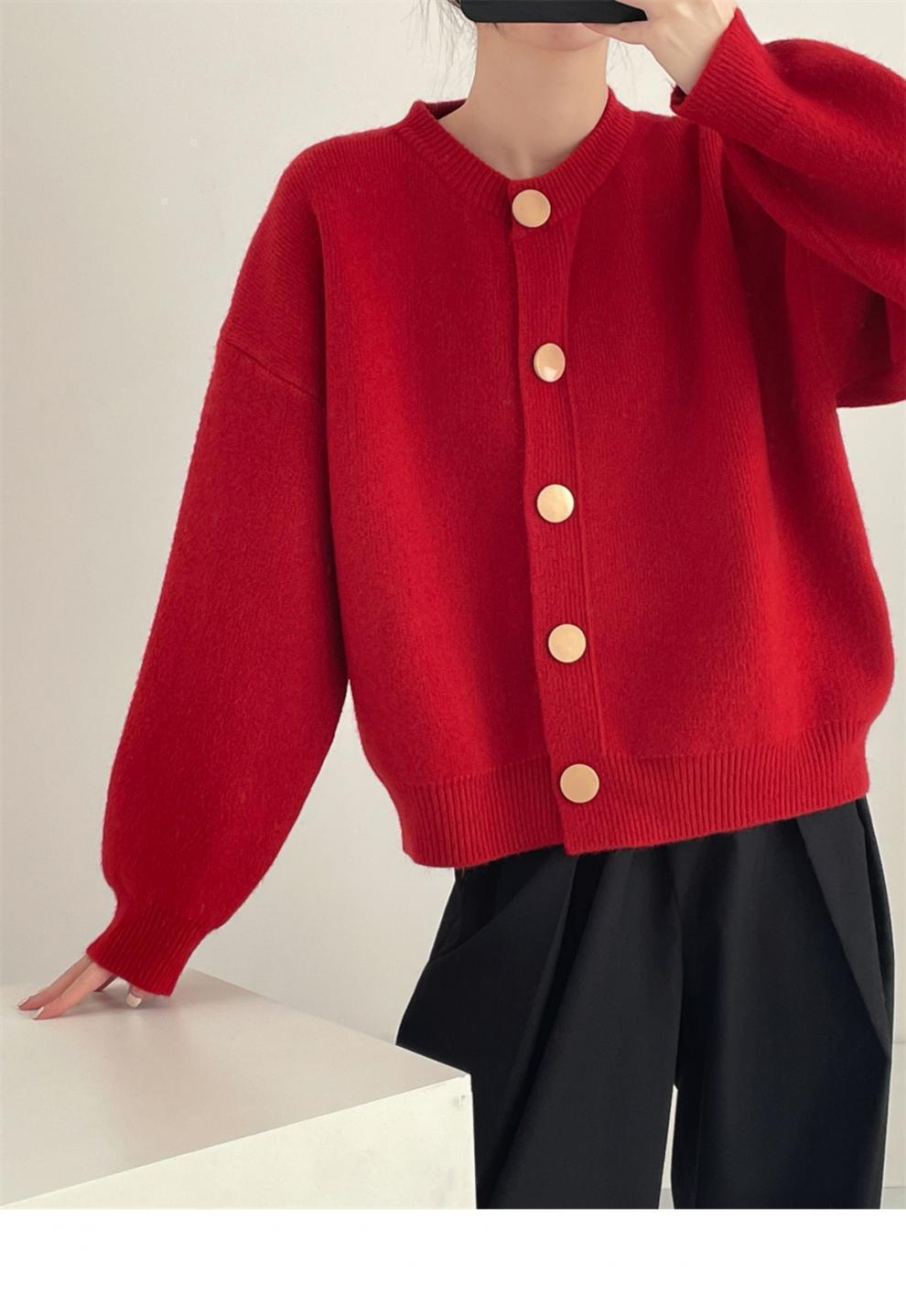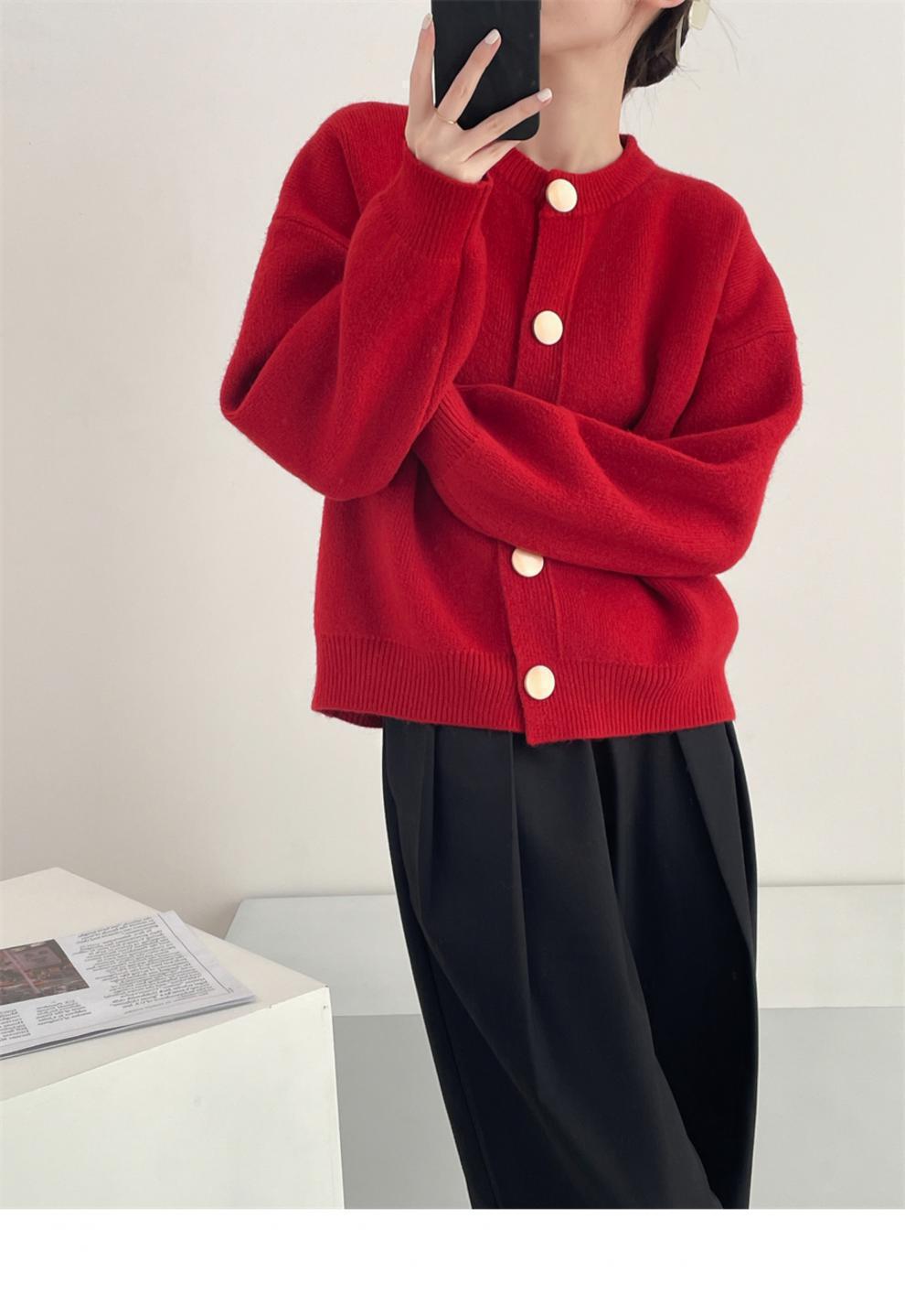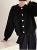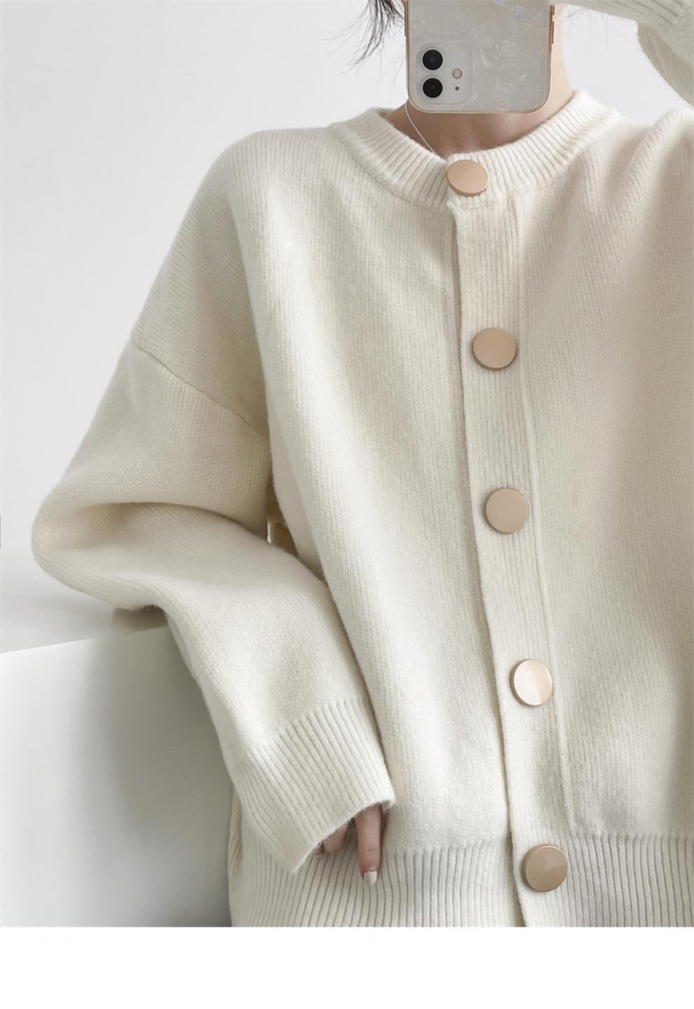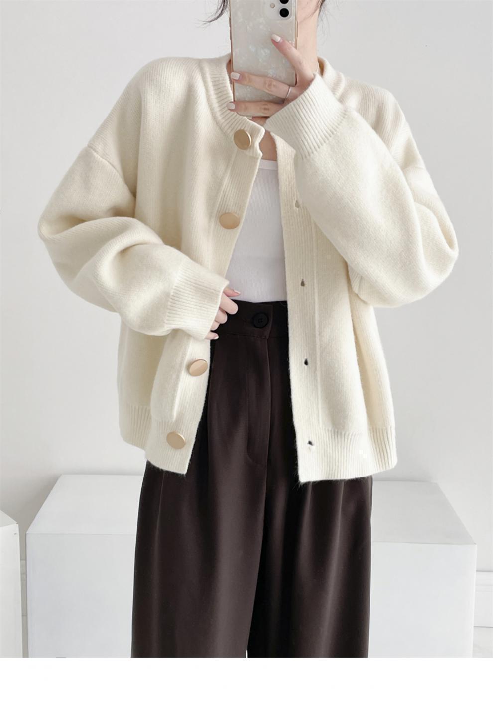 Suéter de punto de color sólido de un solo botón con sentido del diseño de otoño e invierno, cárdigan para mujer, estilo holgazán, suelto, cuello redondo, top versátil