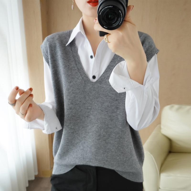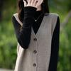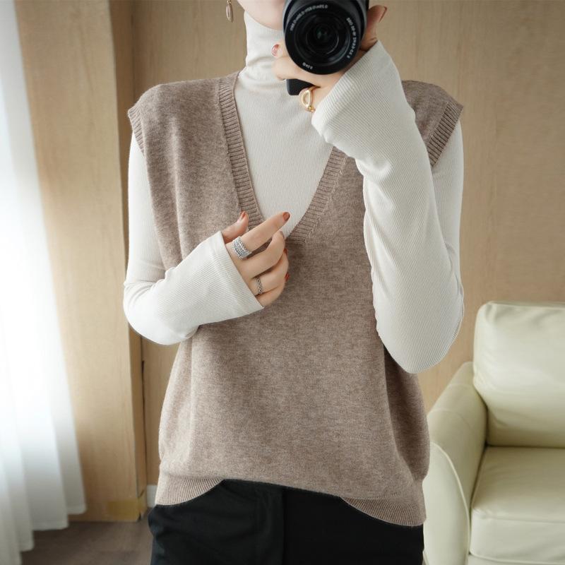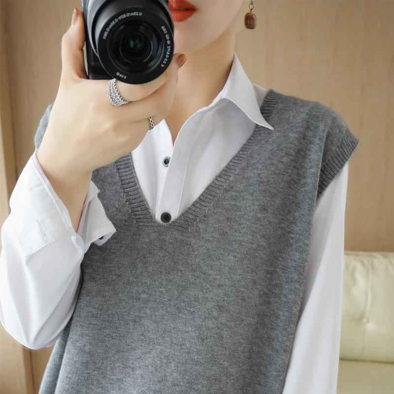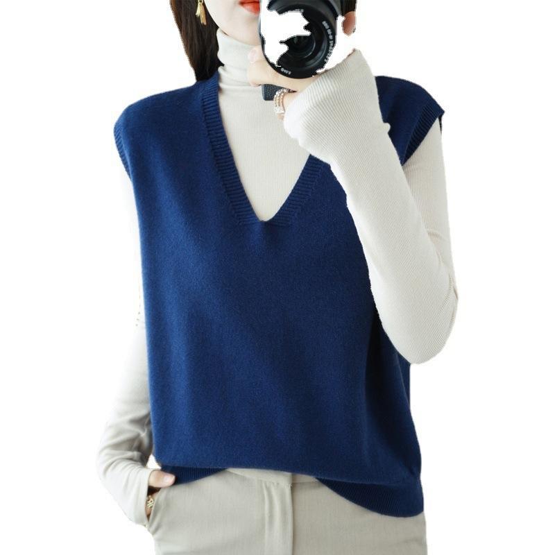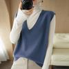 Chaleco de Punto para Principios de Otoño para Mujer Cuello en V Suelto Exterior Top Chaleco sin Mangas Estilo Casual Perezoso Color Puro Chaleco Suéter