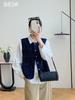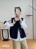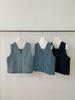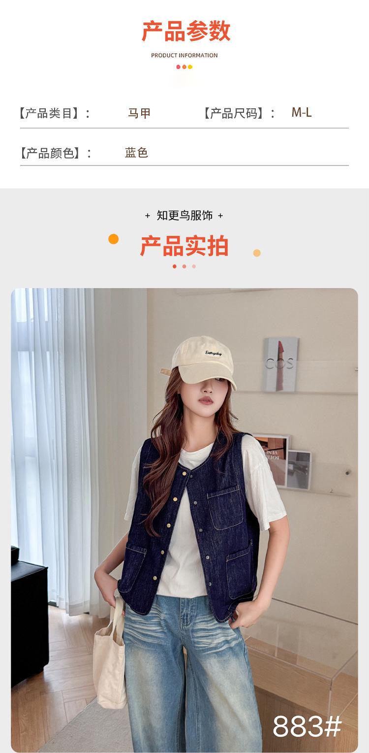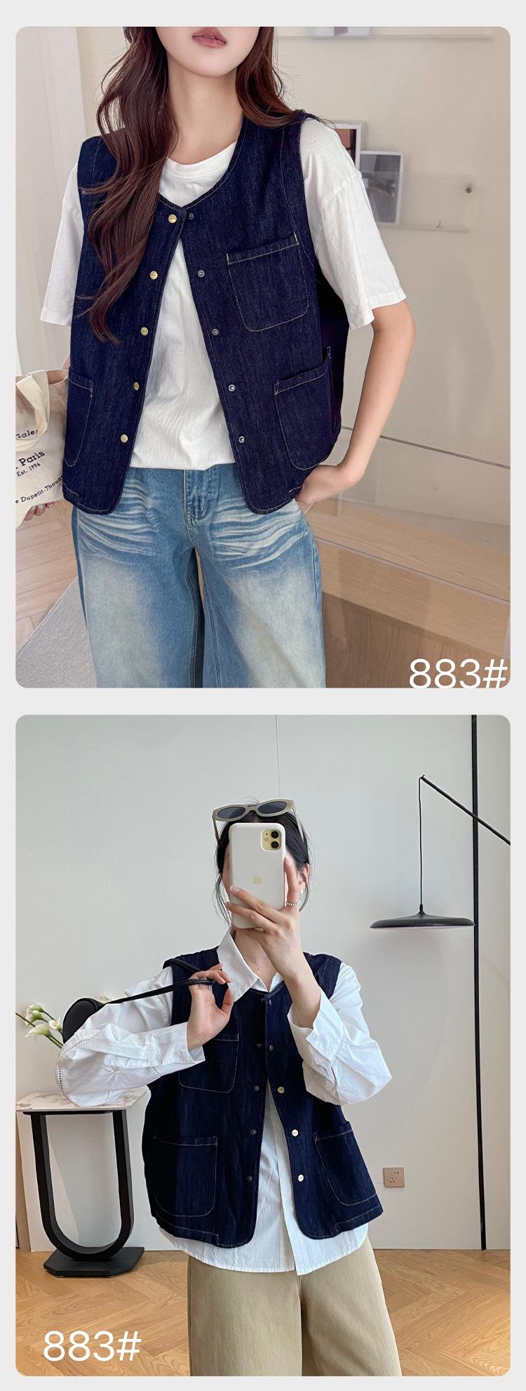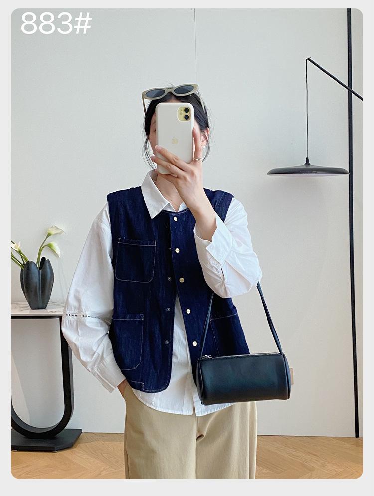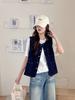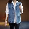 Principios de Otoño Retro Literario Chaleco de Mezclilla en Capas Moderno Elegante Adelgazante Versátil Cárdigan sin Mangas Chaqueta Pequeña Mujer ZLG9