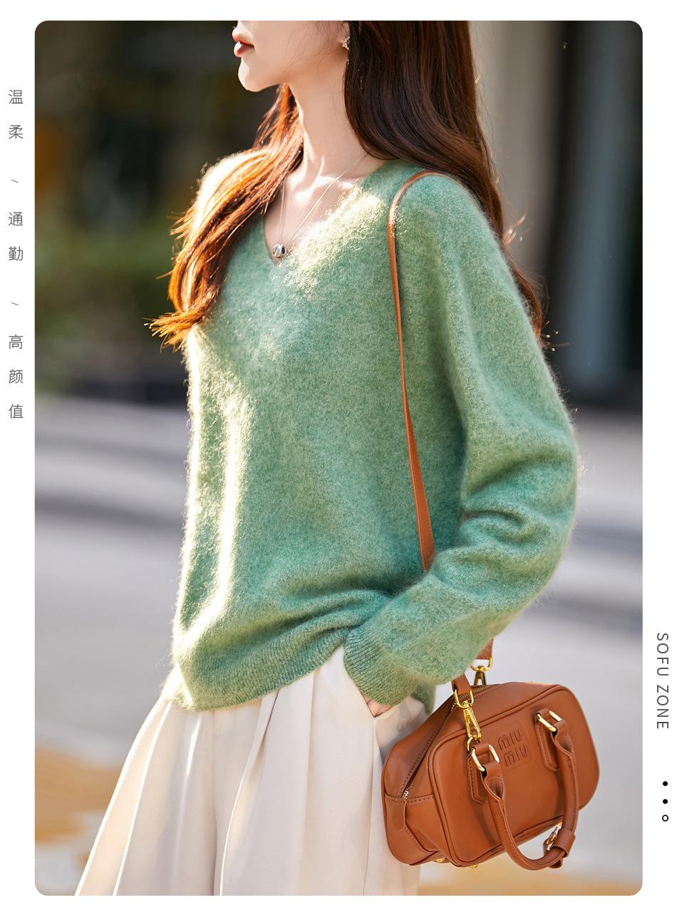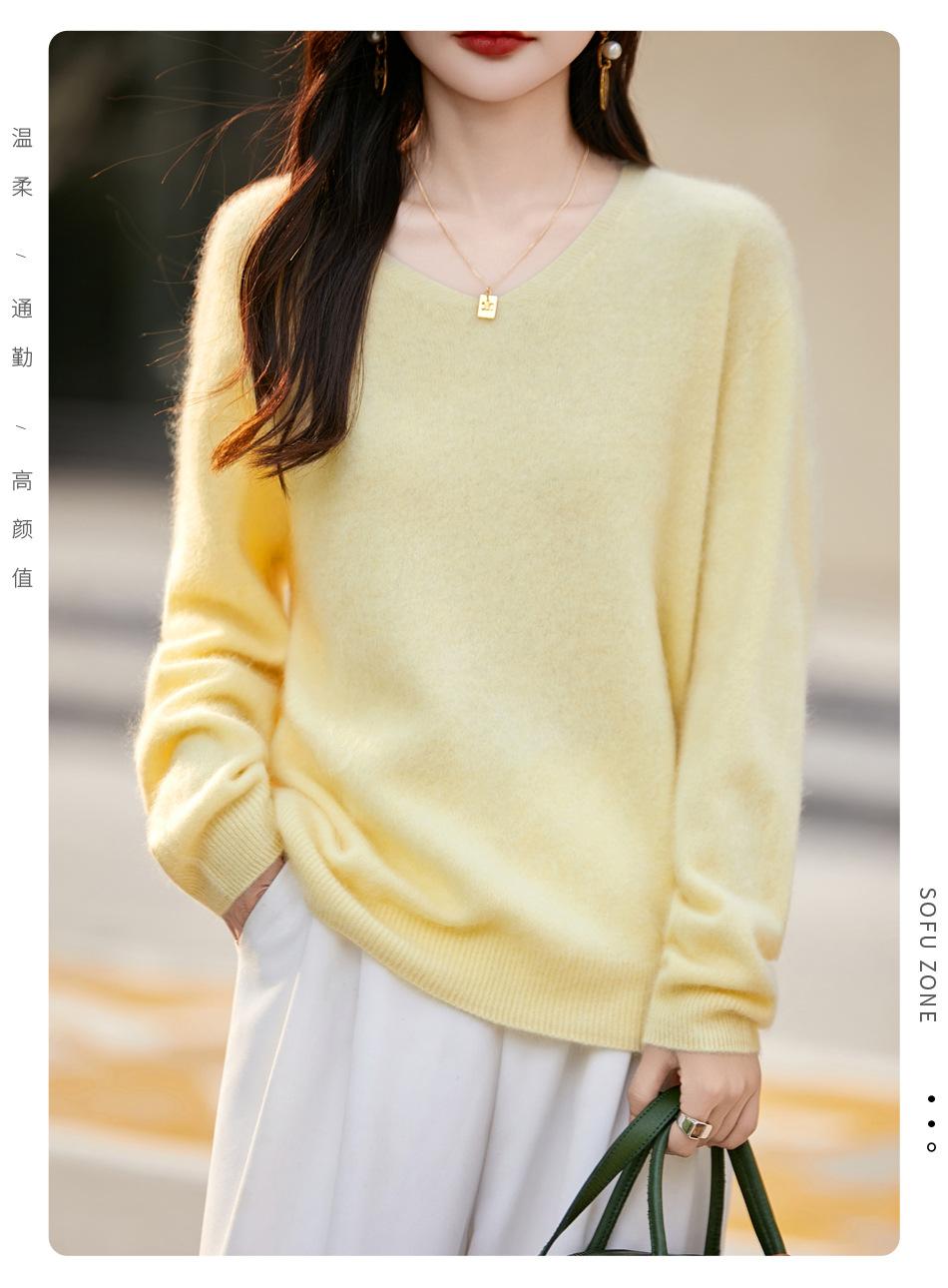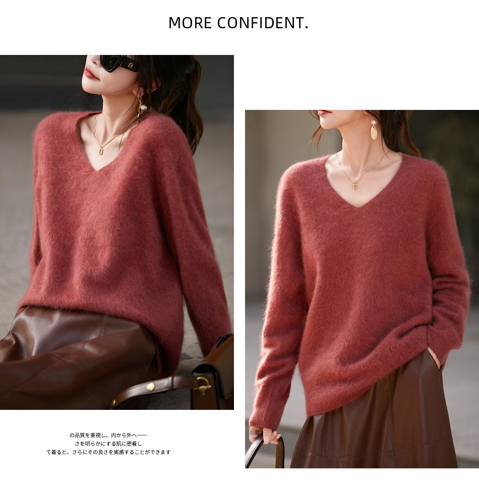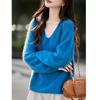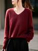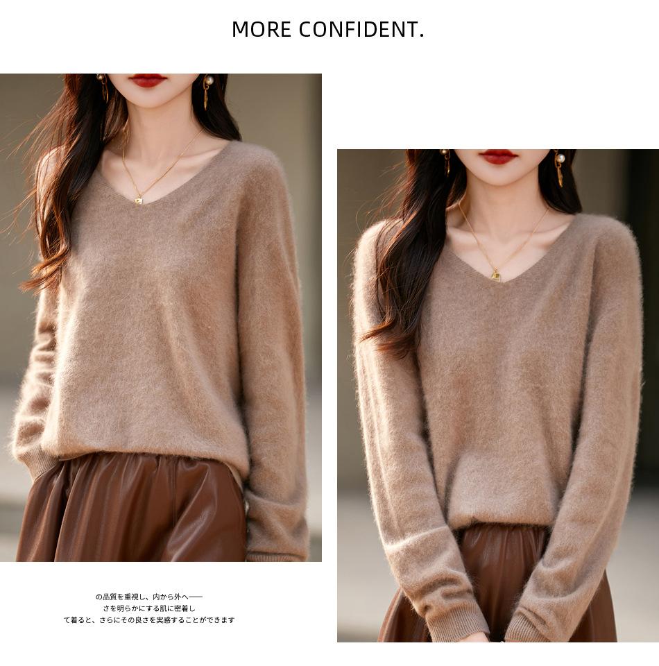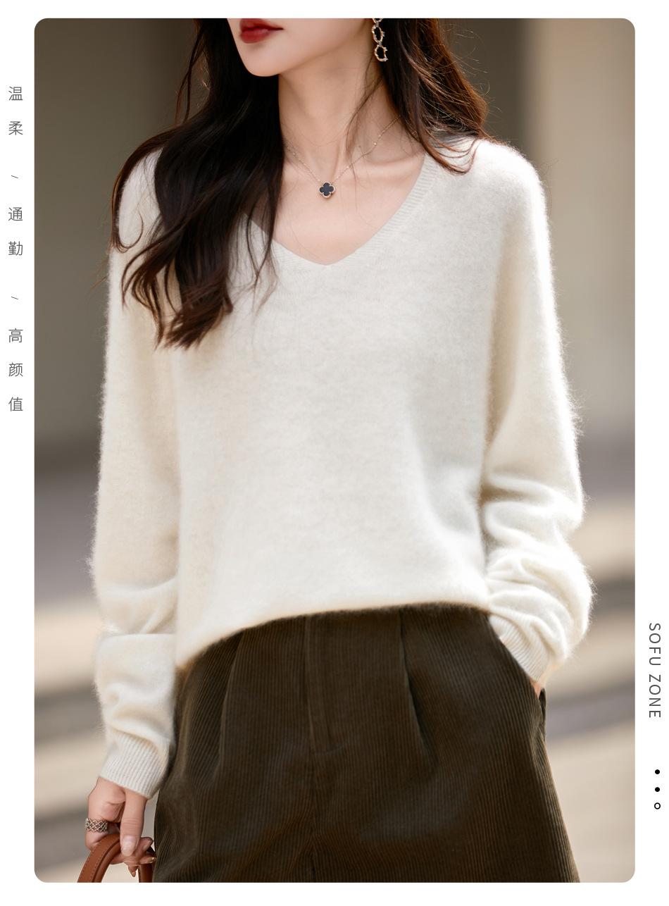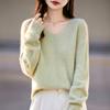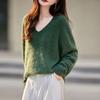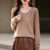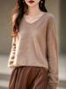 25 Otoño/Invierno Cuello en V Sin Costuras Cachemira Cepillada Suéter Pulóver de Lana Estilo Holgazán Suelto Adelgazante Capa Interior Suéter de Punto