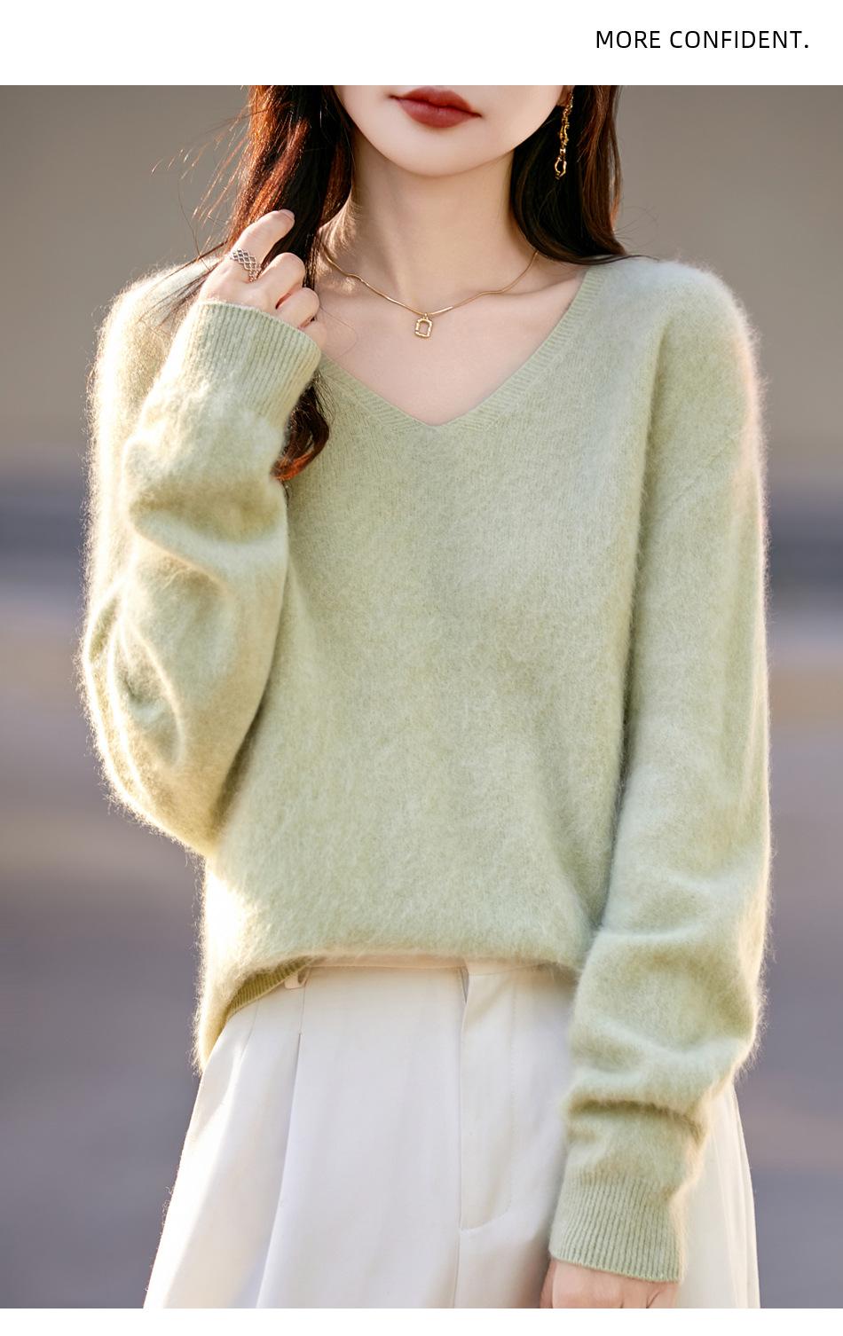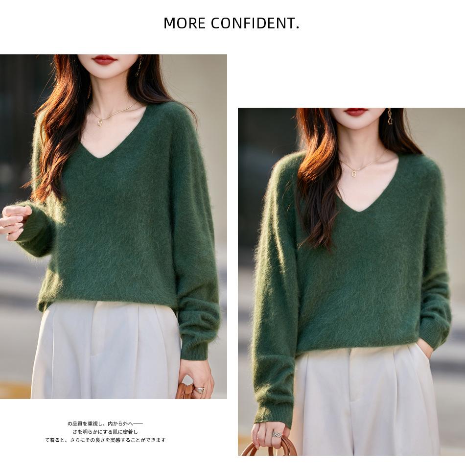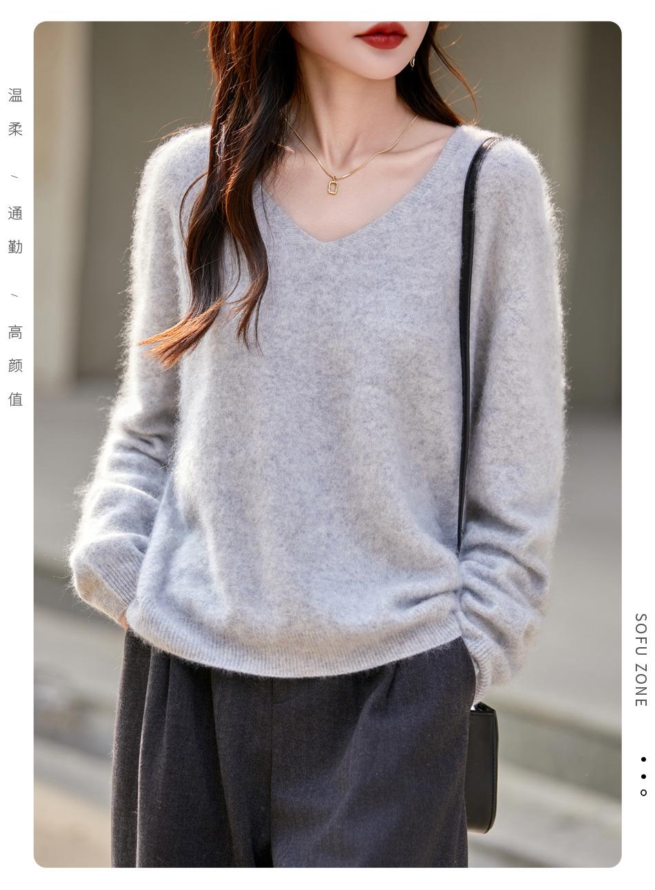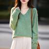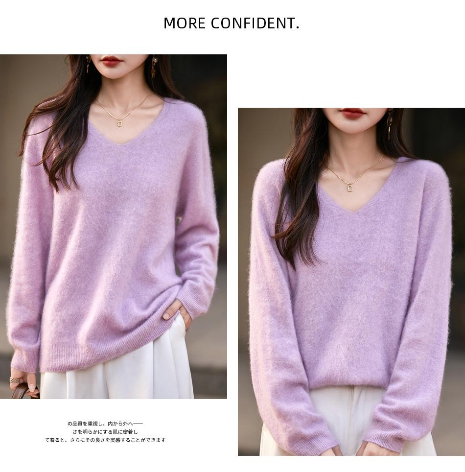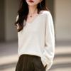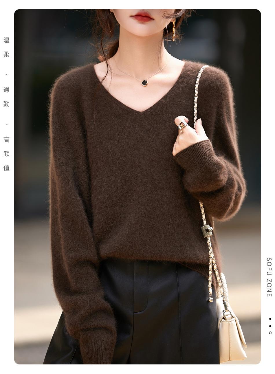 25 Otoño/Invierno Cuello en V Sin Costuras Cachemira Cepillada Suéter Pulóver de Lana Estilo Holgazán Suelto Adelgazante Capa Interior Suéter de Punto