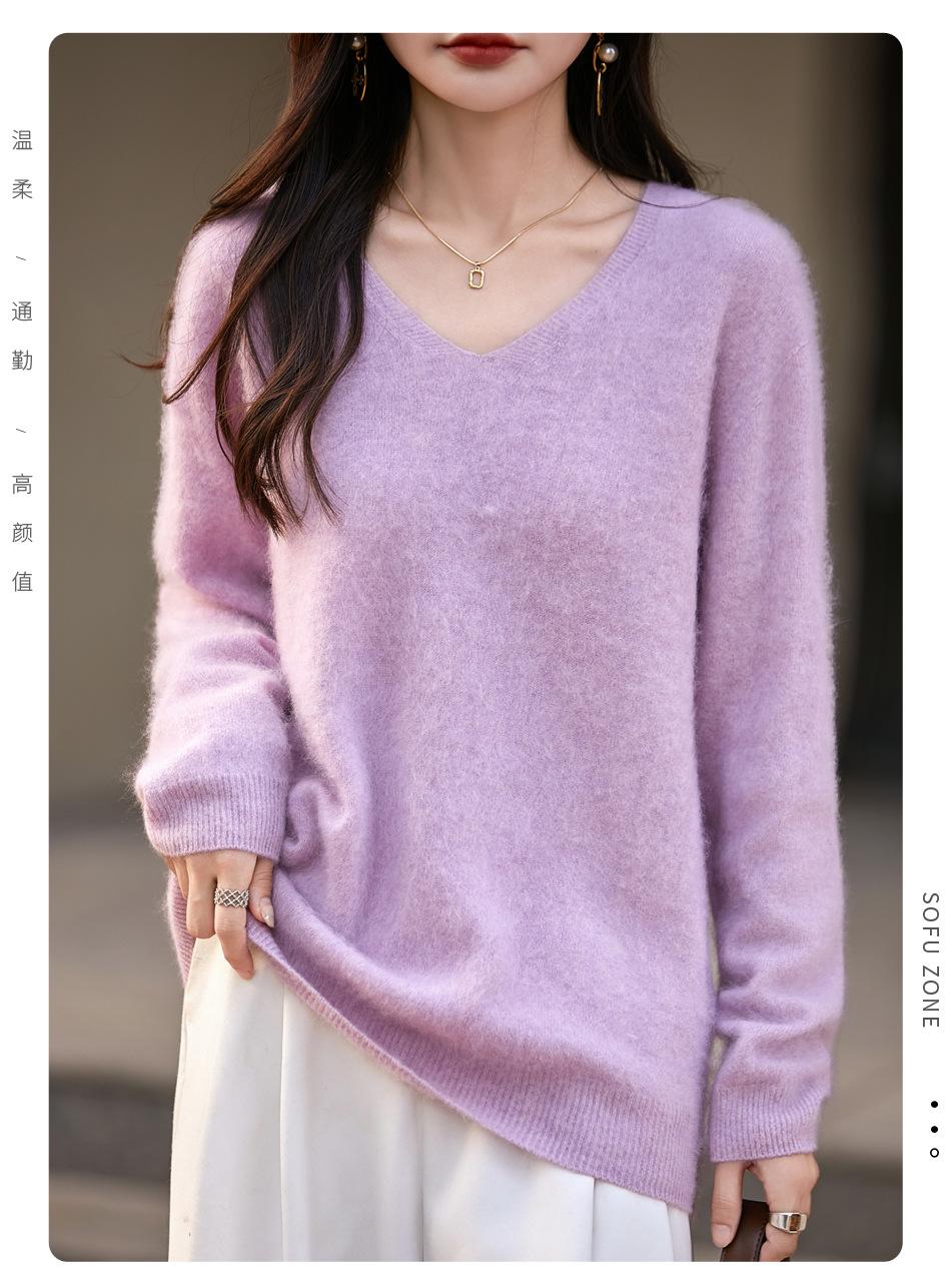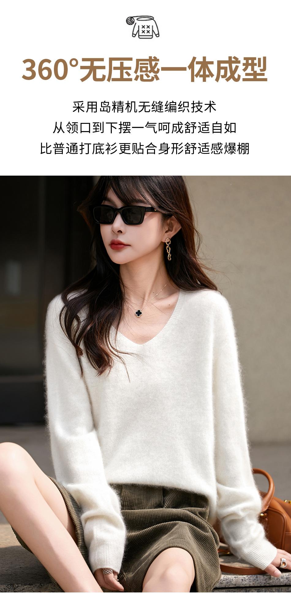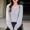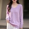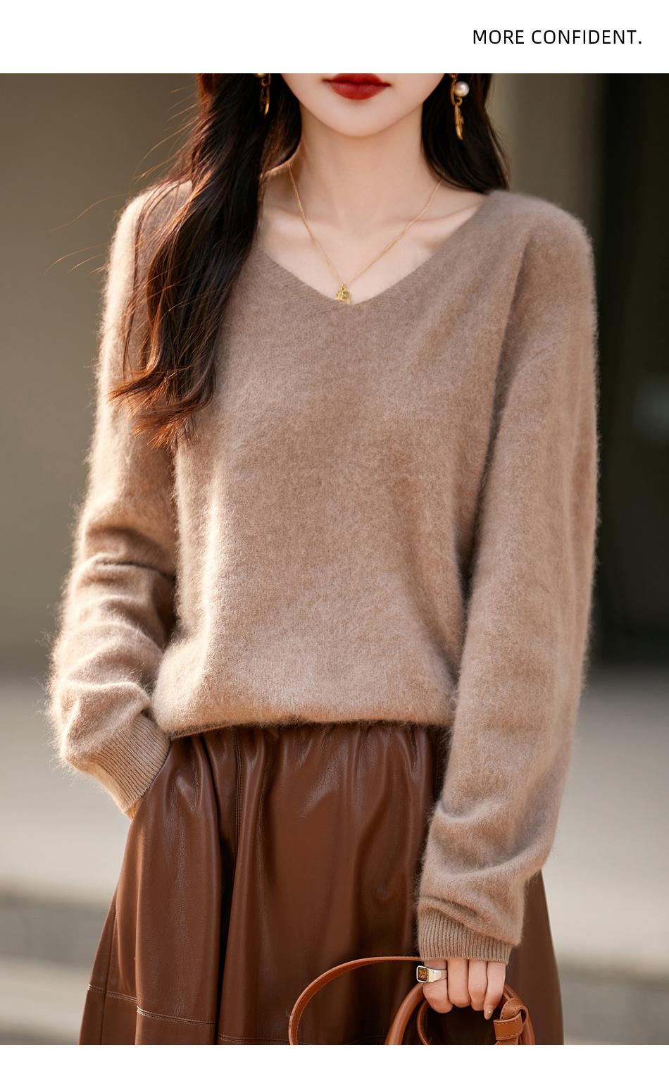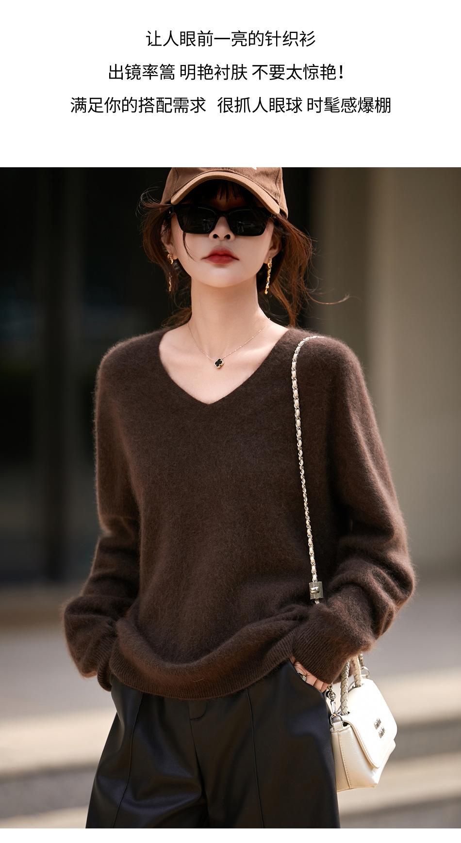 25 Otoño/Invierno Cuello en V Sin Costuras Cachemira Cepillada Suéter Pulóver de Lana Estilo Holgazán Suelto Adelgazante Capa Interior Suéter de Punto