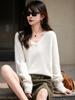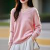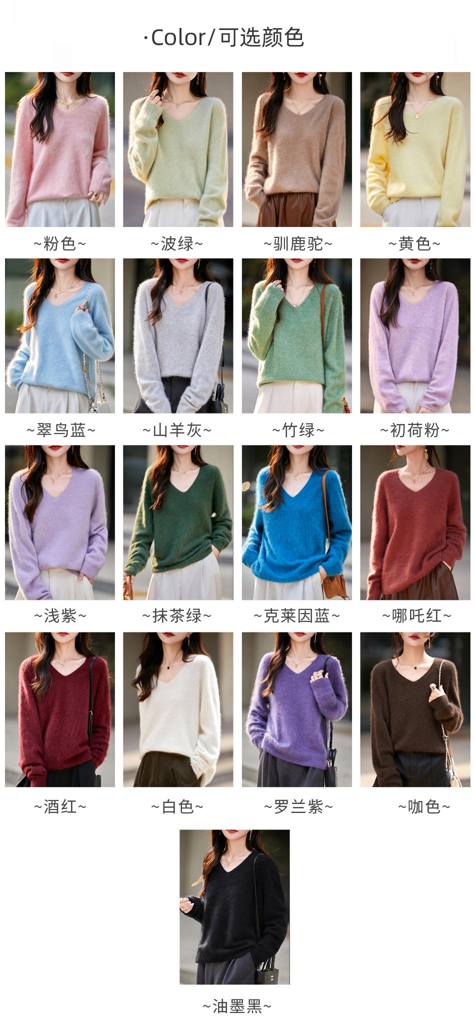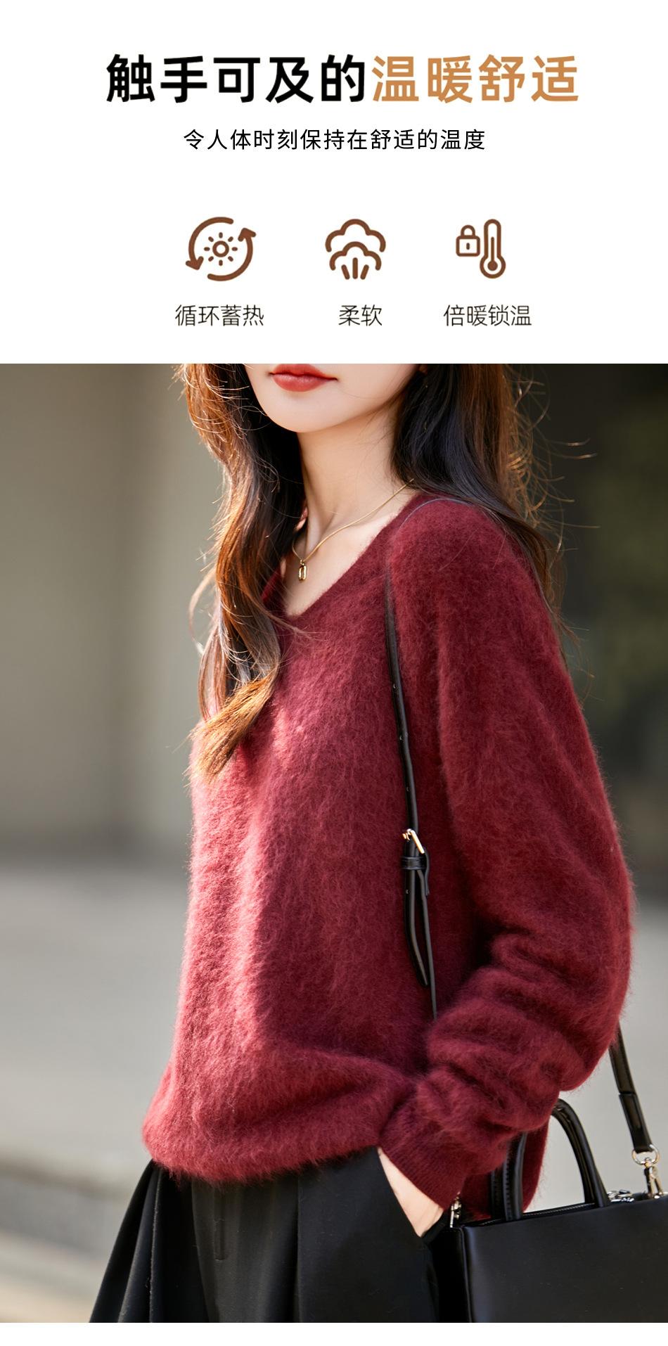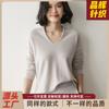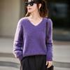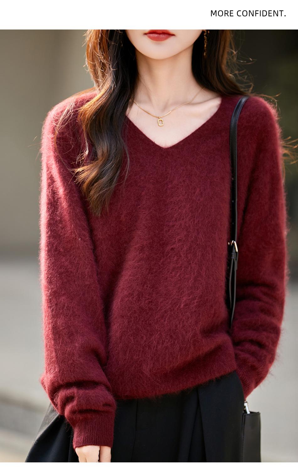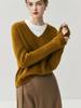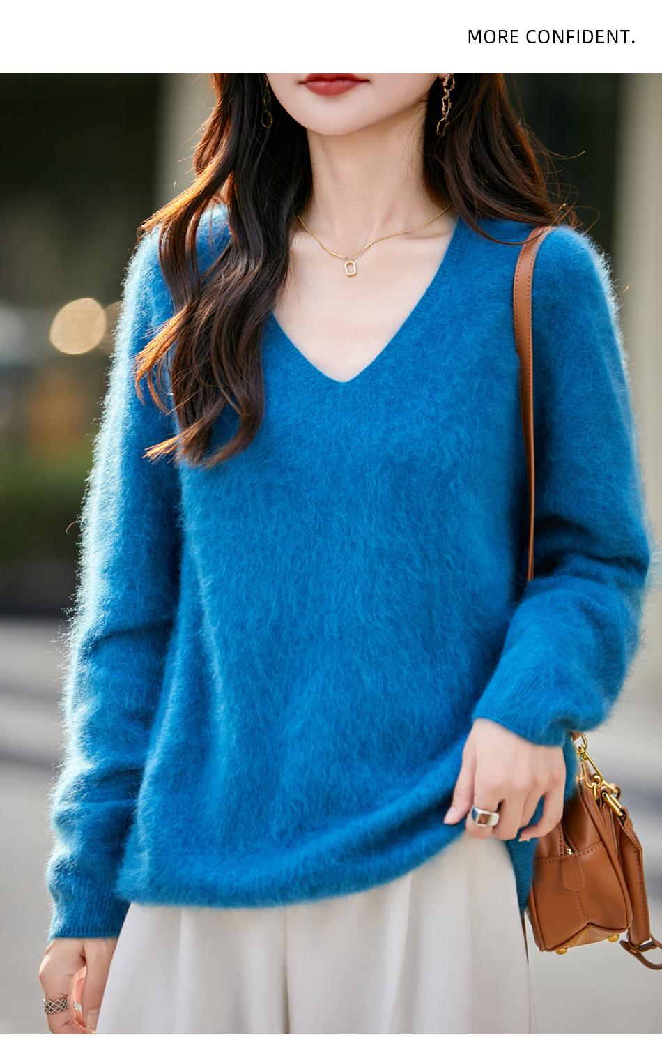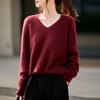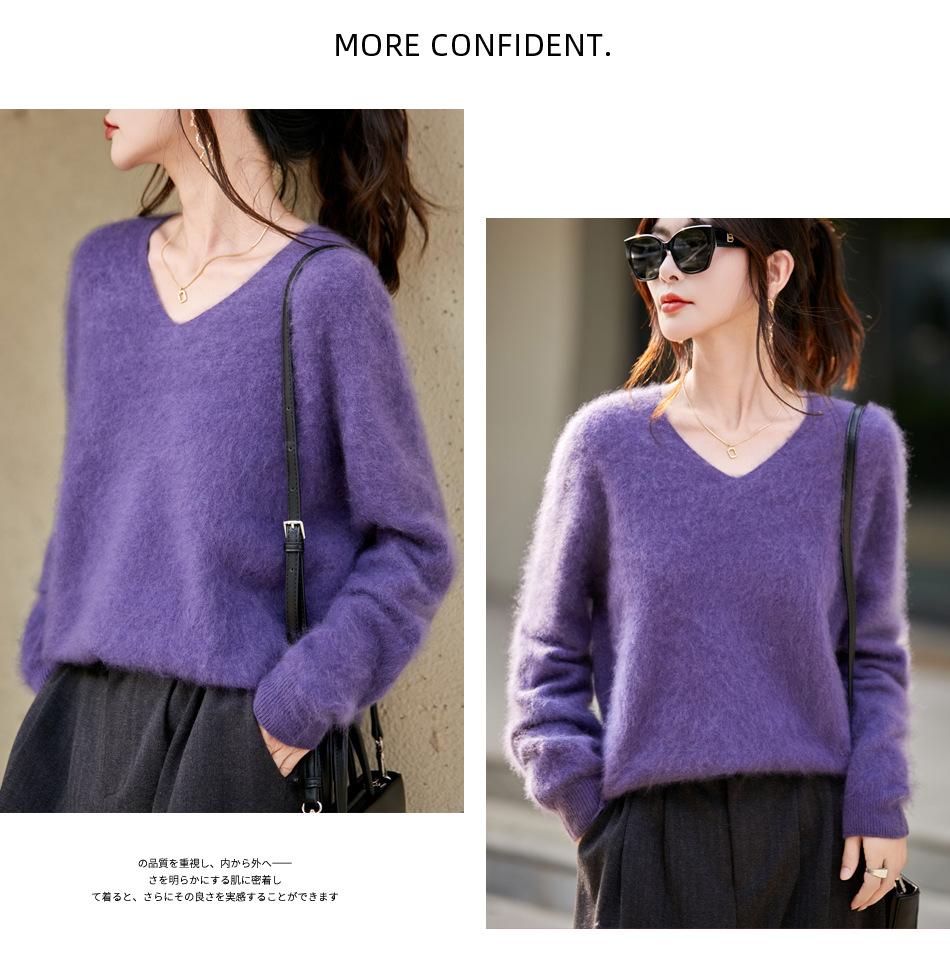 25 Otoño/Invierno Cuello en V Sin Costuras Cachemira Cepillada Suéter Pulóver de Lana Estilo Holgazán Suelto Adelgazante Capa Interior Suéter de Punto