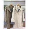 Abrigo Trench Reversible de Cuello Mao Yan Shuang para Mujer Otoño Patchwork de Cuadros Británicos Abrigo de Largo Medio 82595