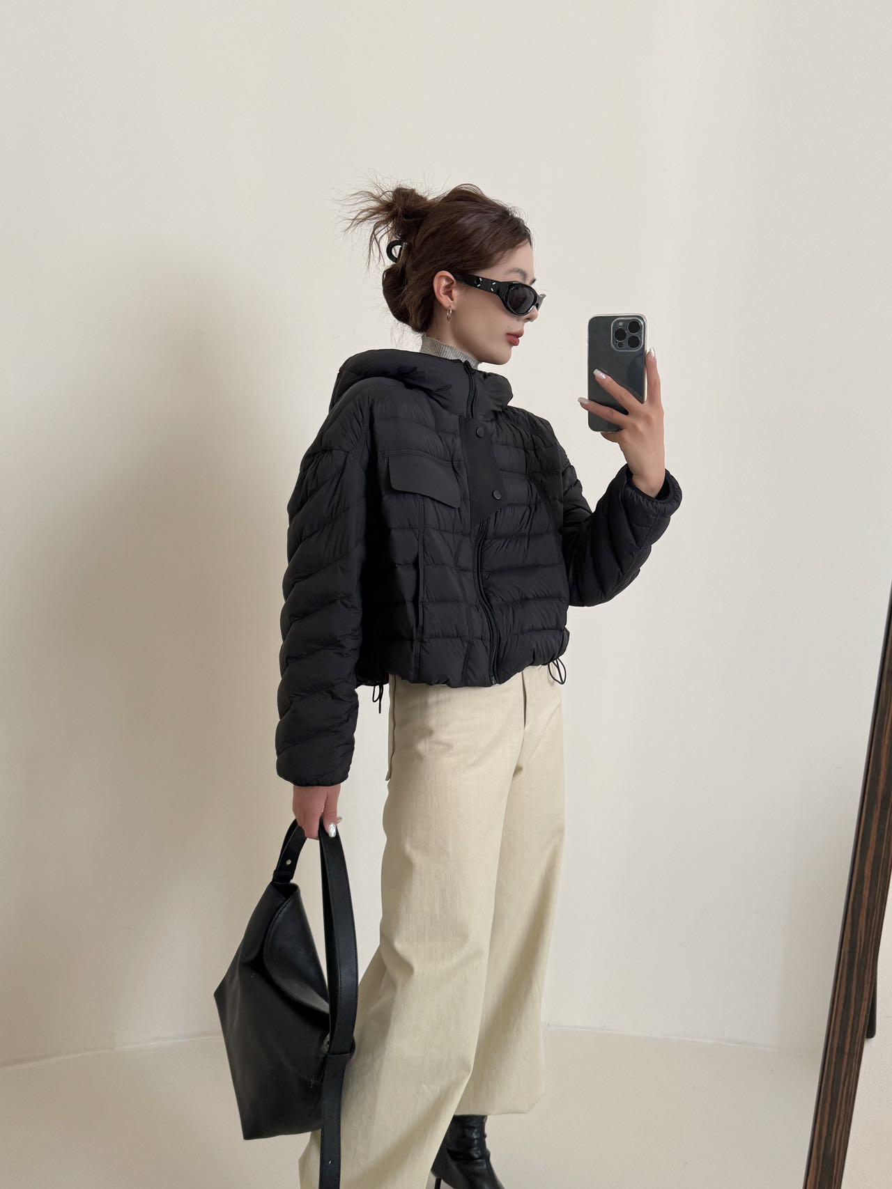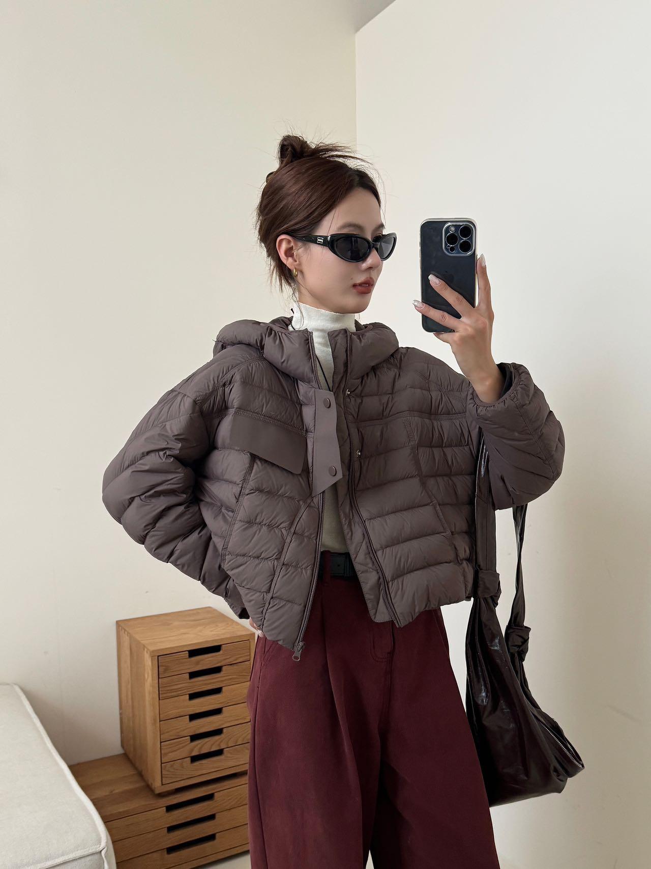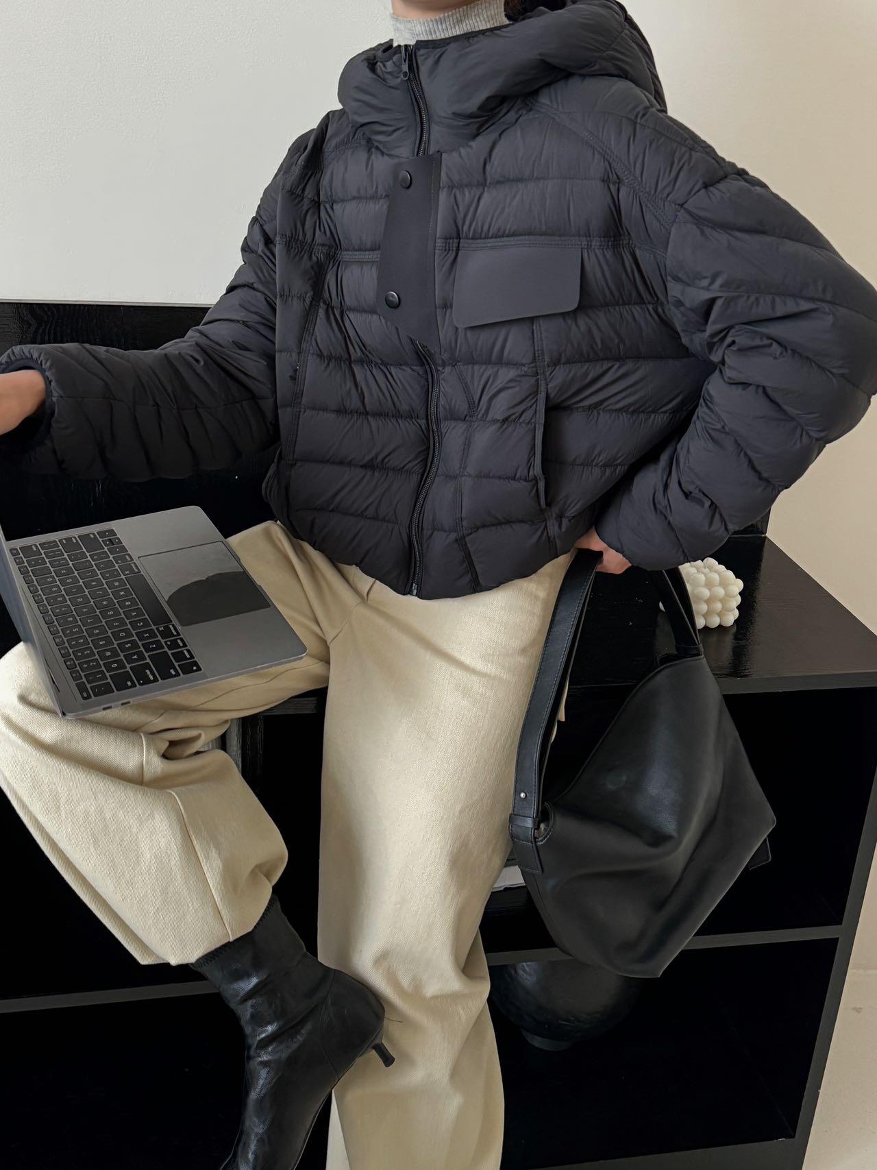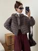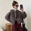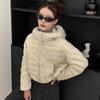 Chaqueta de plumón ligera con capucha para mujer estilo corto 2025 moda de invierno pespuntes acolchados PU petite adelgazante top tendencia