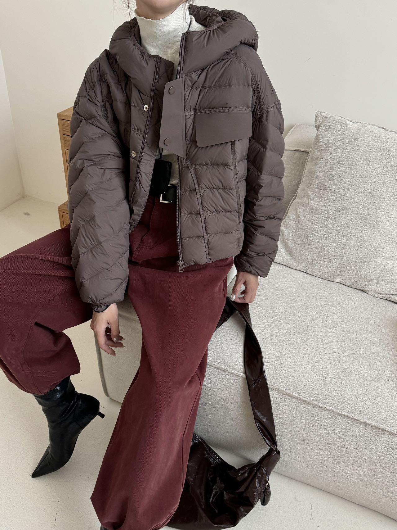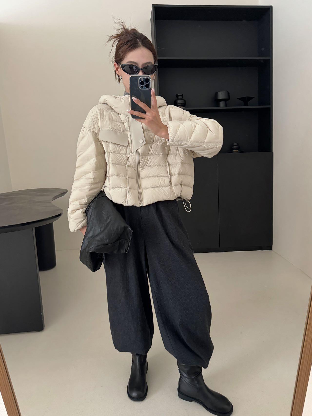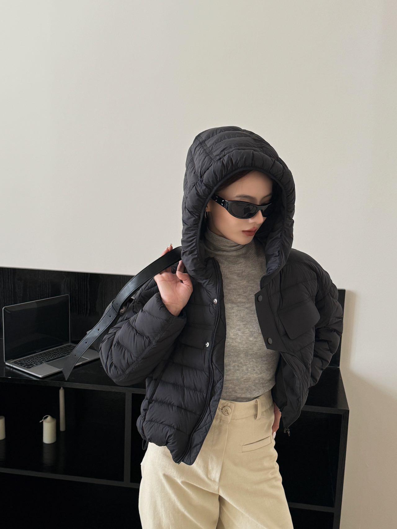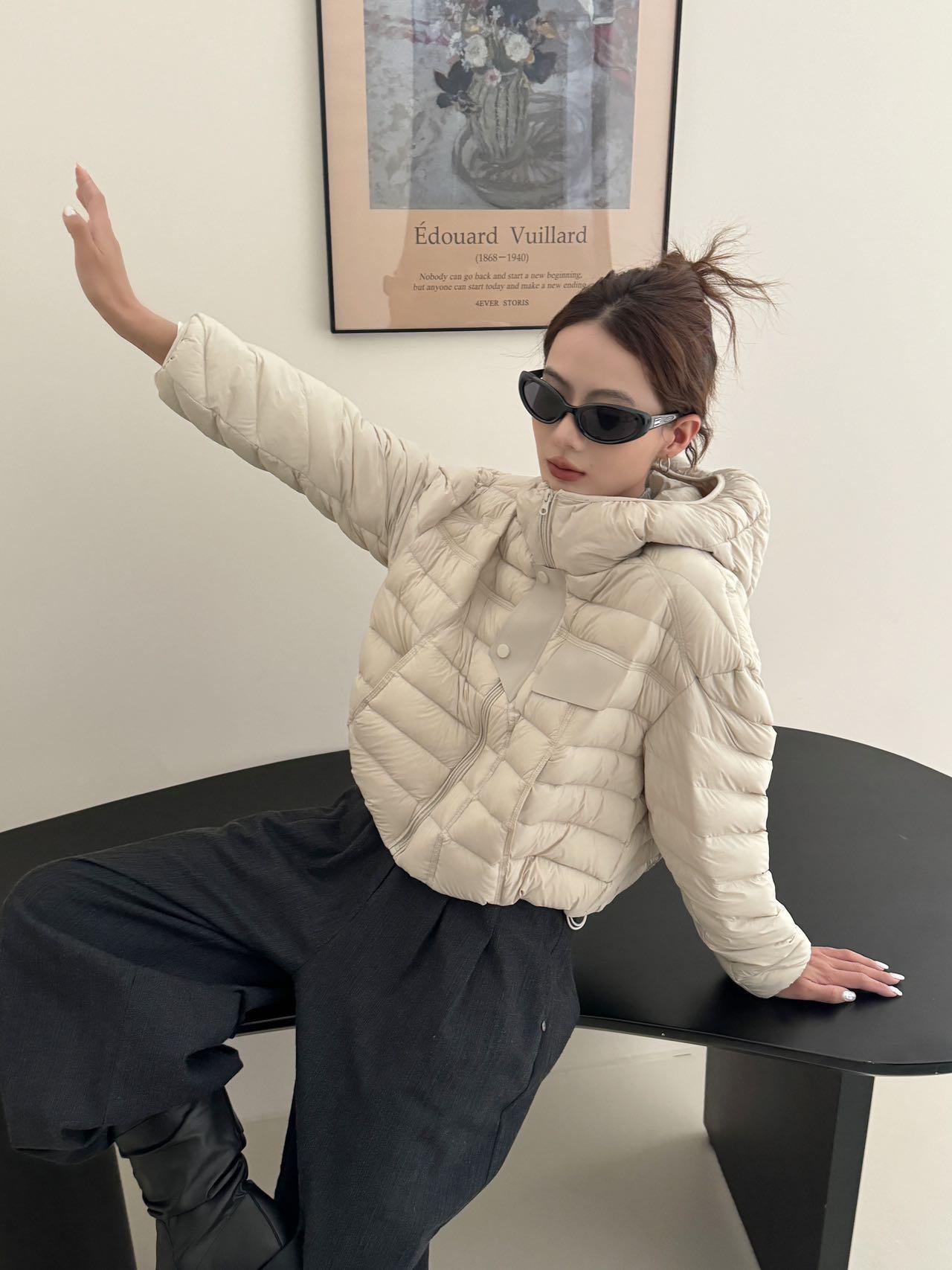 Chaqueta de plumón ligera con capucha para mujer estilo corto 2025 moda de invierno pespuntes acolchados PU petite adelgazante top tendencia