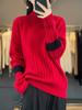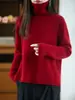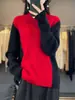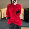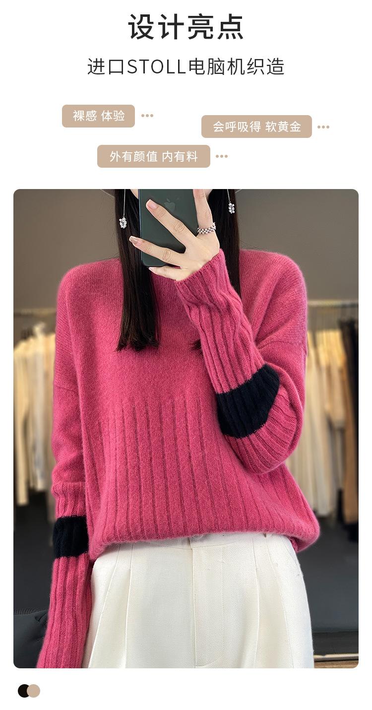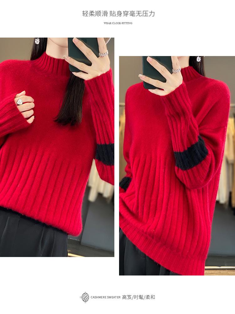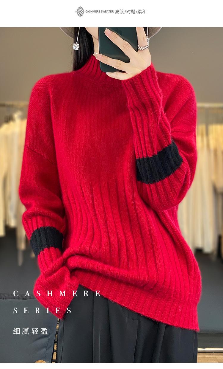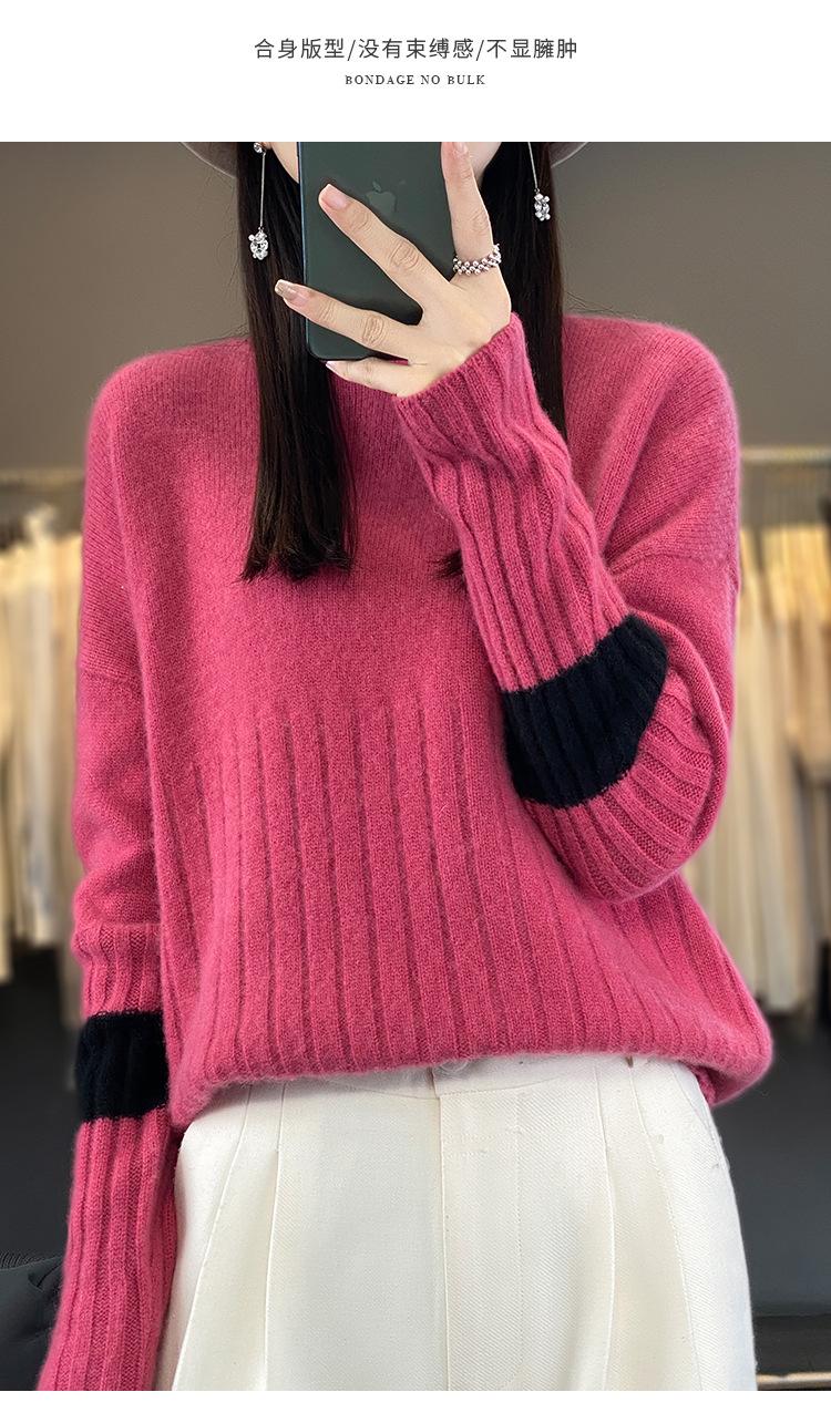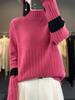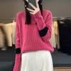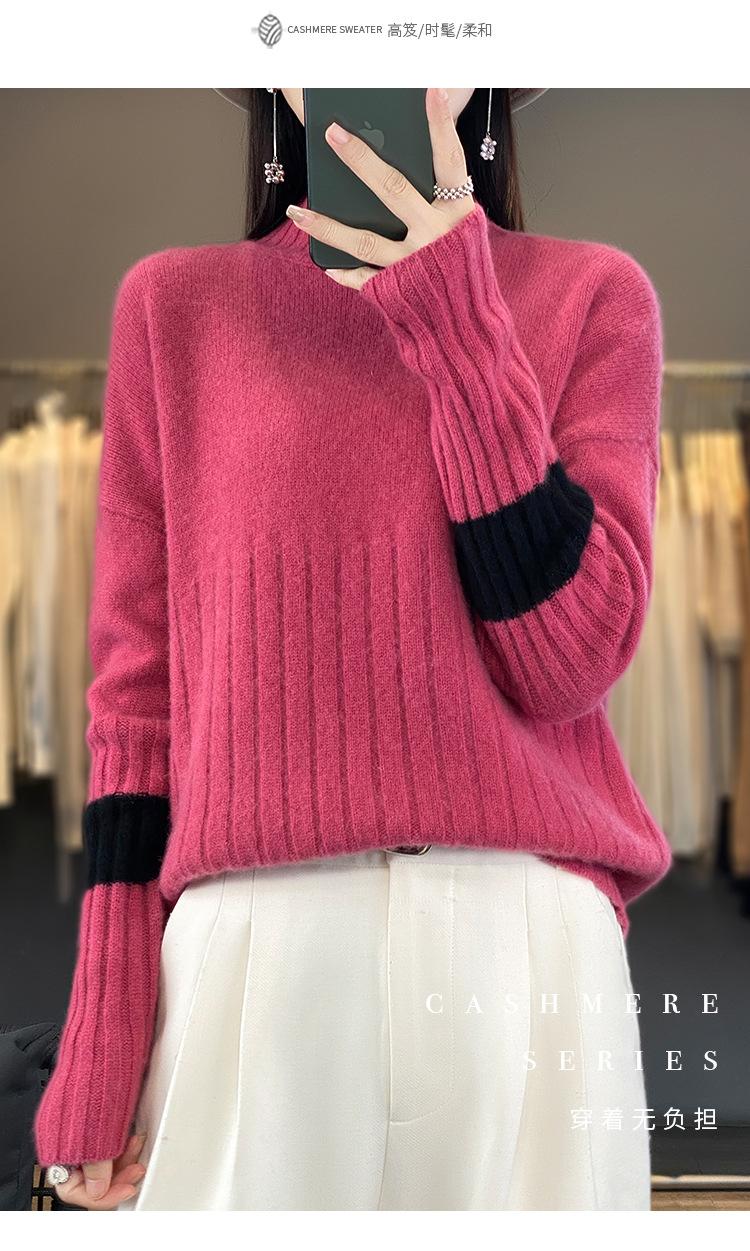 2025 Otoño/Invierno Nuevo Suéter Tejido de Lana Pura de Cuello Medio Alto Manga Larga para Mujer Color Block Acanalado Jersey Capa Base Top