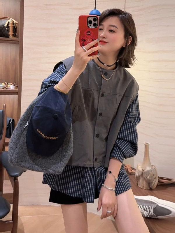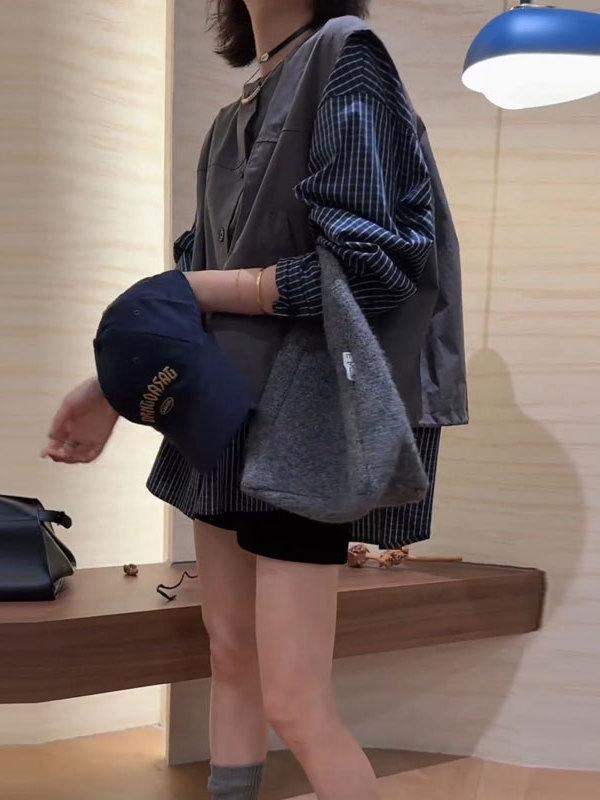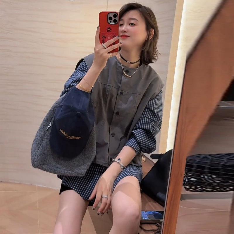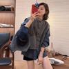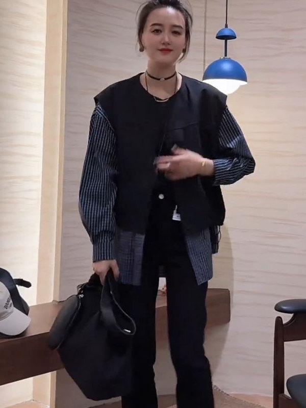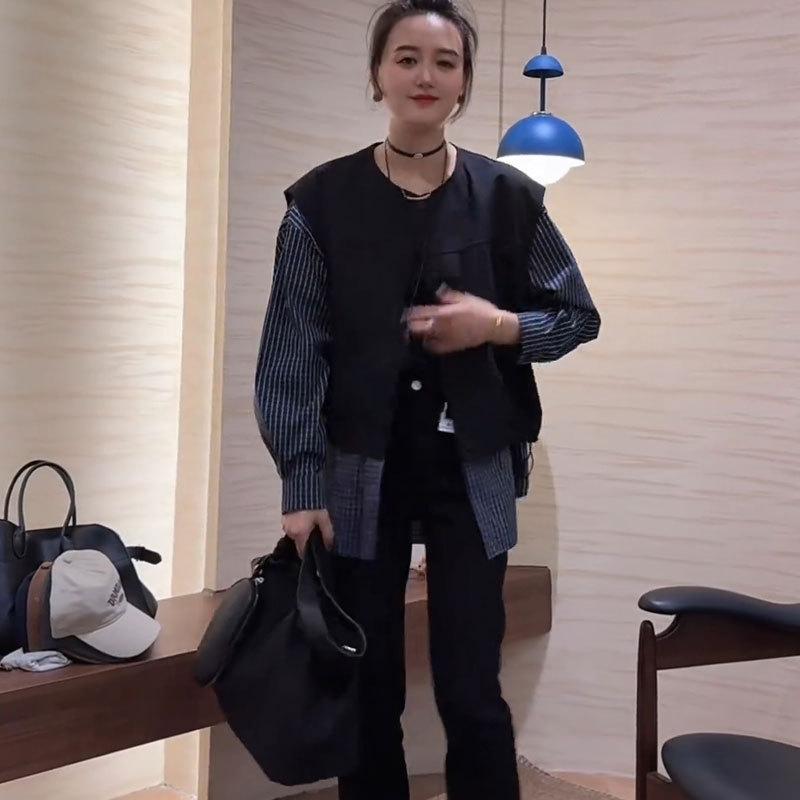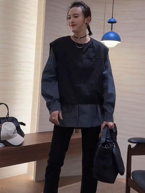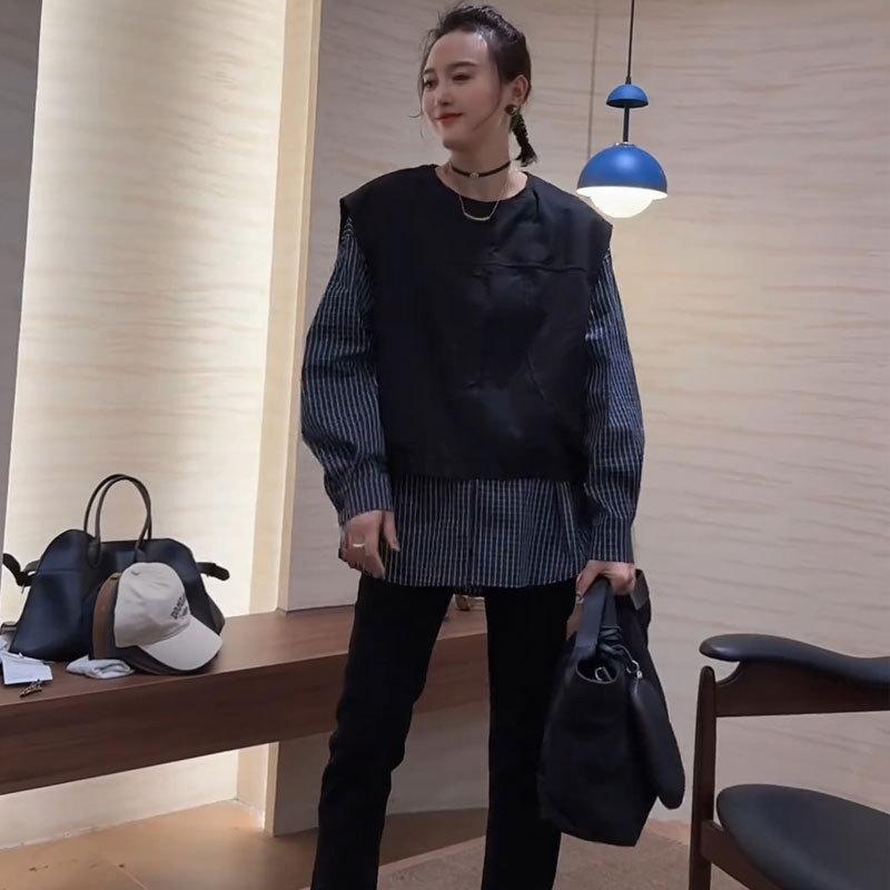 Camisa de Diseño Coreano Falso de Dos Piezas Mujer Otoño 2025 Nueva Cárdigan de Retazos a Rayas Holgado Adelgazante Versátil Top