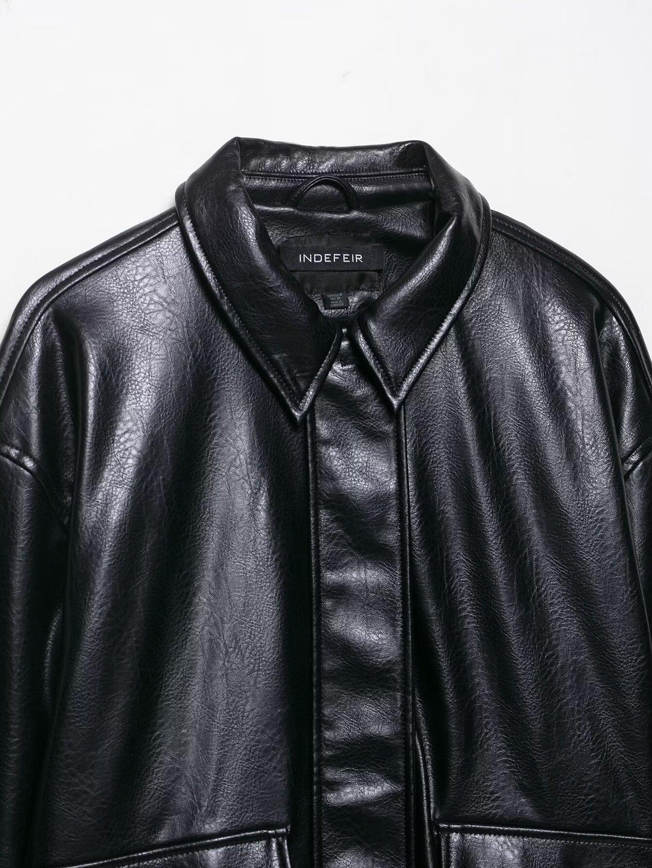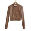 Estilo europeo y americano 2025 otoño nuevo chaqueta de cuero chaqueta abrigo negro estilo dulce y cool motocicleta cuero sintético holgado manga larga top