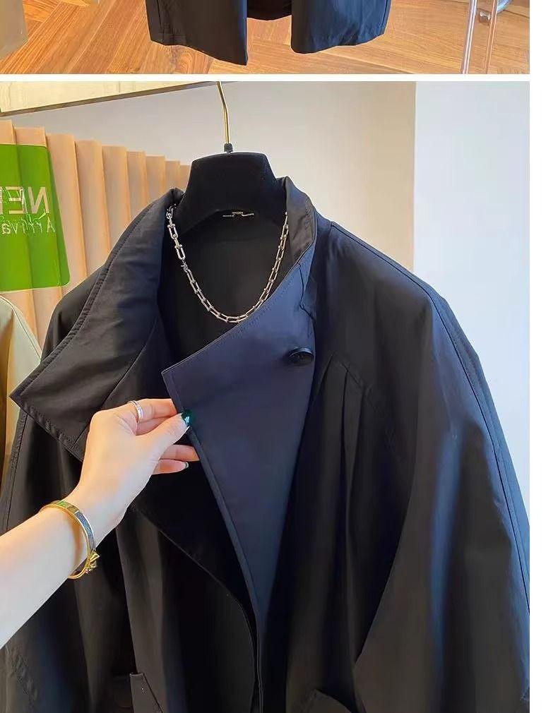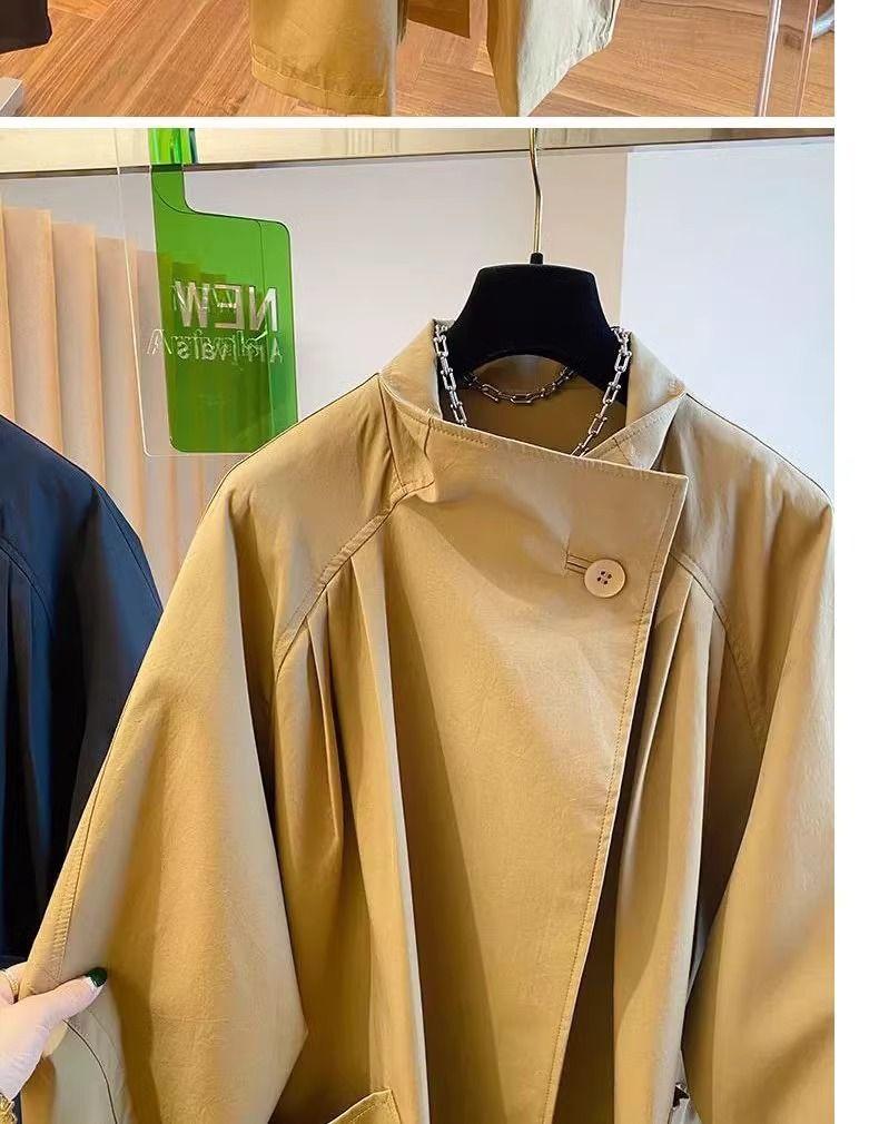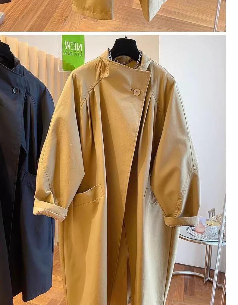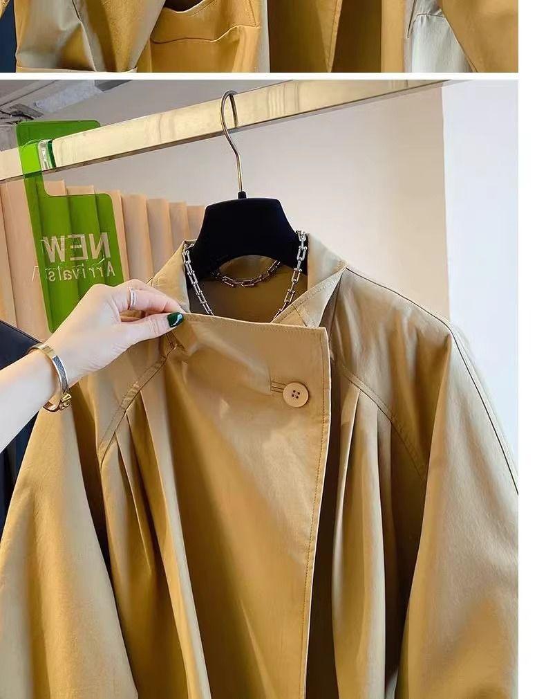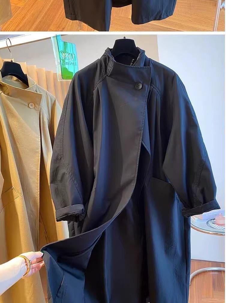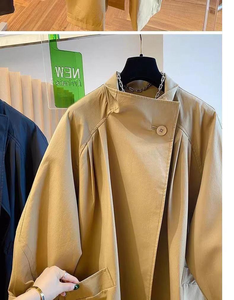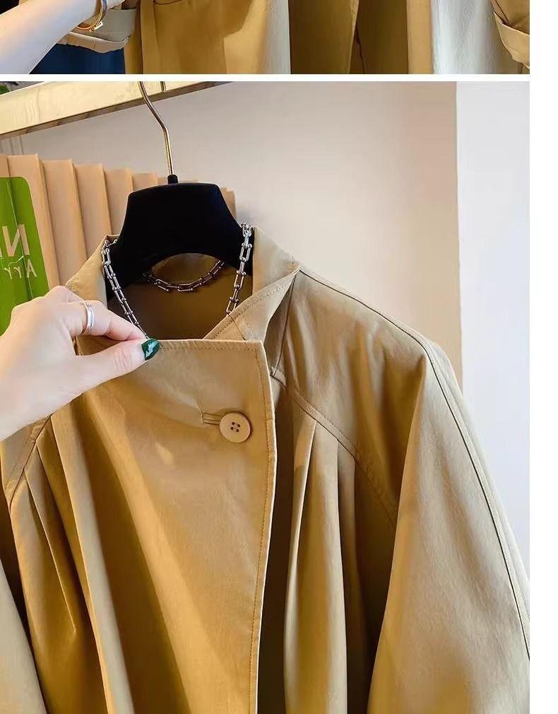 Abrigo cortavientos casual holgado de talla grande para mujer de largo medio estilo europeo con cuello alto primavera y otoño para petite