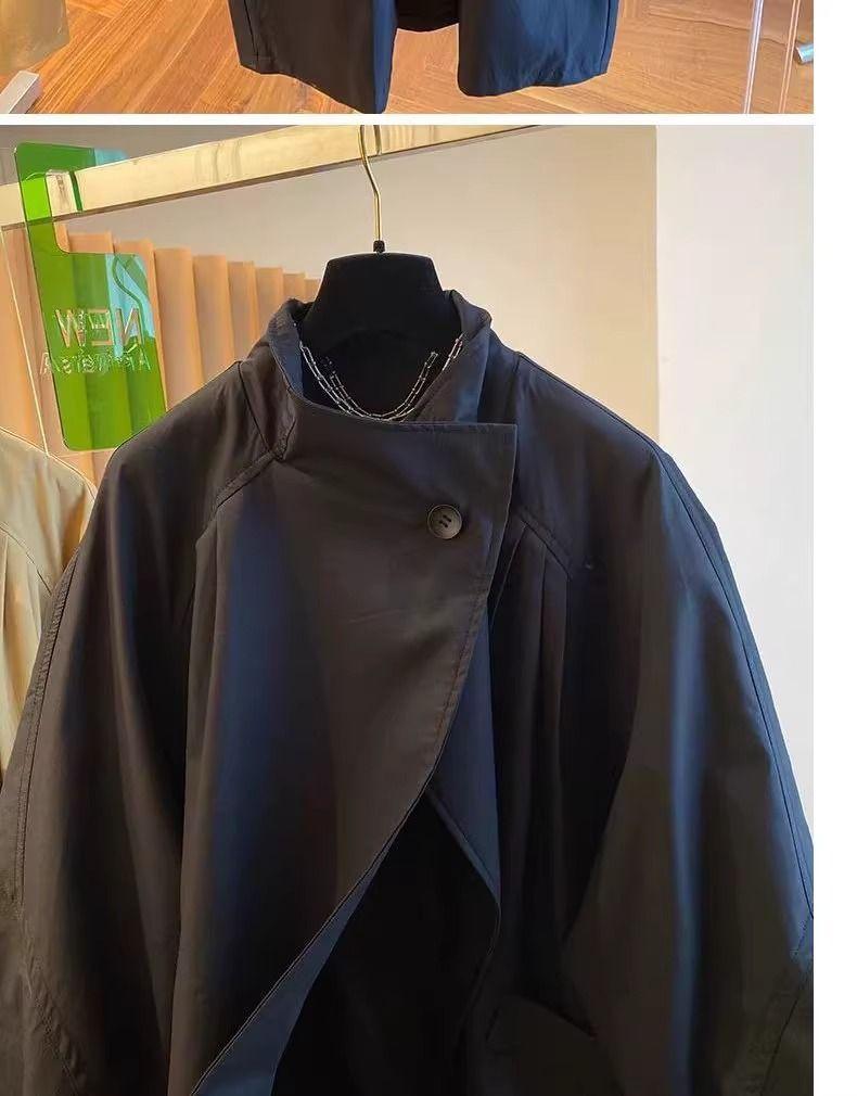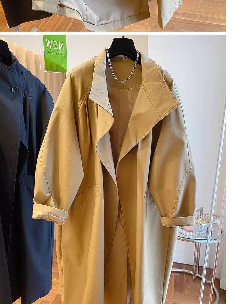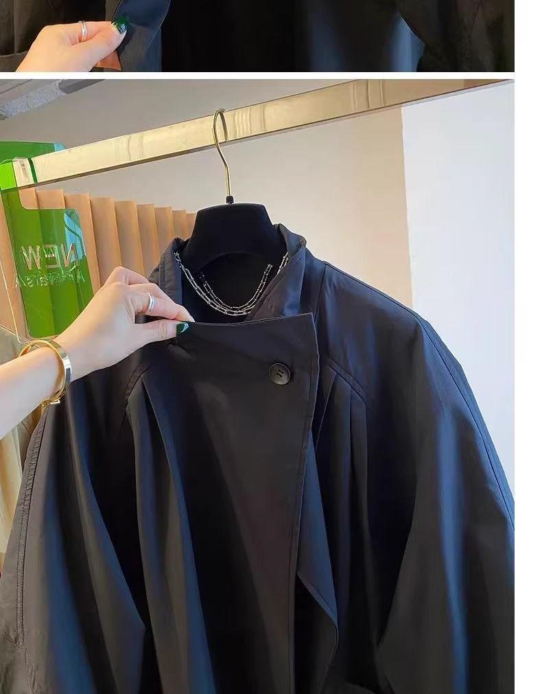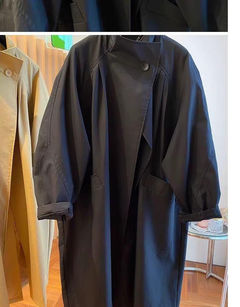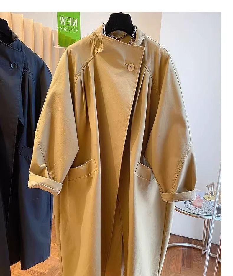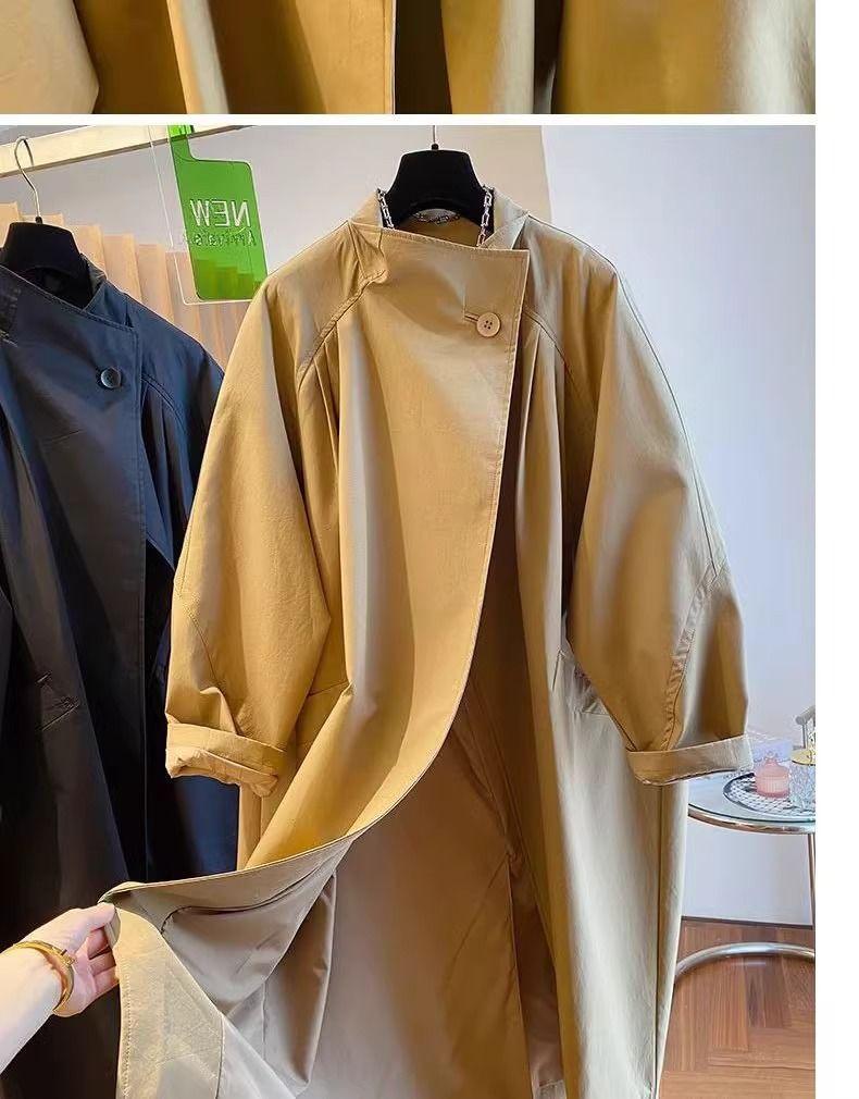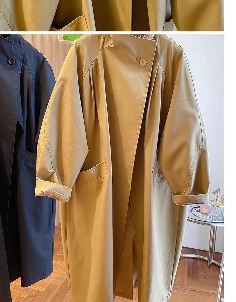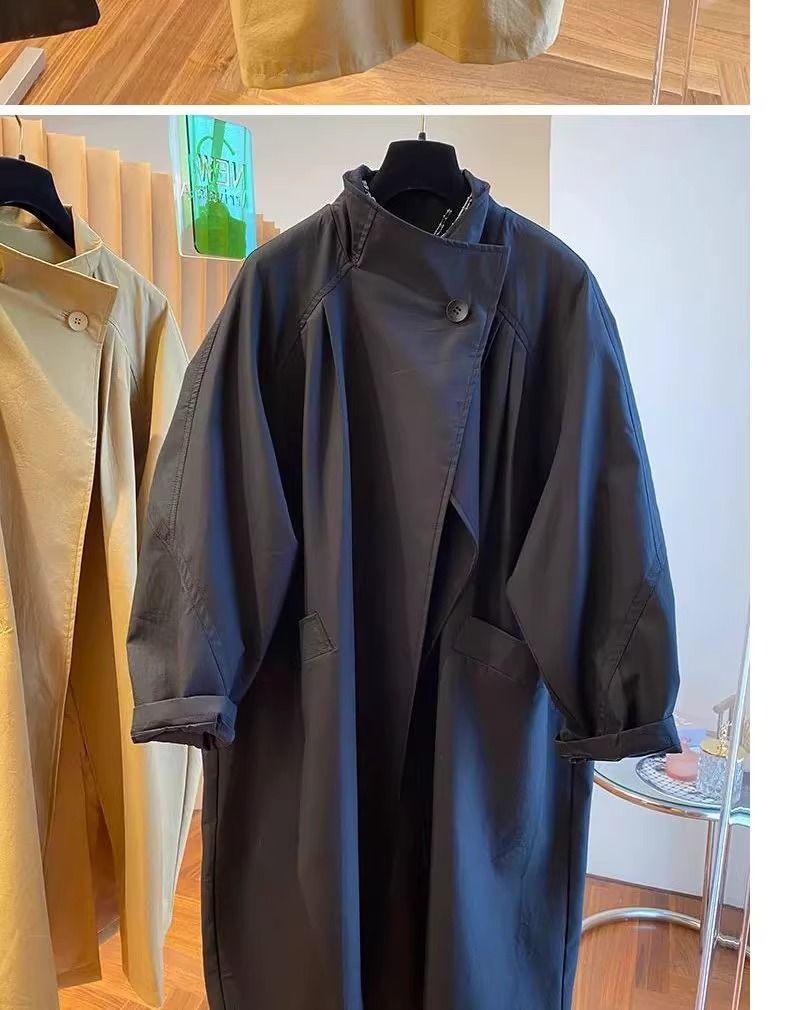 Abrigo cortavientos casual holgado de talla grande para mujer de largo medio estilo europeo con cuello alto primavera y otoño para petite