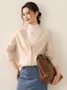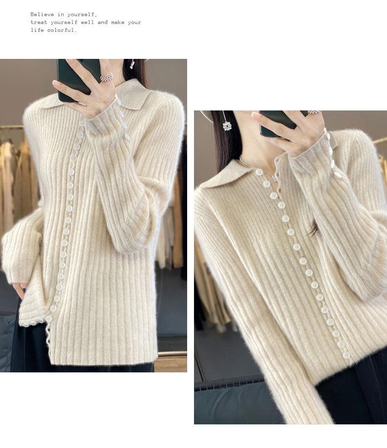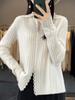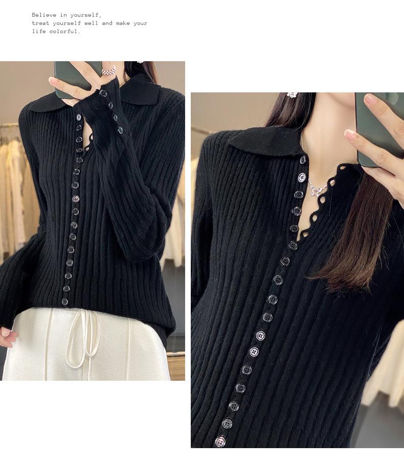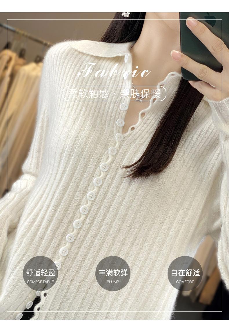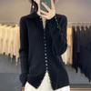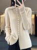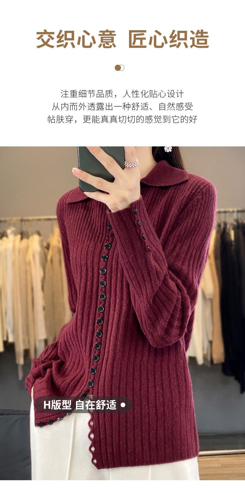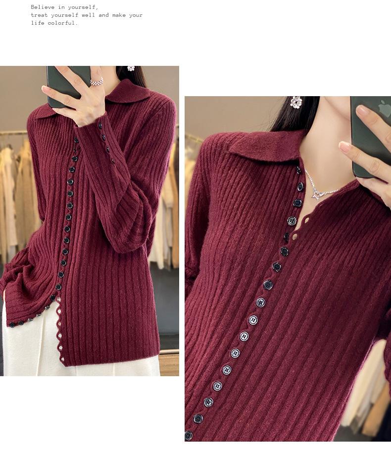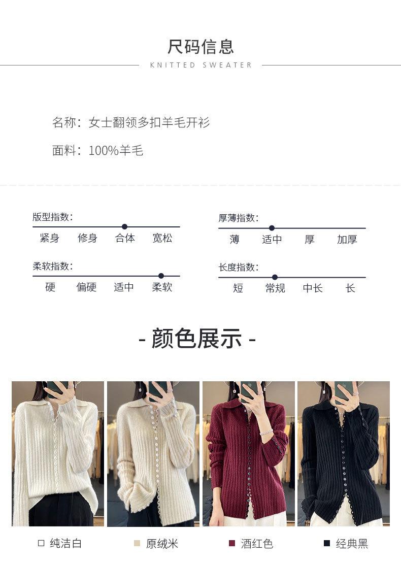 Cárdigan de Punto de Lana Pura con Solapa Nuevo 2025 para Mujer Corte Slim Acanalado Color Sólido Temperamento Manga Larga Suave con Botones Prendas de Exterior