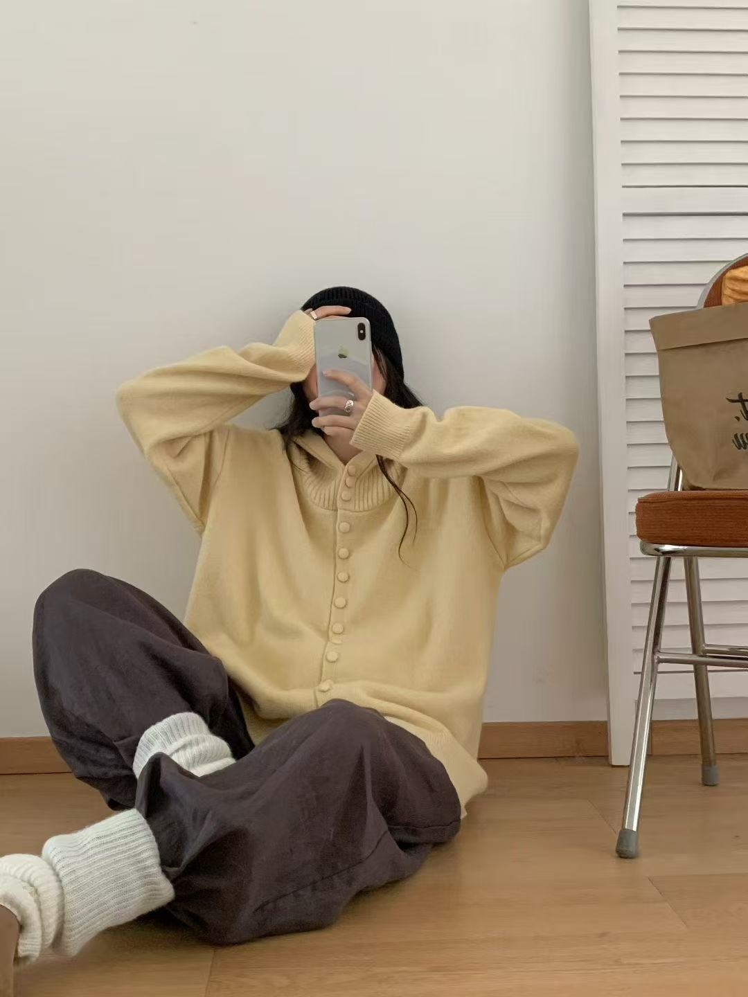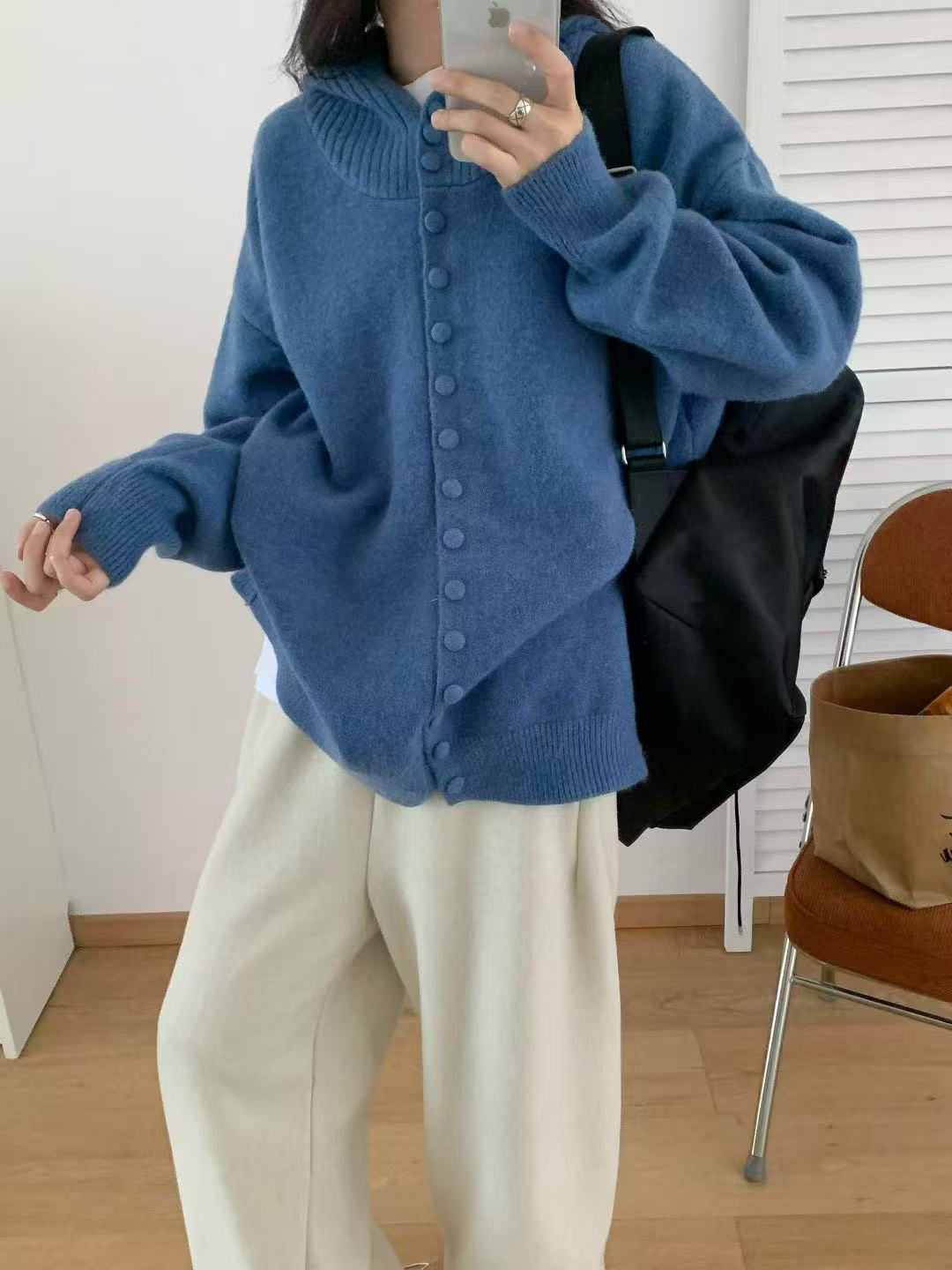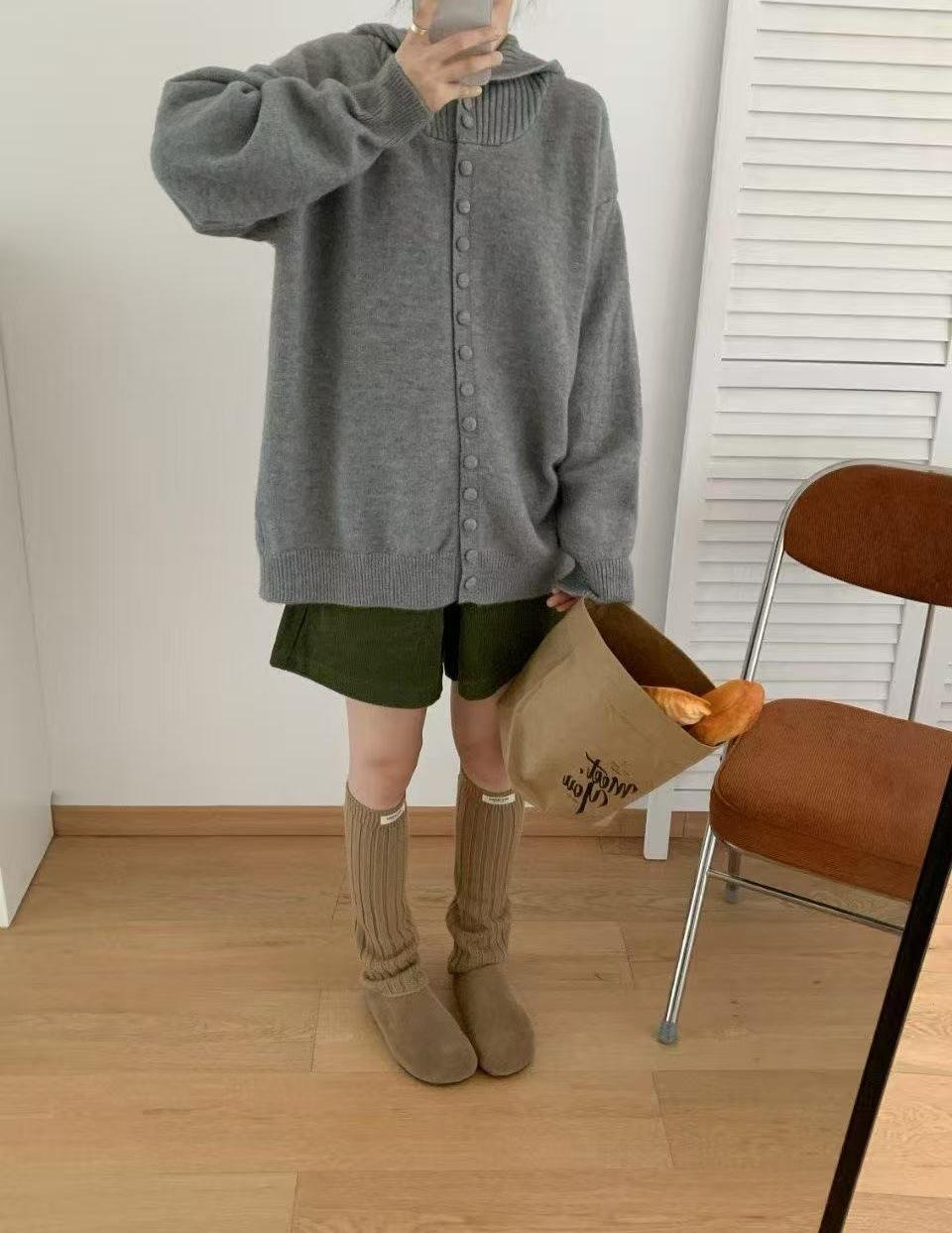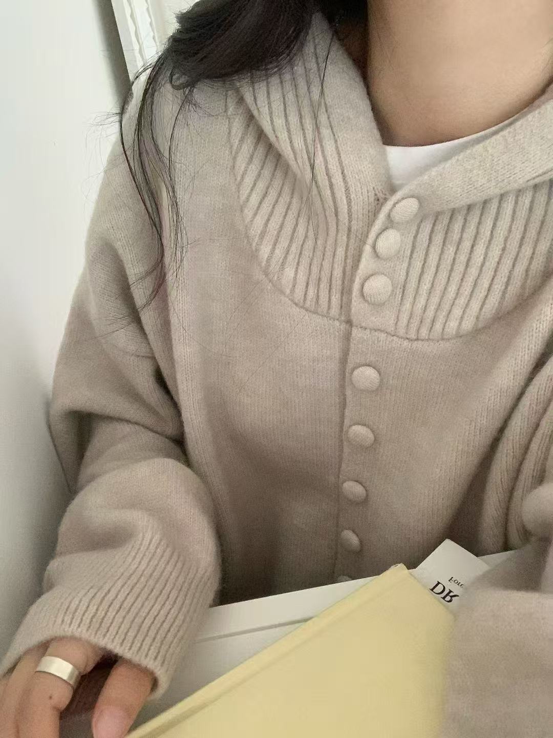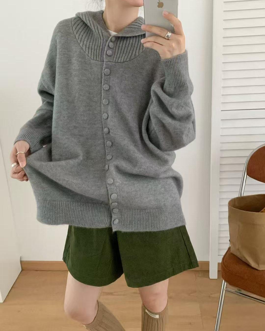 Cárdigan de Punto con Capucha de Color Sólido Estilo Holgazán de Alta Gama para Mujer Otoño/Invierno Nuevo Suéter Holgado Versátil